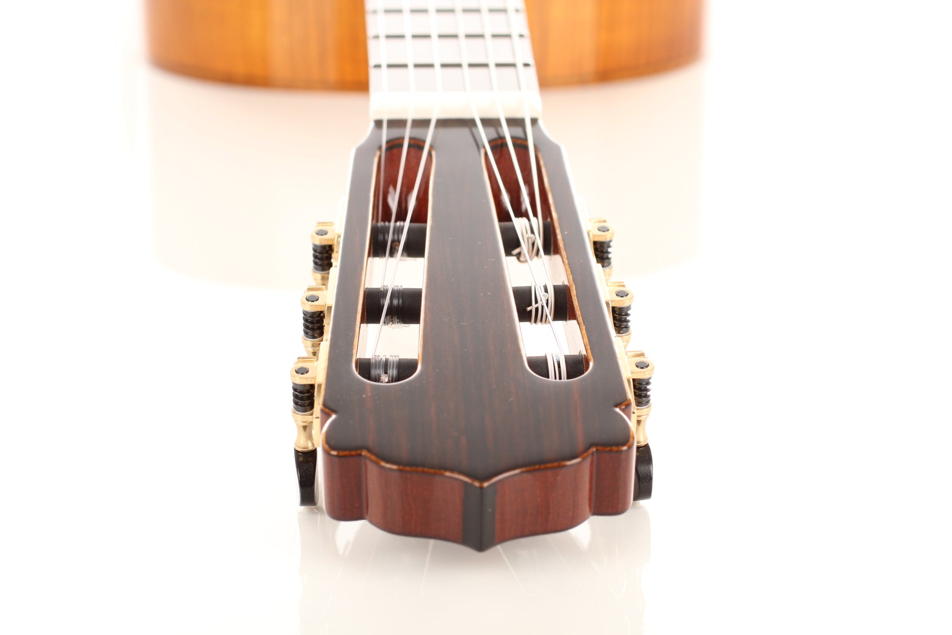 Price on requestLuthier: Fritz OberConstruction Year: 2019Construction Type: TraditionalTop: SpruceBack and Sides: Brazilian rosewood (CITES certified)Soundboard Finish: French polishBody Finish: French polishAir Body Frequency: C sharp / DWeight (g): 1345Tuner: Klaus SchellerCondition: Excellent -