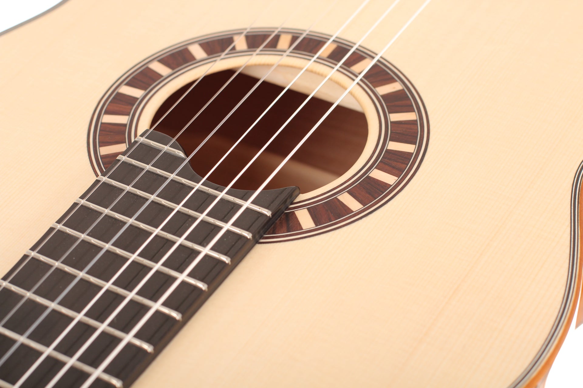 The classical guitar, with its soft nylon strings and characteristic timbre, has become a symbol of chamber music, Spanish tradition, and concert repertoire. Its modern form was shaped by Antonio de Torres in the 19th century, setting the standard for the body, fan bracing, and the 65-centimeter scale length that are still used today. Instruments in this category open up a rich palette from the refined Romantic miniatures of Tárrega to the majestic concertos of Rodrigo. Here you will find guitars that preserve historical continuity and at the same time inspire new interpretations.Look all products of the collection -