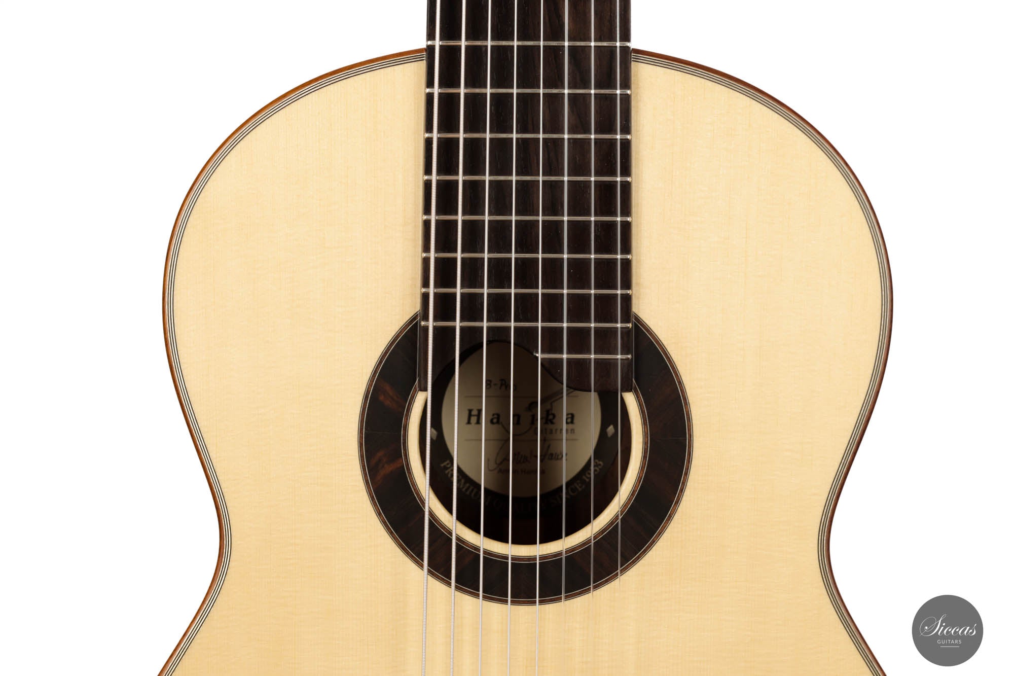 At HANIKA craftsmanship is understood as custom work and sound as art. A guitar from the famous Baiersdorf manufacture is a symbol of quality and craftsmanship tradition. Since 1953 it has been the basis for the success story of the company, combined with trend-setting innovations. Master plucked instrument maker Armin Hanika took over the company from his father in 1993 and has been building classical guitars of outstanding quality ever since. Immerse yourself in the exquisite beauty of the 8-Pro, a guitar of excellent quality, crafted from carefully selected East Indian rosewood for the body and sides, as well as premium spruce wood for the top. This meticulous combination of rosewood and spruce – the world’s preferred tonewoods for guitars – guarantees a powerful attack and full sound in this model. Additionally, two extra strings enrich the sonic diversity with particularly deep bass tones. By default, we tune your guitar to contra A, C, E, A, D, g, h, e´, while the slightly reduced spacing ensures comfortable playability. A matte lacquered surface, designed with closed pores, optimizes the sound and adds an elegant visual aspect. The 8-Pro is made of solid tonewoods and equipped with high-quality Rubner mechanics, distinguished by ebony buttons and precisely milled holes. Other quality features include the Cedro neck, consistently reinforced with Grenadilla, a Grenadilla fingerboard, and a bridge saddle made of hard bone material. The tonal power of the 8-Pro is underlined by a dome-shaped top with symmetric 7-fold Torres bracing, which ensures both outstanding sound and a rich selection of tonal colors, while at the same time increasing the stability of the instrument. With the 8-Pro, you invest in an instrument of unparalleled quality, where every detail is geared towards optimal musical performance. Allow the versatility of the 8-Pro to inspire you and enrich your musical universe.