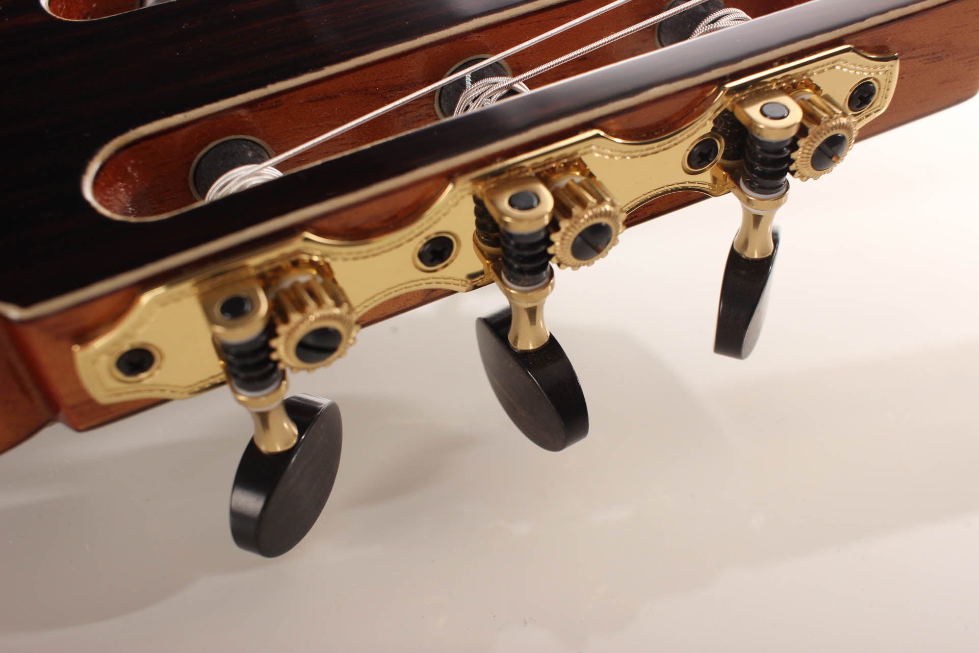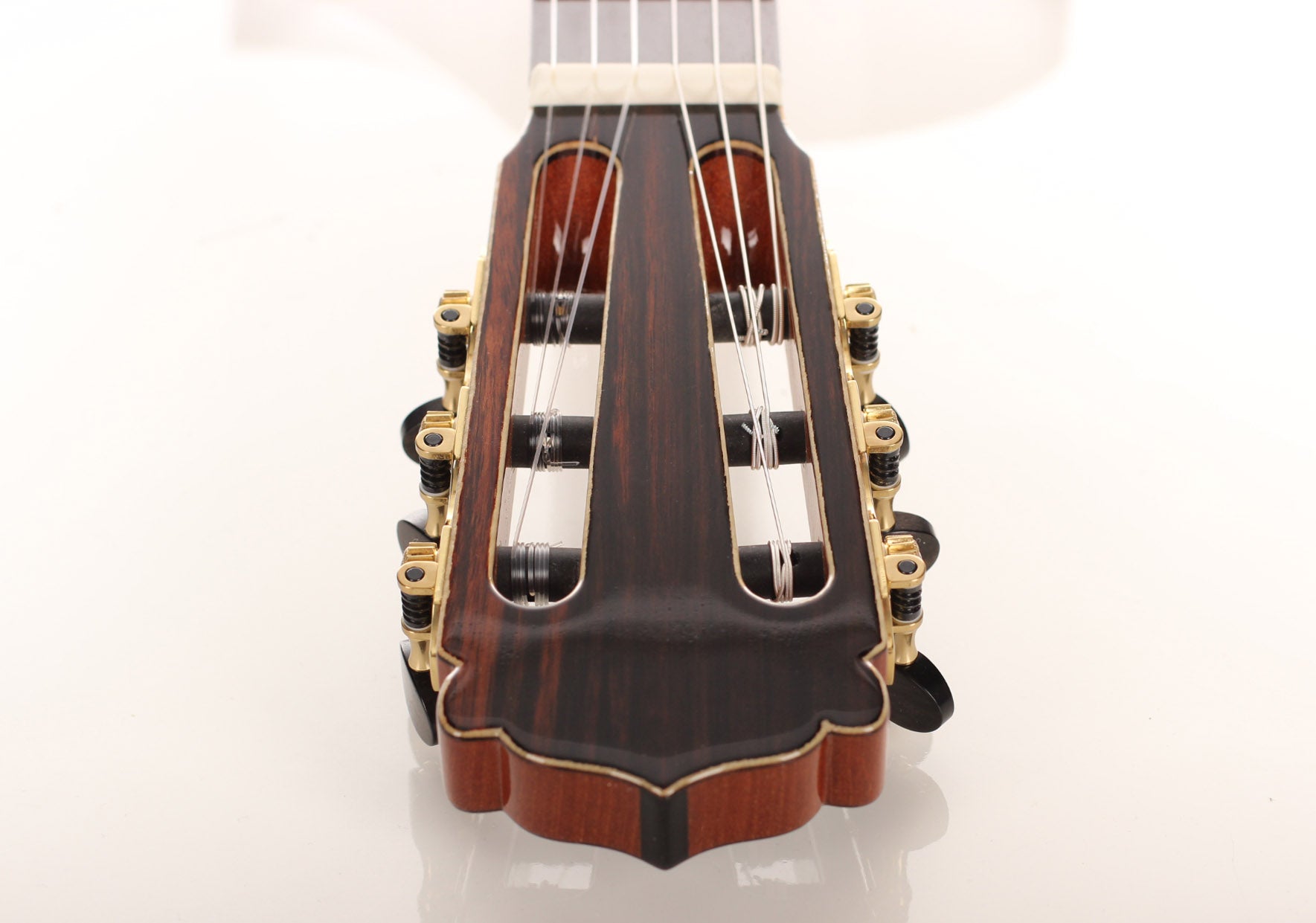 This Cutaway model is based on the '58 models. The specially for classical guitarists designed cutaway of African Ebony, makes playing in higher ranges very comfortable.Back and sides are manufactured of finest Cocobolo and the top is made of excellent spruce. Cocobolo is distinguished by a particularly dense wood structure and is considered one of the best tone woods for guitars. Along with the thin spruce top the Classic Cut CF achieves a very good response with full sound and good separation. This guitar satisfies highest demands, it is recommended for conscious players and can completely unfold especially in slow and carried pieces.