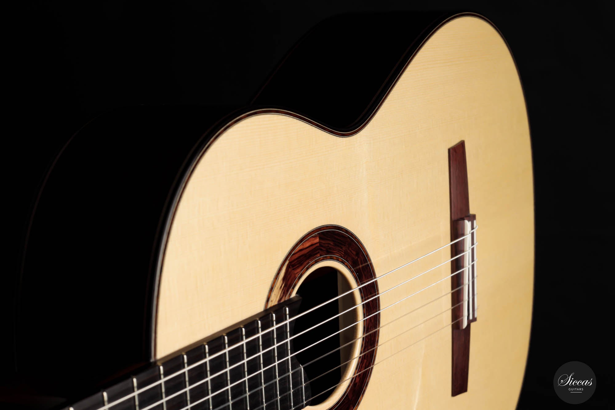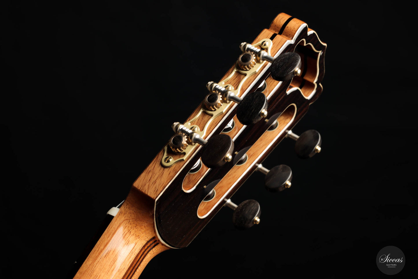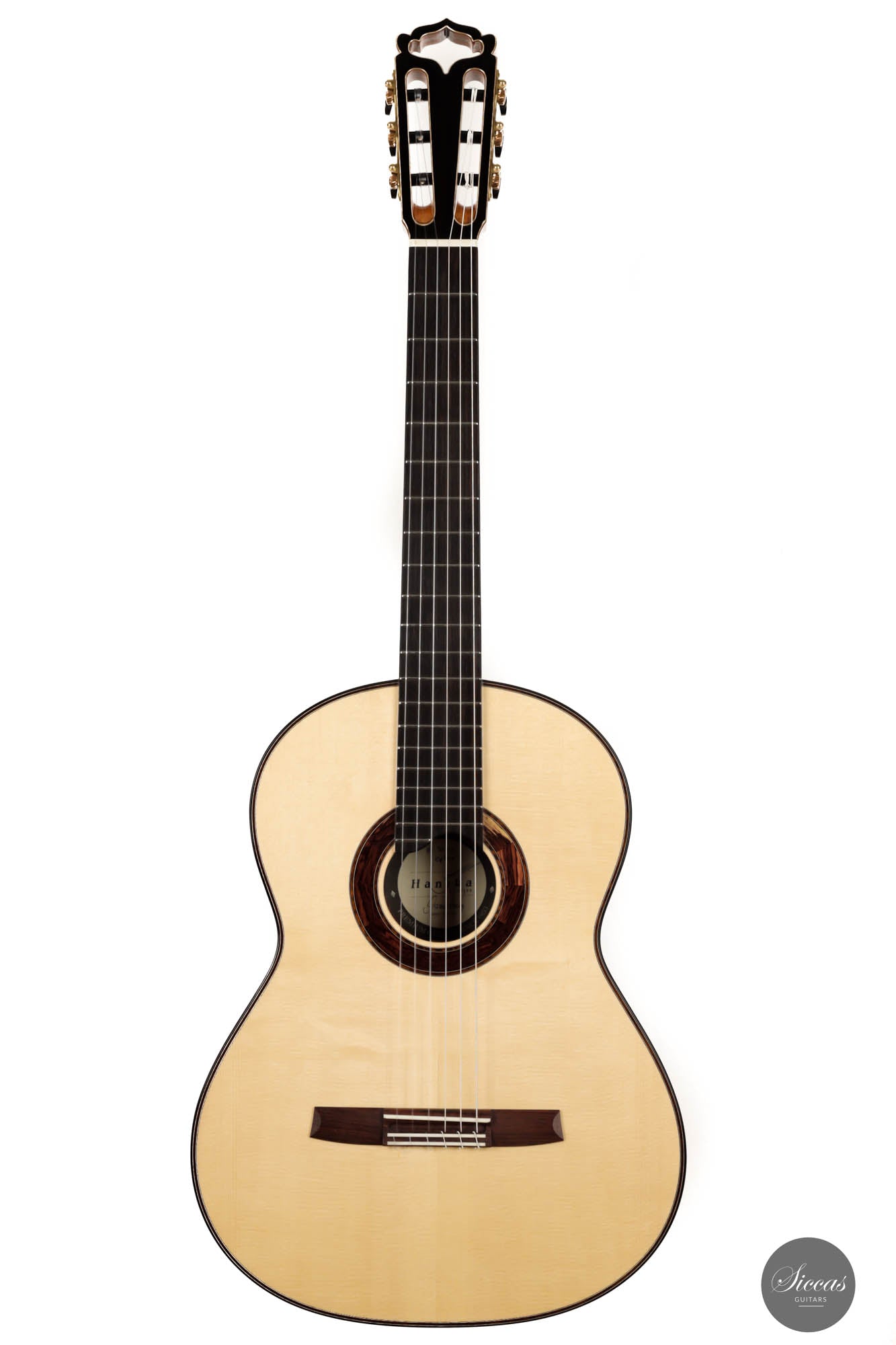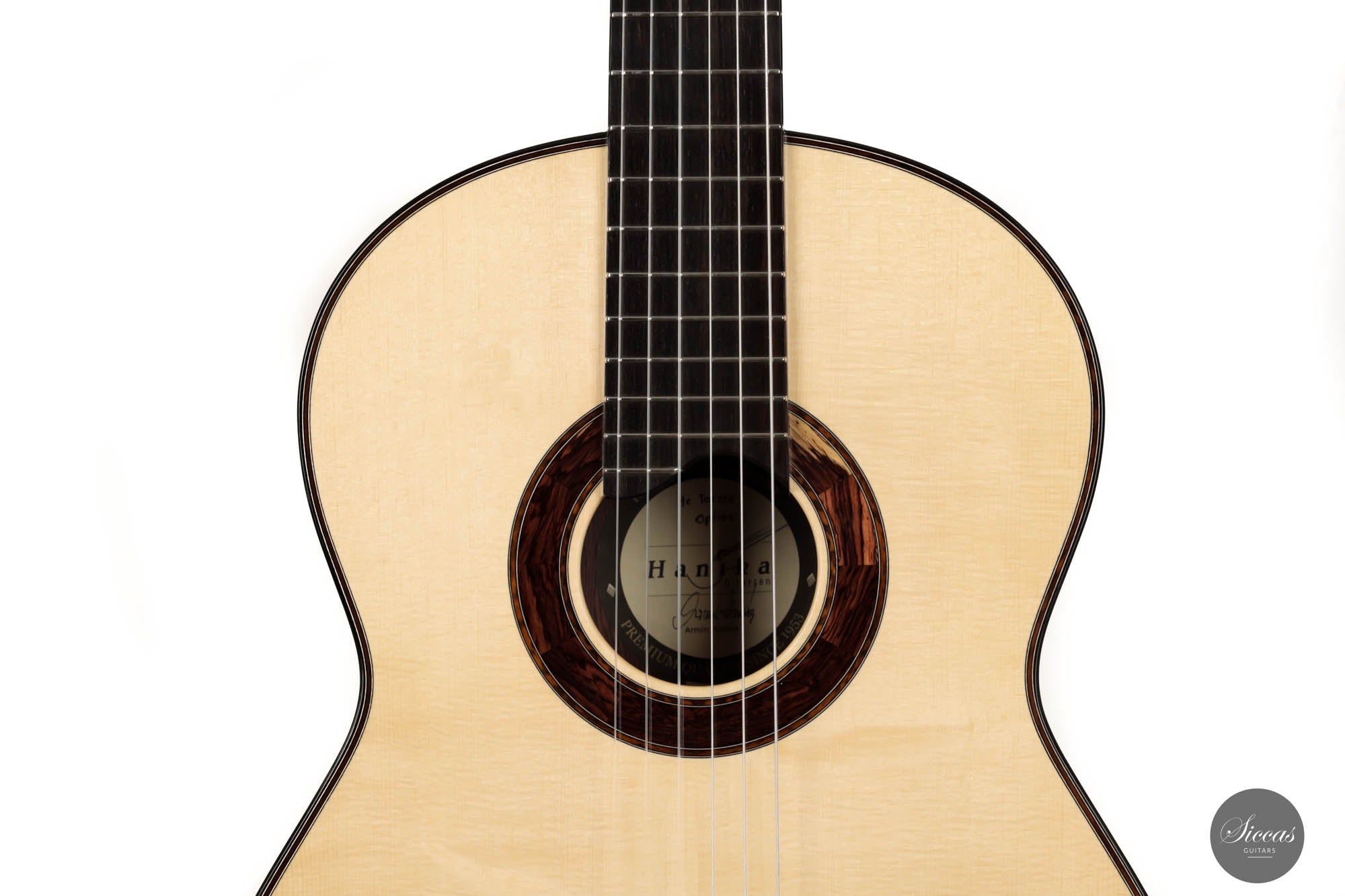 The HE Torres model is part of Hanikas’s professional line, representing the peak in guitar-making, sound, and craftsmanship. This instrument is designed and composed to meet the individual needs and requirements of demanding guitar virtuosos. The finest choices of wood, combined with master craftsmanship and the use of the noblest and highest-quality materials, result in a unique piece of sound art.