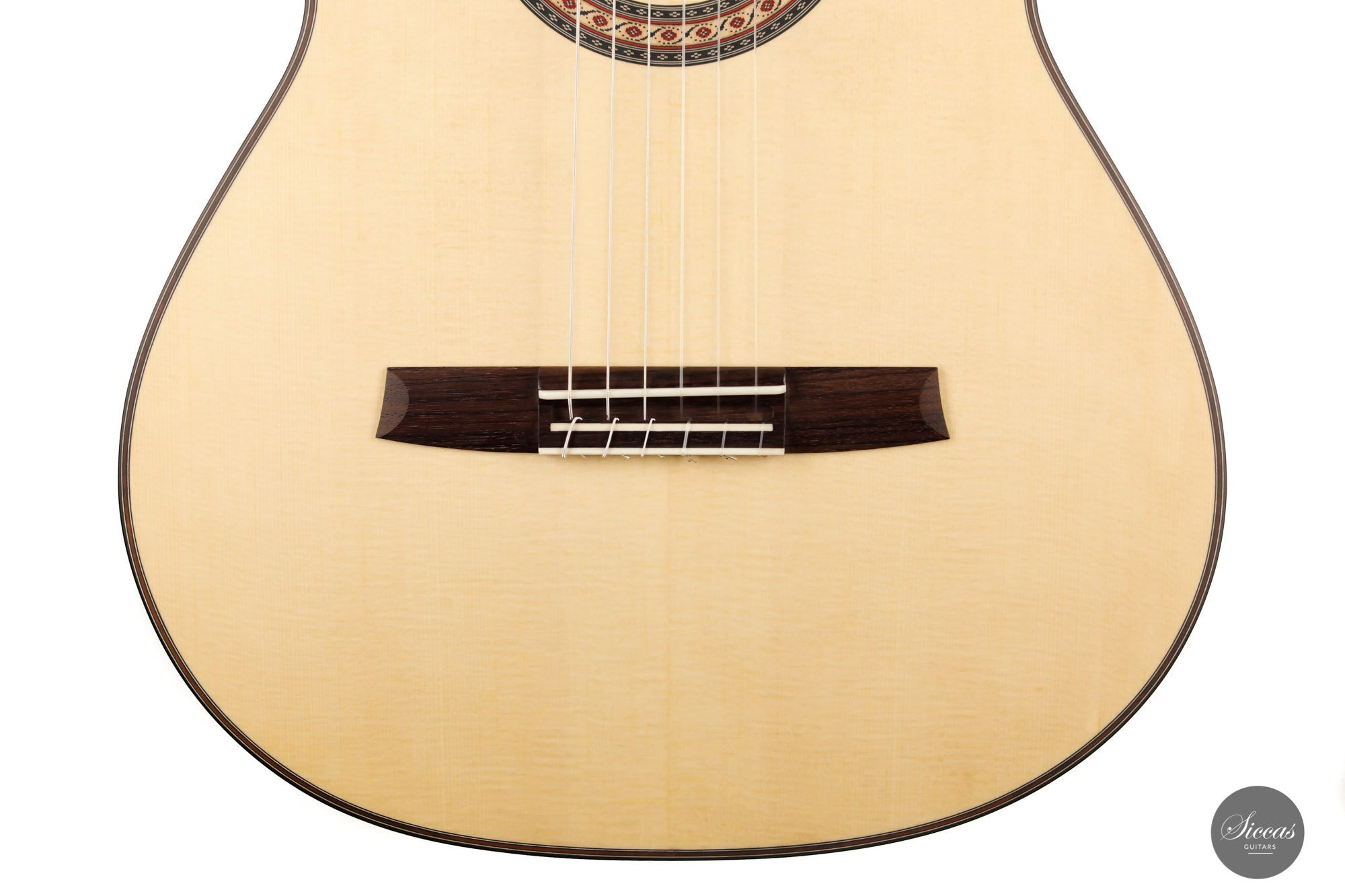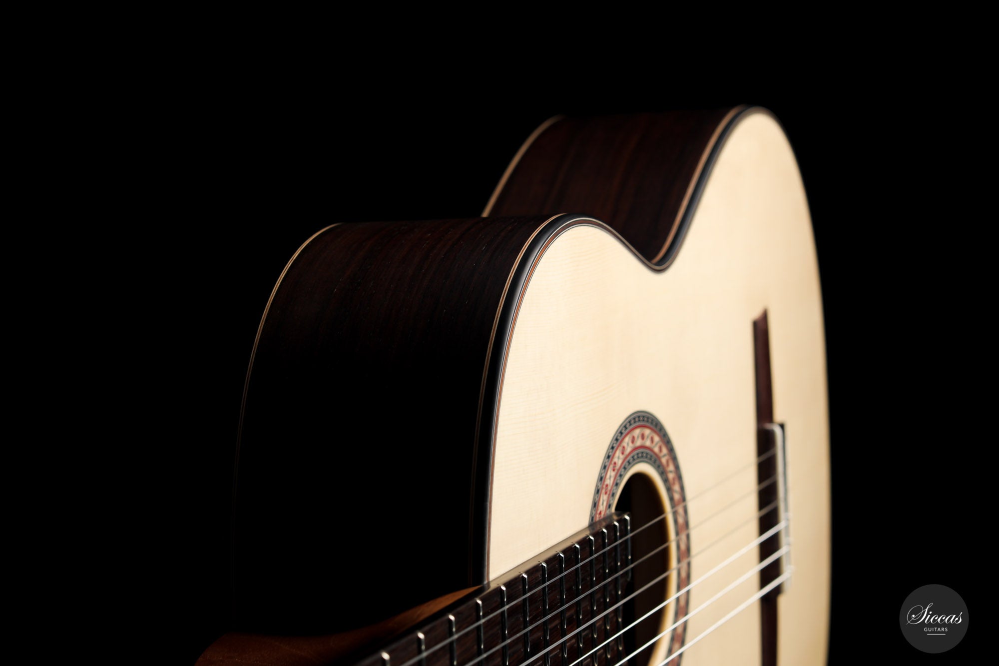 Be mindful when touching your instrument with greasy or unwashed hands: any skin contact is a small attack on the varnish. Of course, a guitar is made to be played, but taking a few precautions helps preserve its beauty: wash your hands before playing, wear long sleeves, and avoid unnecessary direct skin contact with the body of the instrument.