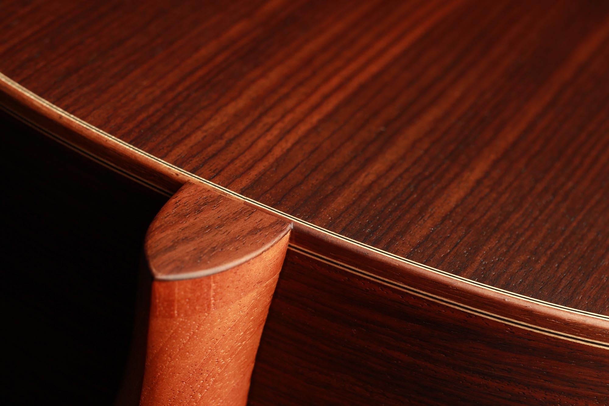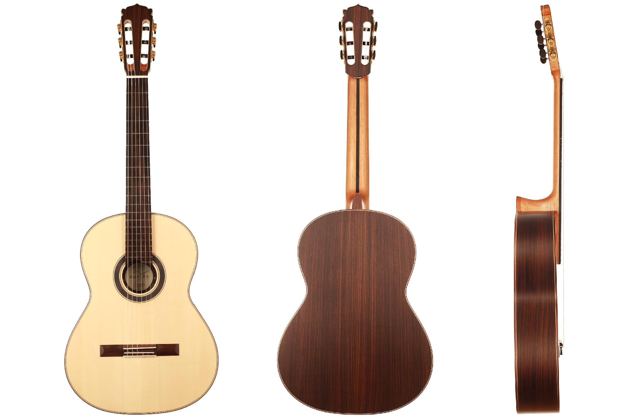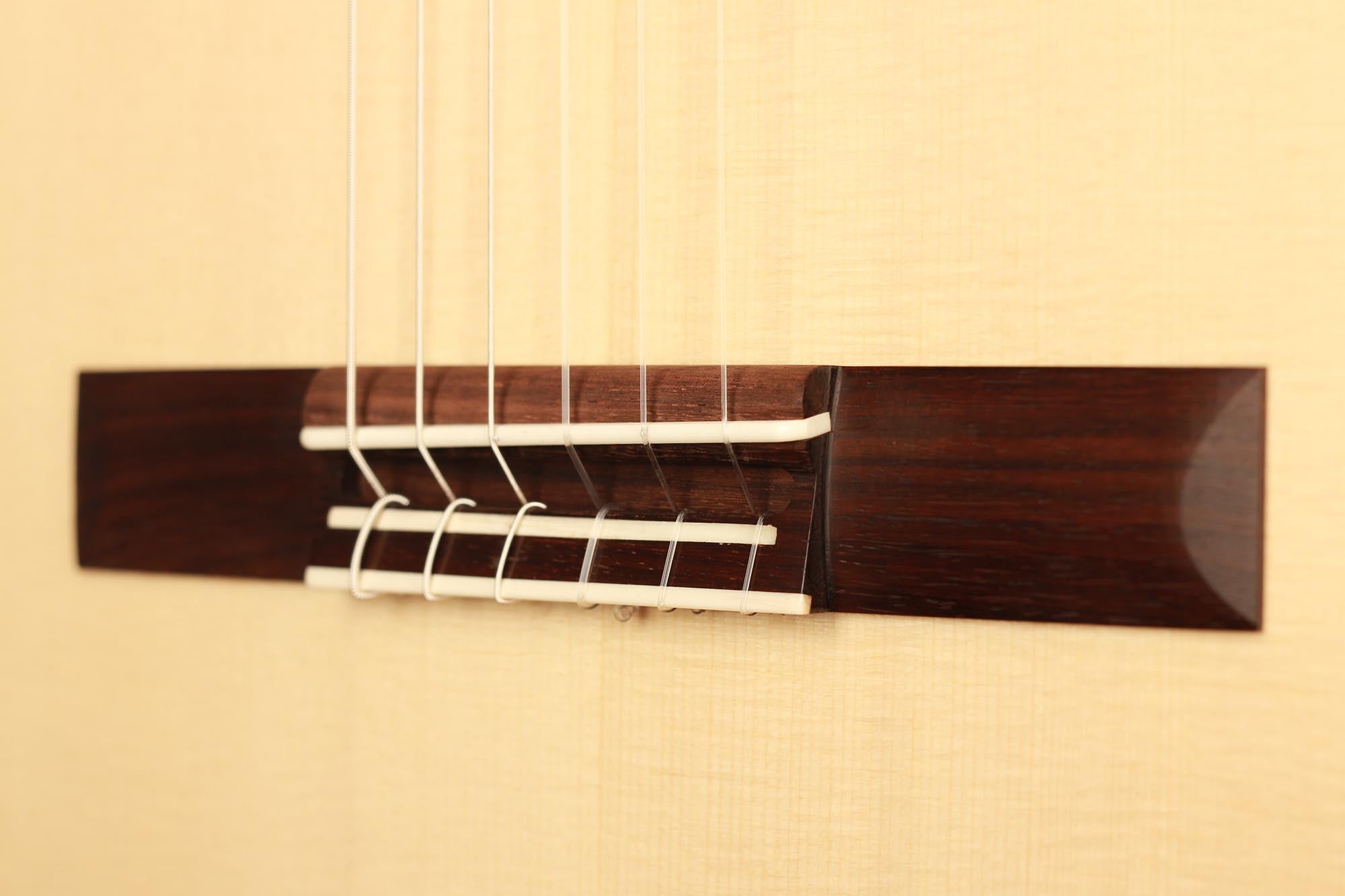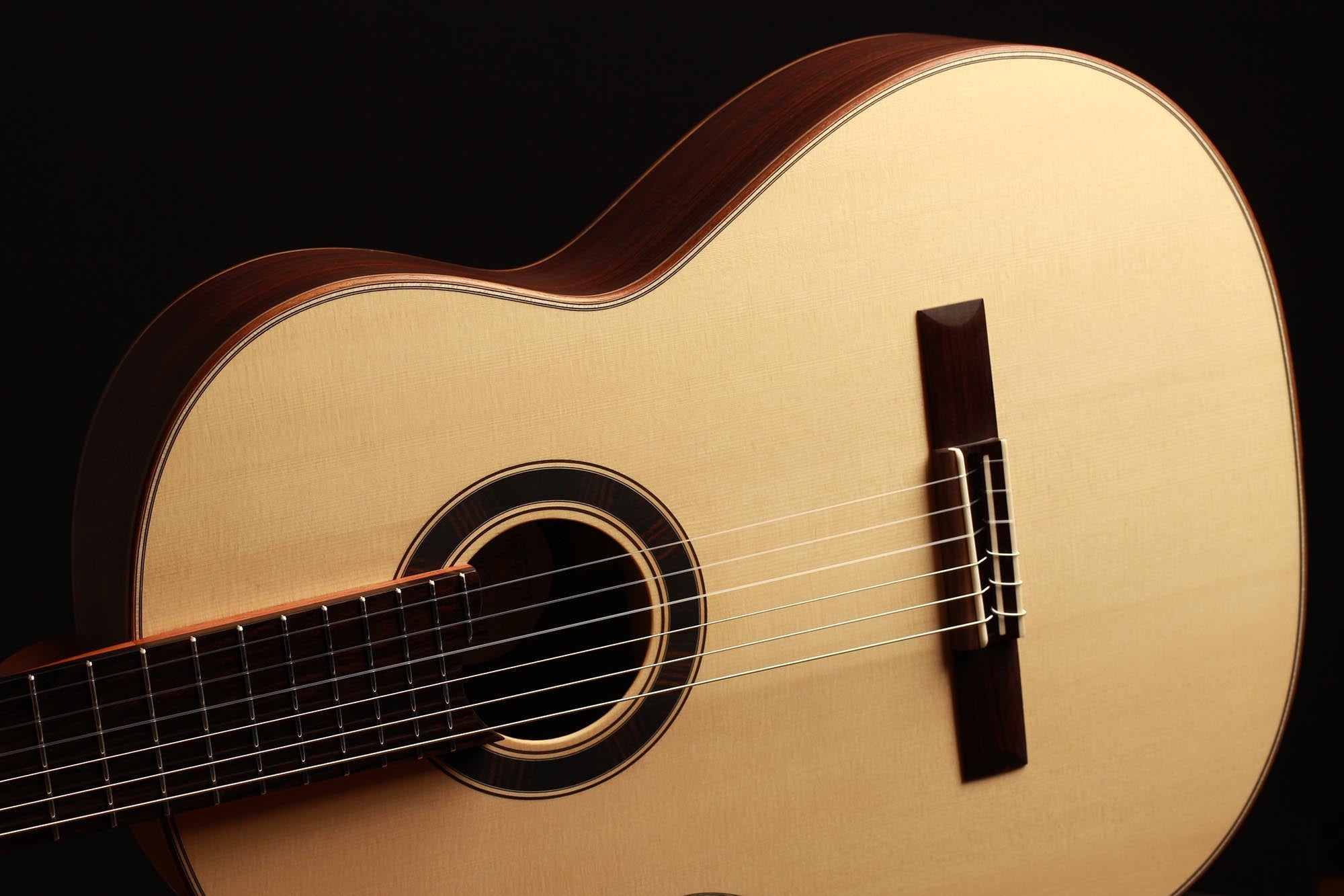 This “Natural PF Custom” guitar is a unique instrument, that bridges the gap between the "Natural" line and the "New Century" line of Armin Hanika. It is built with a traditional seven fan bracing construction and a spruce top. The finish is natural matt with open pores, which is the usual treatment for Hanika guitars of this line. However, this guitar has an elevated fingerboard which is a unique feature for this model.