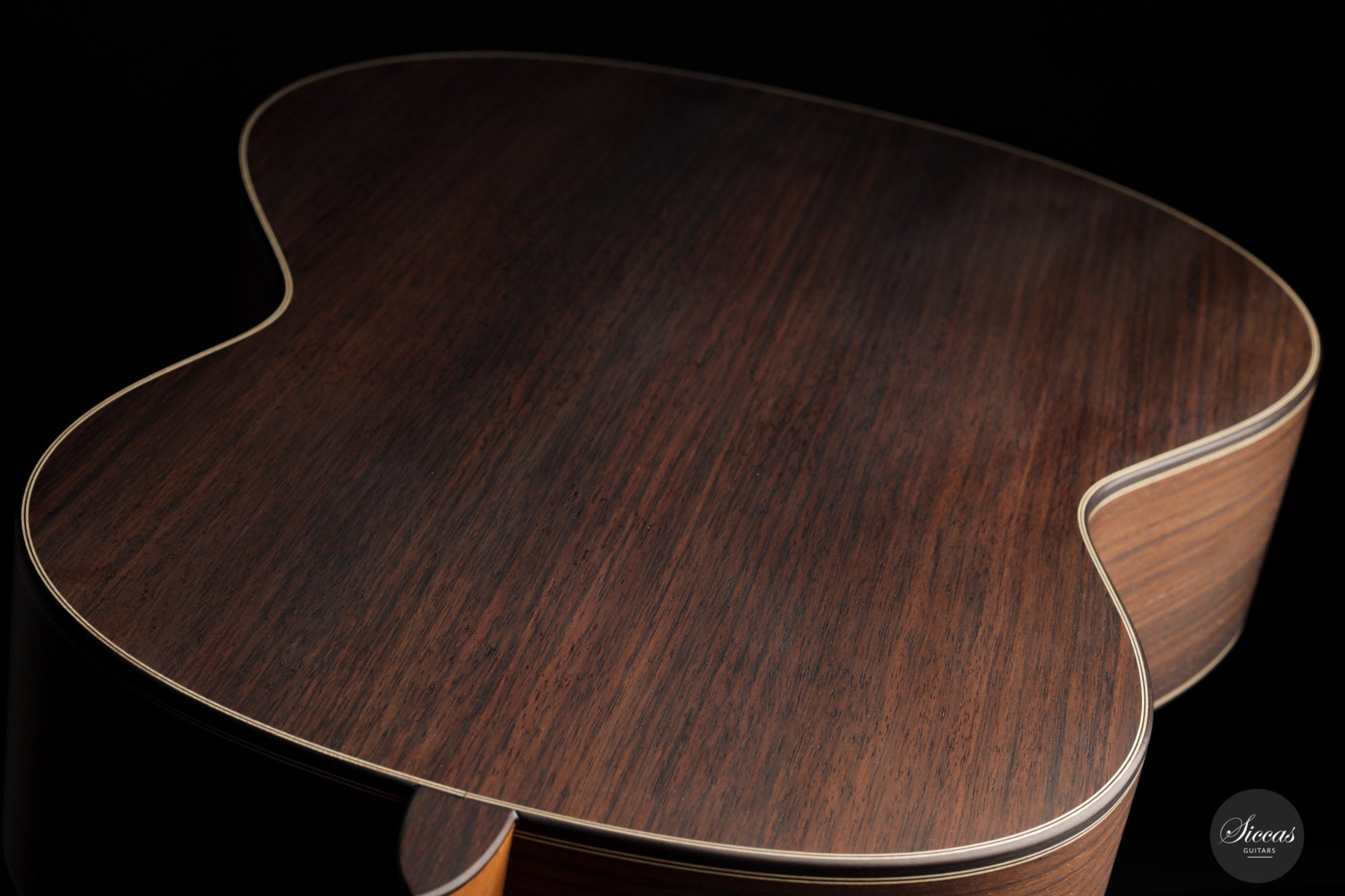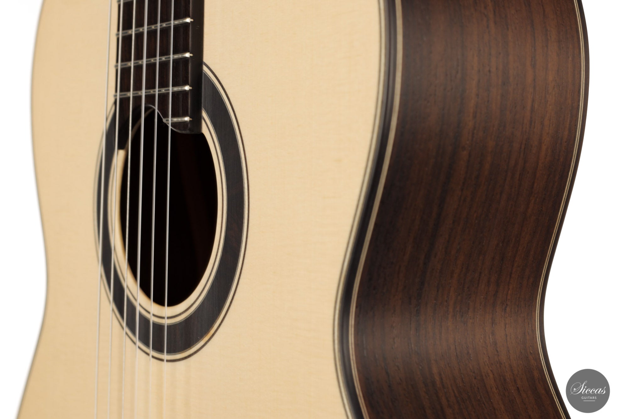 Back and sides of this guitar are made of high quality East Indian rosewood and the top is made of excellent spruce. Rosewood is considered one of the most universal tone woods for guitars, along with the thin spruce top the Natural PF gets a very good attack with full sound and a separated sharp sound. Response and sustain in of this guitar are perfectly balanced, what makes it the perfect instrument for many different type of players. Special feature of this guitar is the HANIKA "NATURAL" surface. This very thin varnish/wax sealing makes the surface more resistant to typical playing loads and yet the thin sealing creates a particularly open and transparent sound.