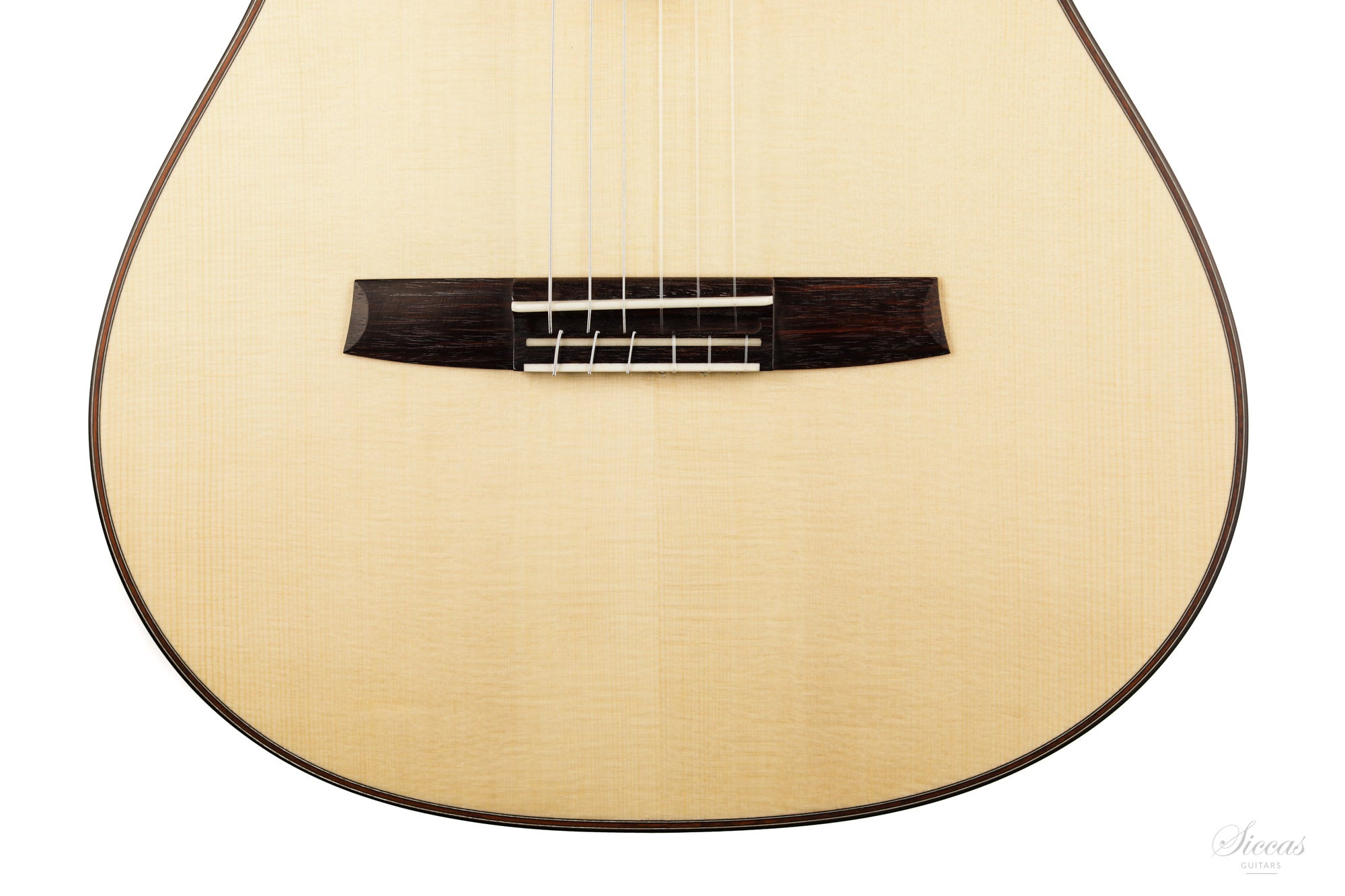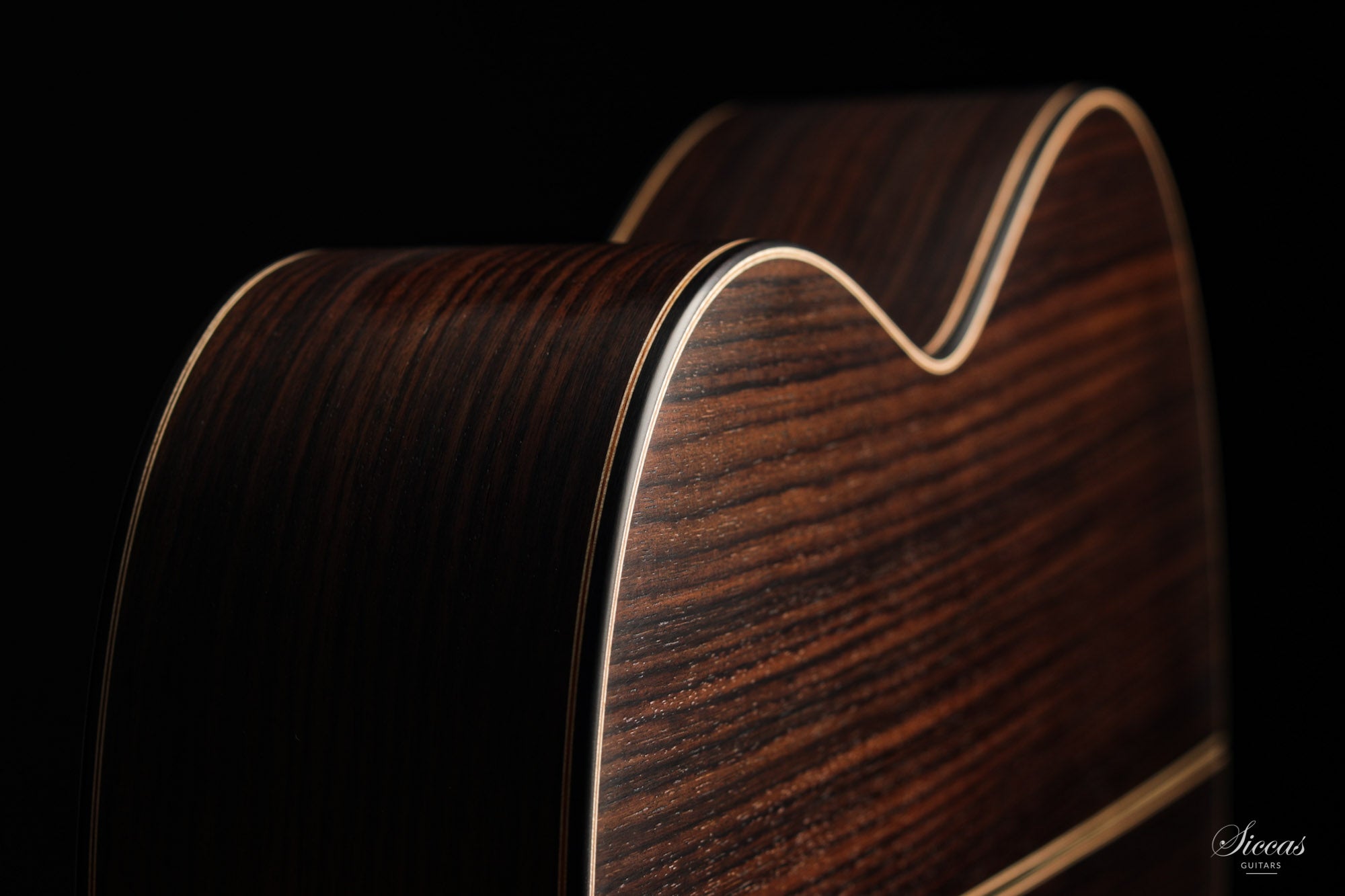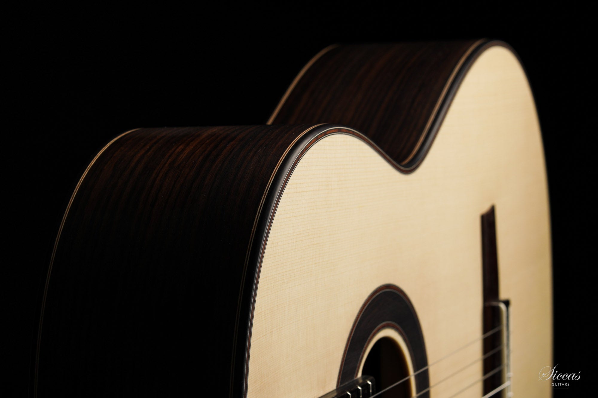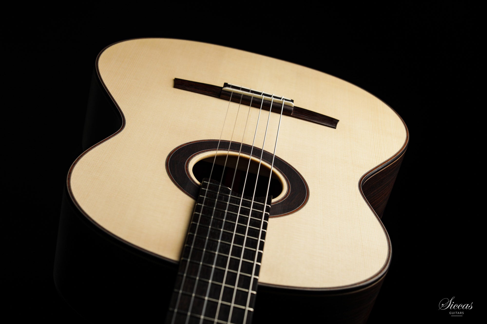 Be mindful when touching your instrument with greasy or unwashed hands: any skin contact is a small attack on the varnish. Of course, a guitar is made to be played, but taking a few precautions helps preserve its beauty: wash your hands before playing, wear long sleeves, and avoid unnecessary direct skin contact with the body of the instrument.
