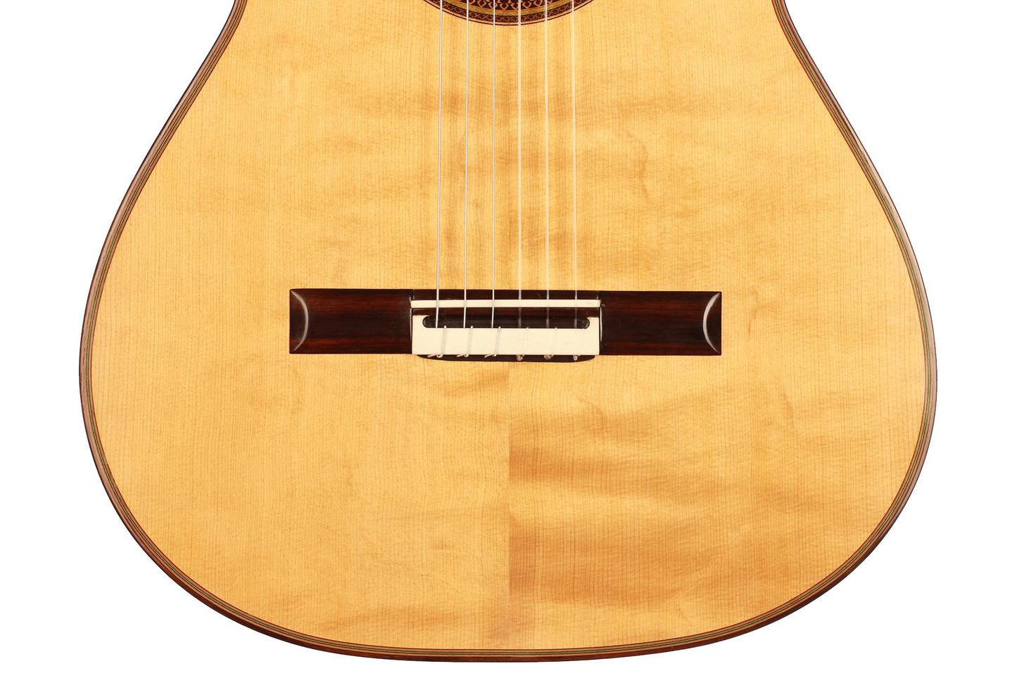 - Lattice bracing: The light lattice bracing permit an homogeneous vibration of the top, producing a strong and balanced sound in all registers.
