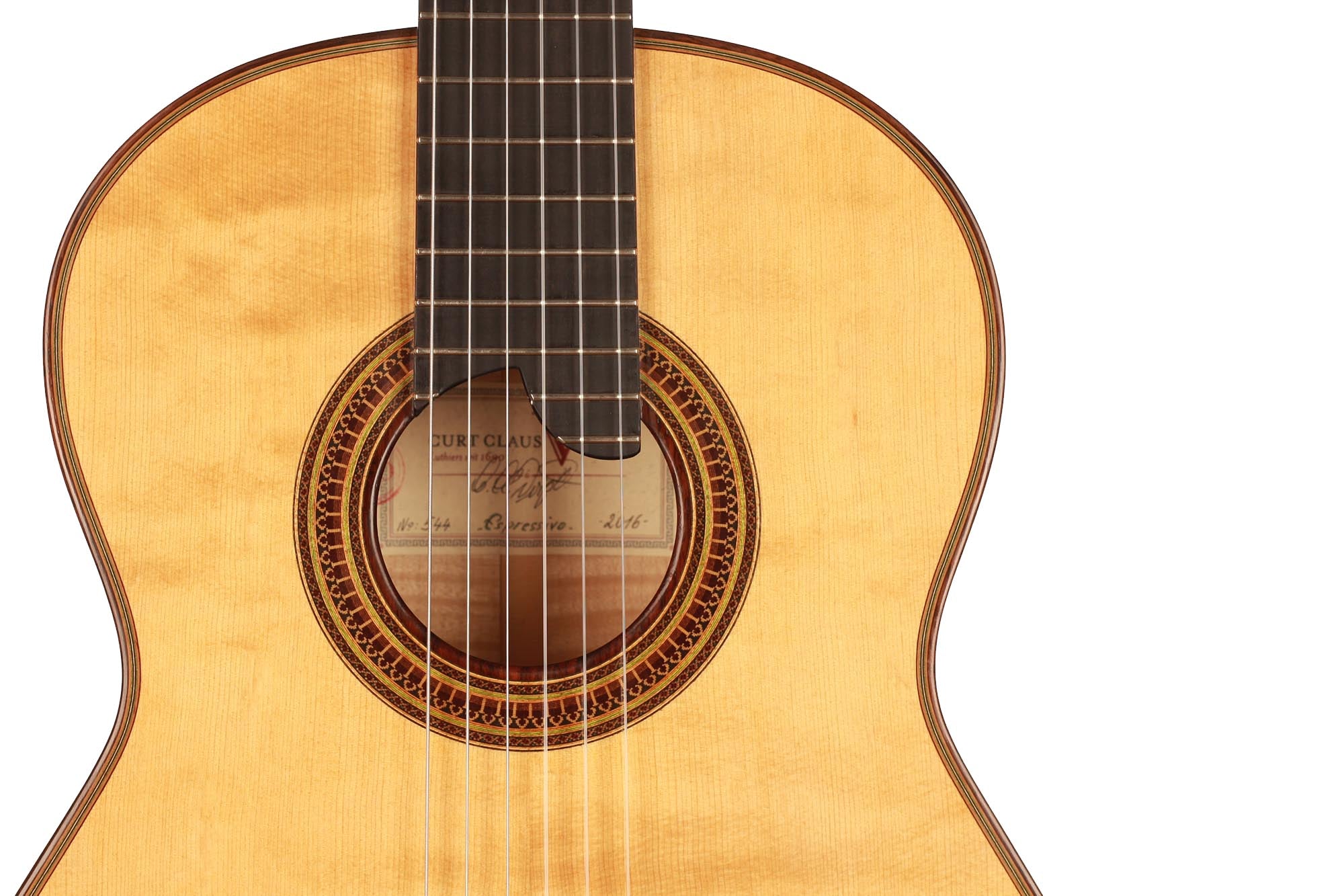 - Zero fret: This is a little relic from German guitar builders of the past. Curt Claus Voigt believes that with the zero fret, the sound quality matching of the open notes and the fretted notes is greatly improved.