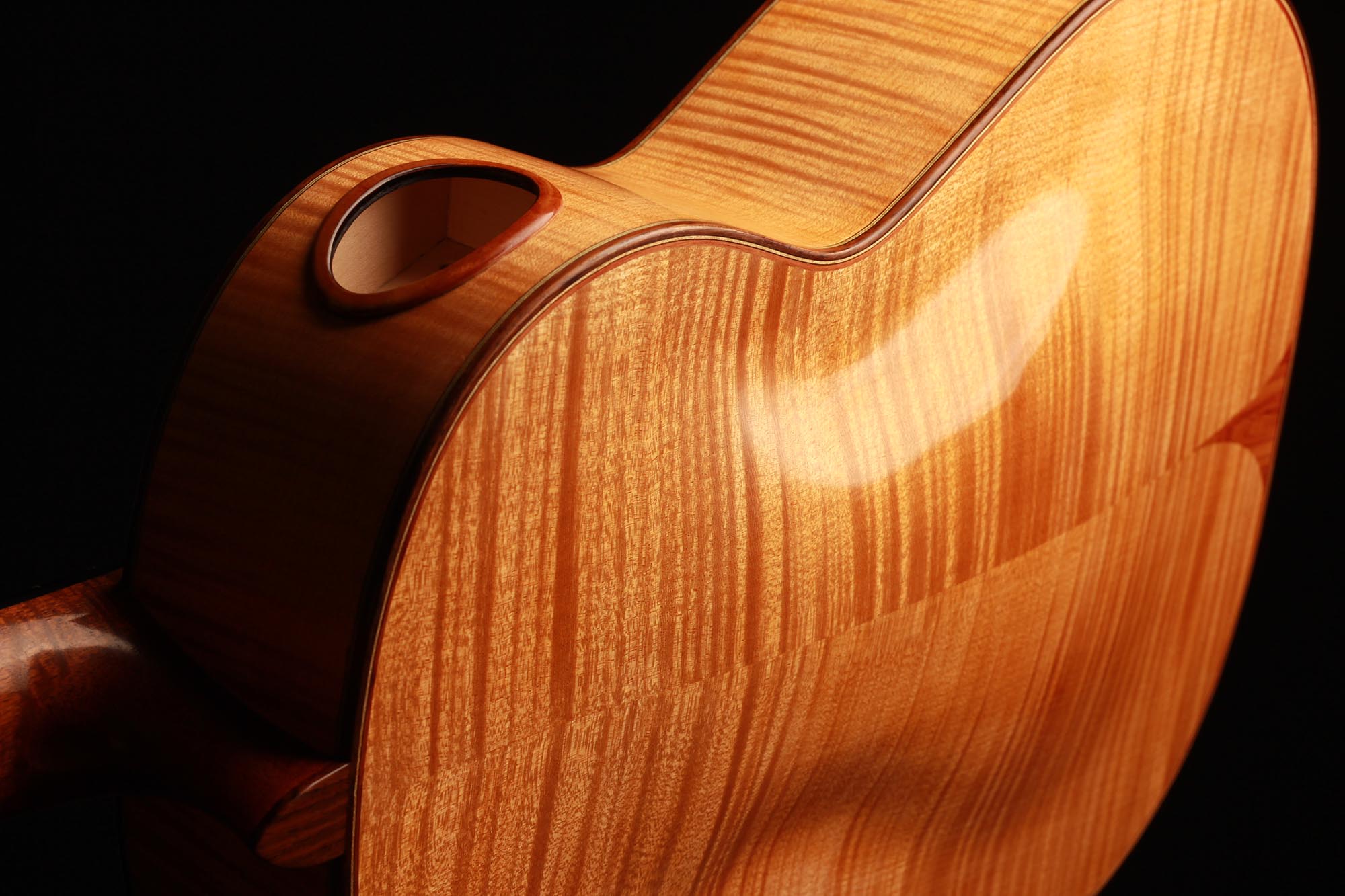 - Sound port: The extra sound hole in the upper bout helps the guitarist to better control his playing. The built-in sound box inside the body focuses the sound to the player. Excellent for chamber musicians.