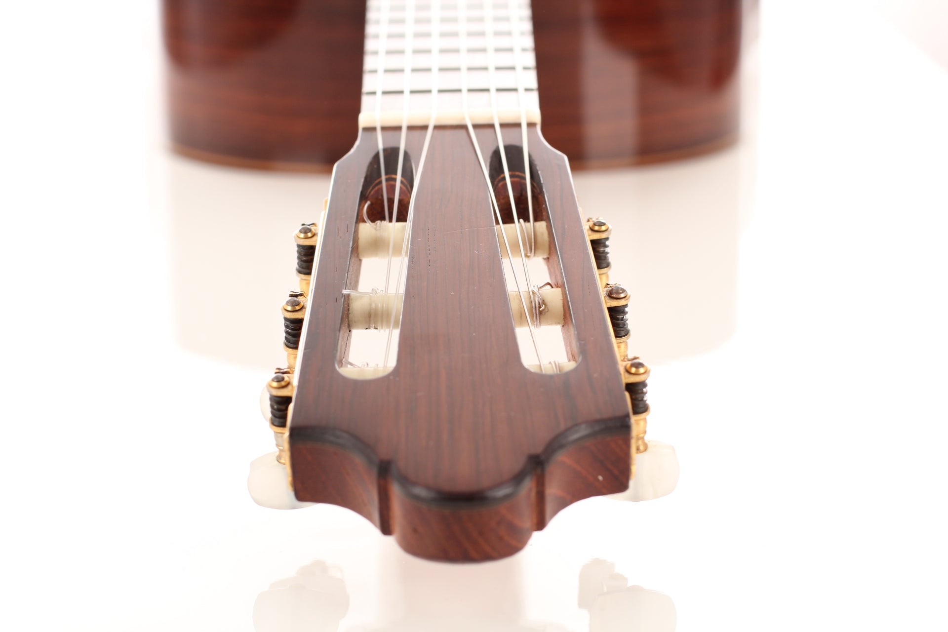 Luthier: José Luis RomanillosConstruction Year: 1979Construction Type: TraditionalTop: SpruceBack and Sides: Indian rosewoodSoundboard Finish: French polishBody Finish: French polishAir Body Frequency: G / G sharpWeight (g): 1410Tuner: Klaus SchellerCondition: Excellent