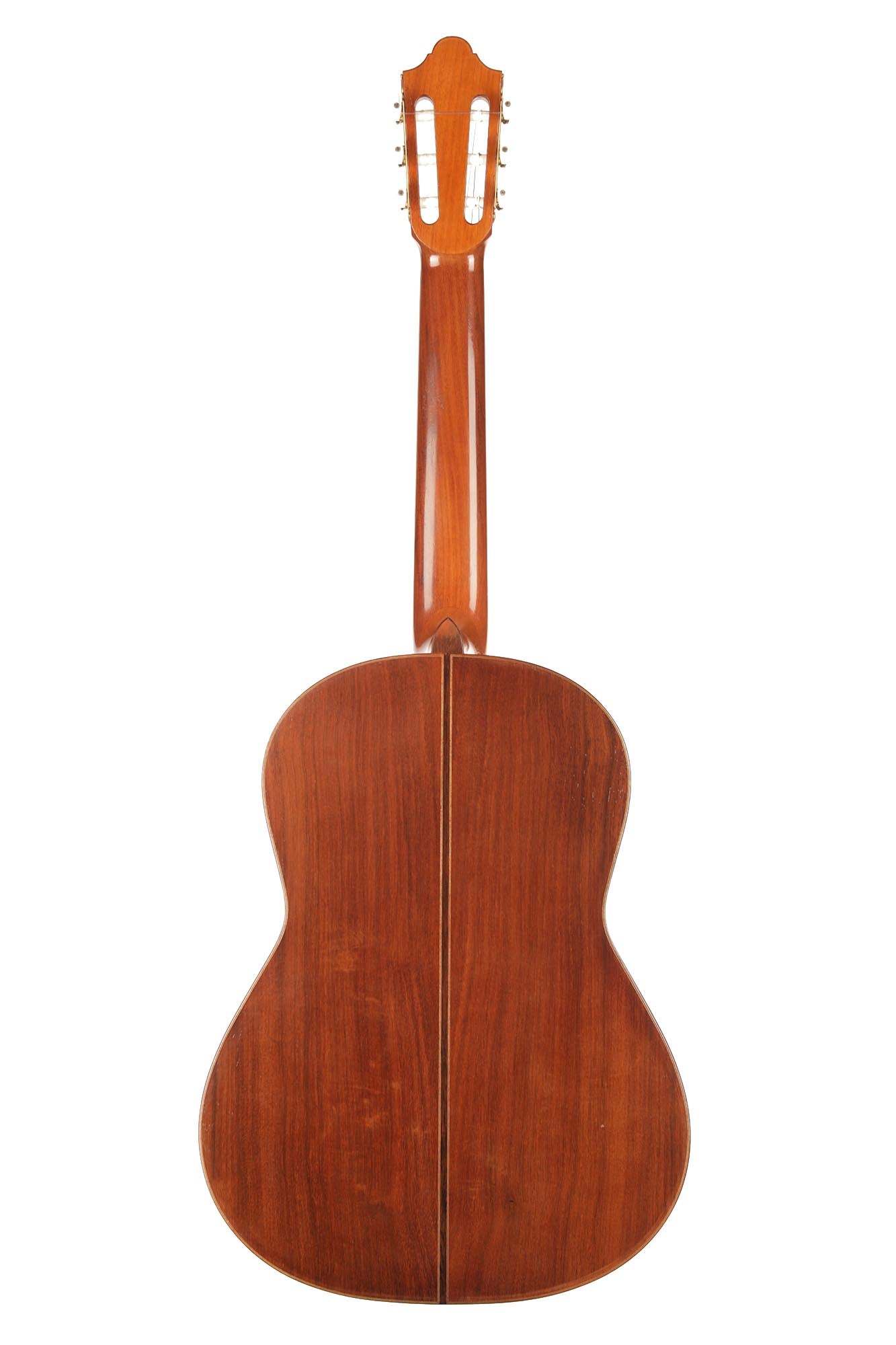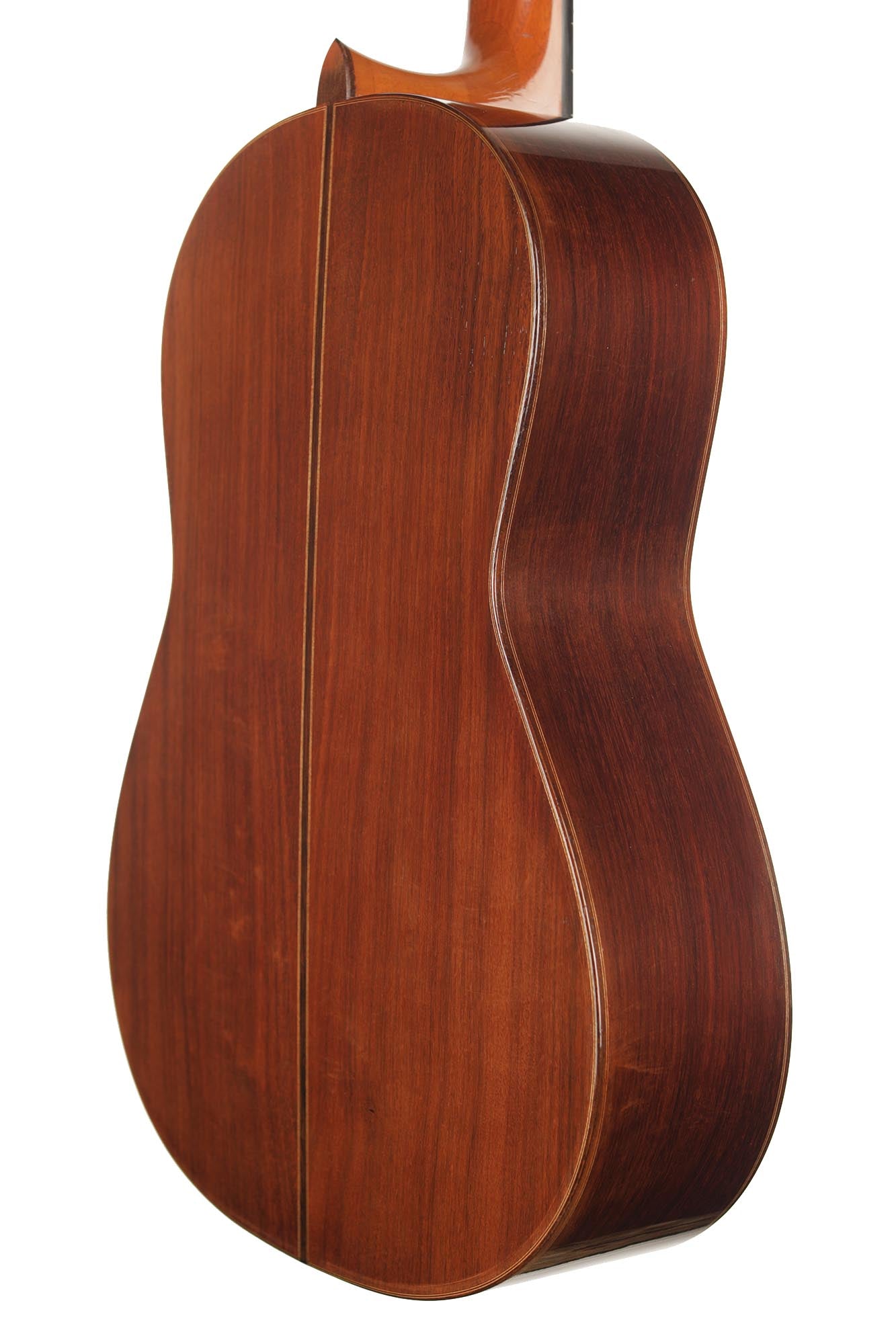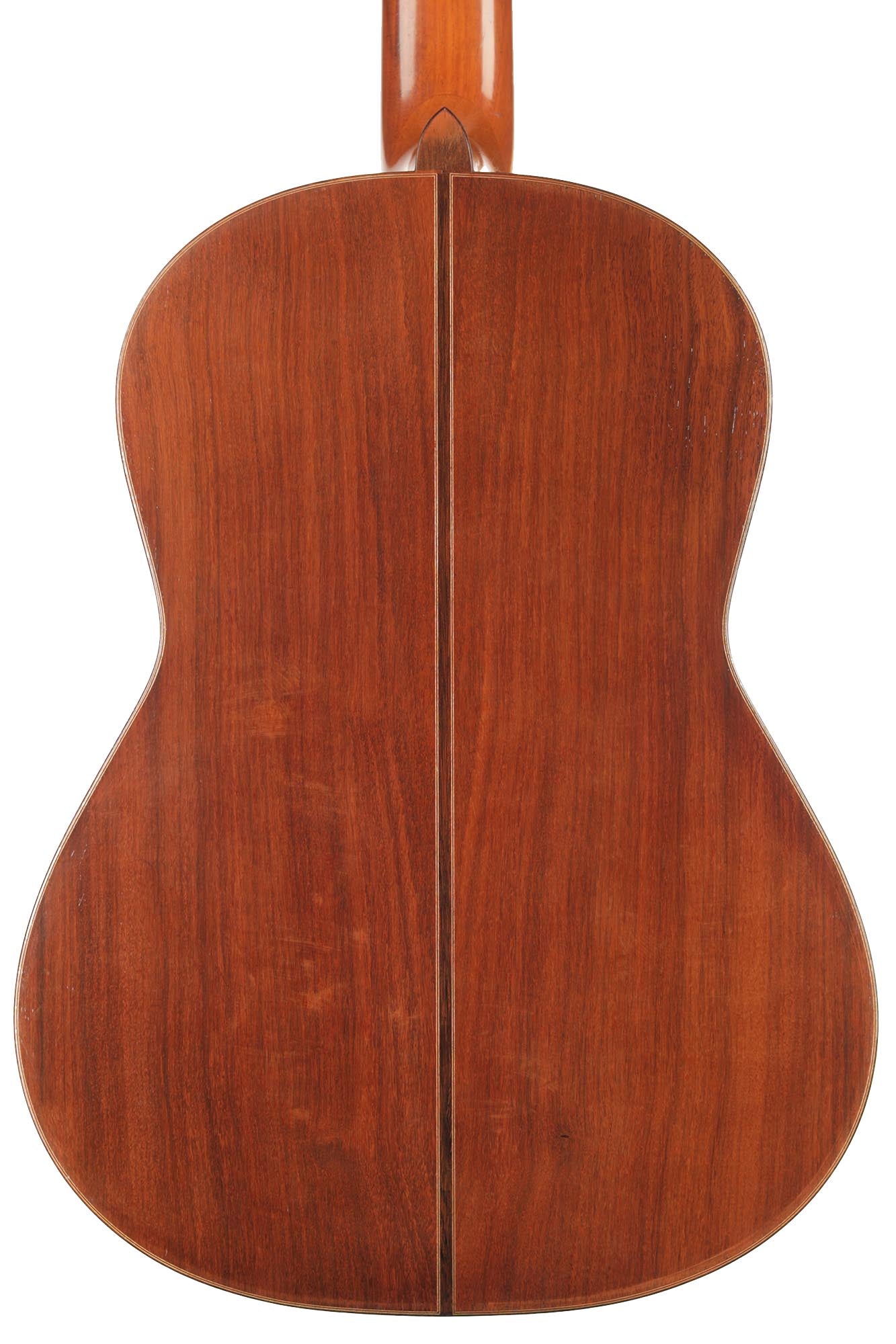 This breath-taking top concert model from 1978 was built with a beautiful dark cedar top. It is very responsive and easy to play and offers a range of charming timbres. The trebles sound crystal clear and impressively rich in overtones, almost bell-like with a beautiful long sustain. The basses are pleasantly warm and powerful; not dominating the sound and allowing the trebles a lot of freedom to unfold, resulting in a more than well-balanced sound. When playing the open strings one has the impression of being in a cathedral. This guitar by Daniel Friedrich was played a lot and therefore shows traces of playing on the whole body, but is completely free of cracks or repairs. This is a world-class guitar, which convinces with a wonderful sound and gives every player and enthusiast a lot of emotions and possibilities to express themselves.