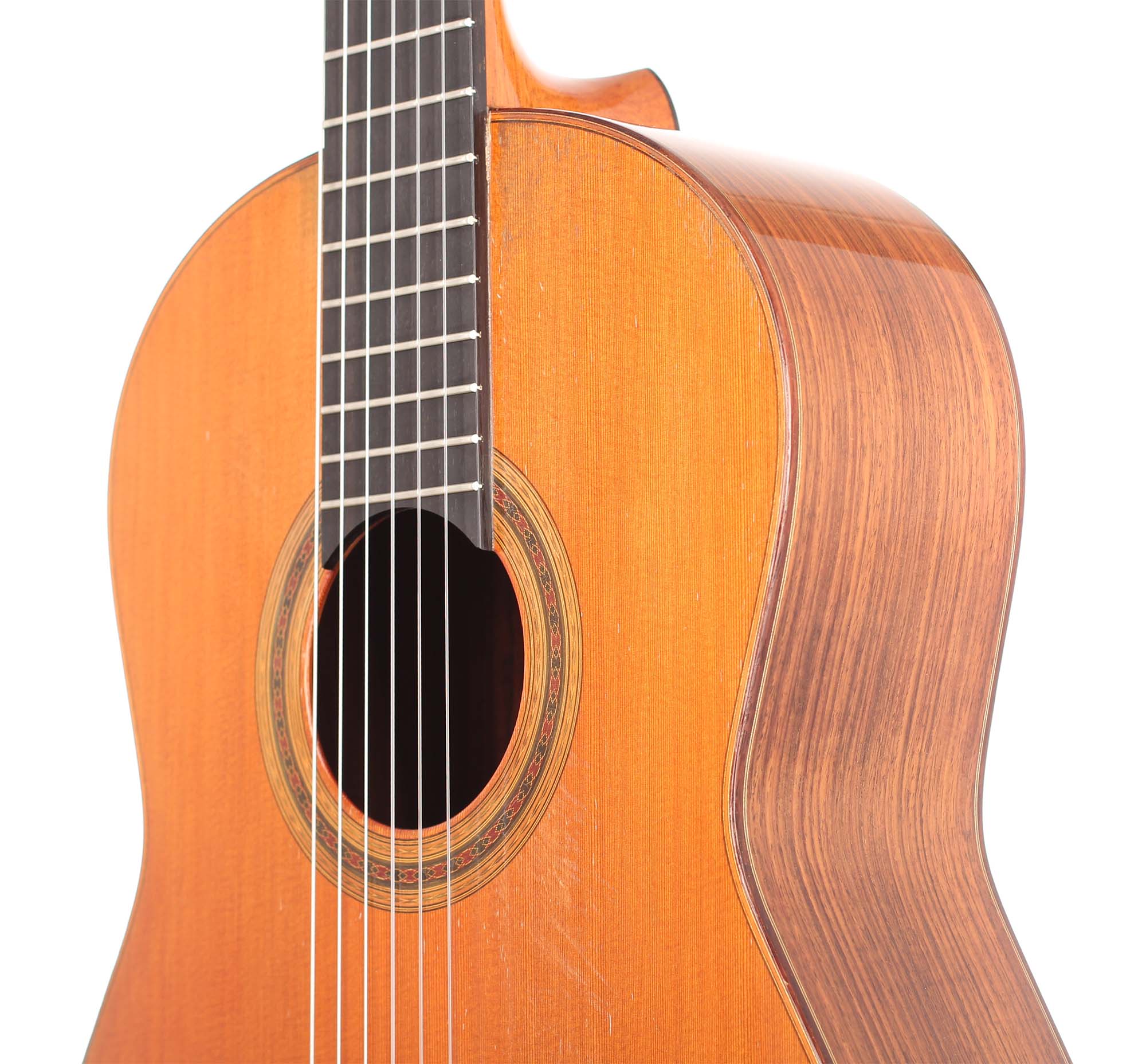 Luthier: José Luis RomanillosConstruction Year: 1979Construction Type: TraditionalTop: SpruceBack and Sides: Indian rosewoodSoundboard Finish: French polishBody Finish: French polishAir Body Frequency: G / G sharpWeight (g): 1410Tuner: Klaus SchellerCondition: Excellent