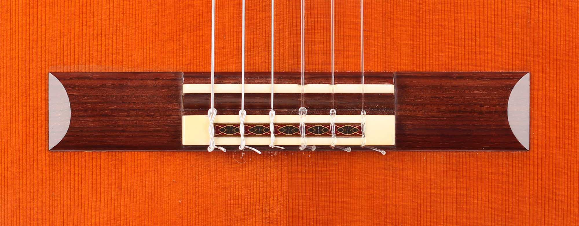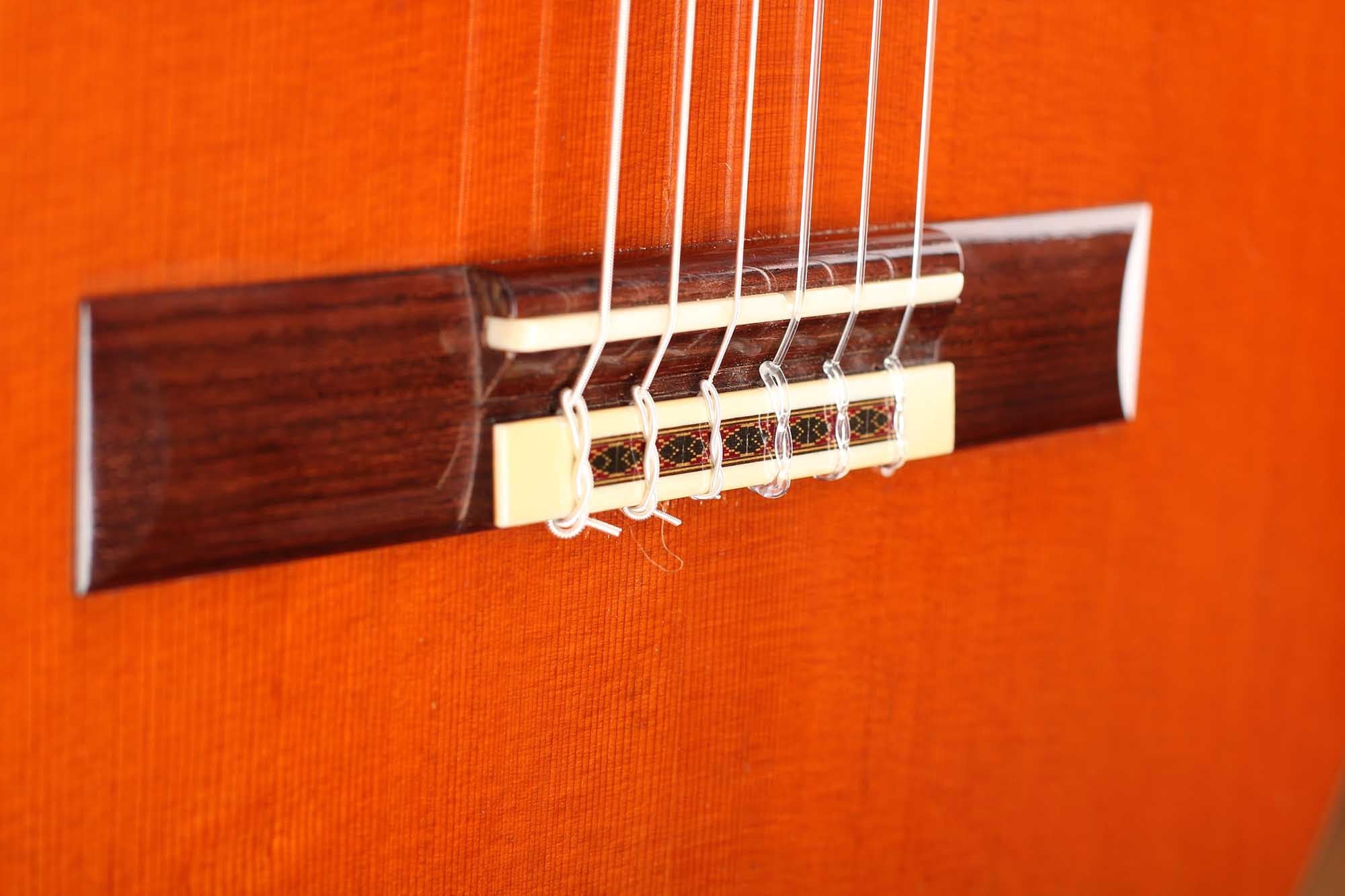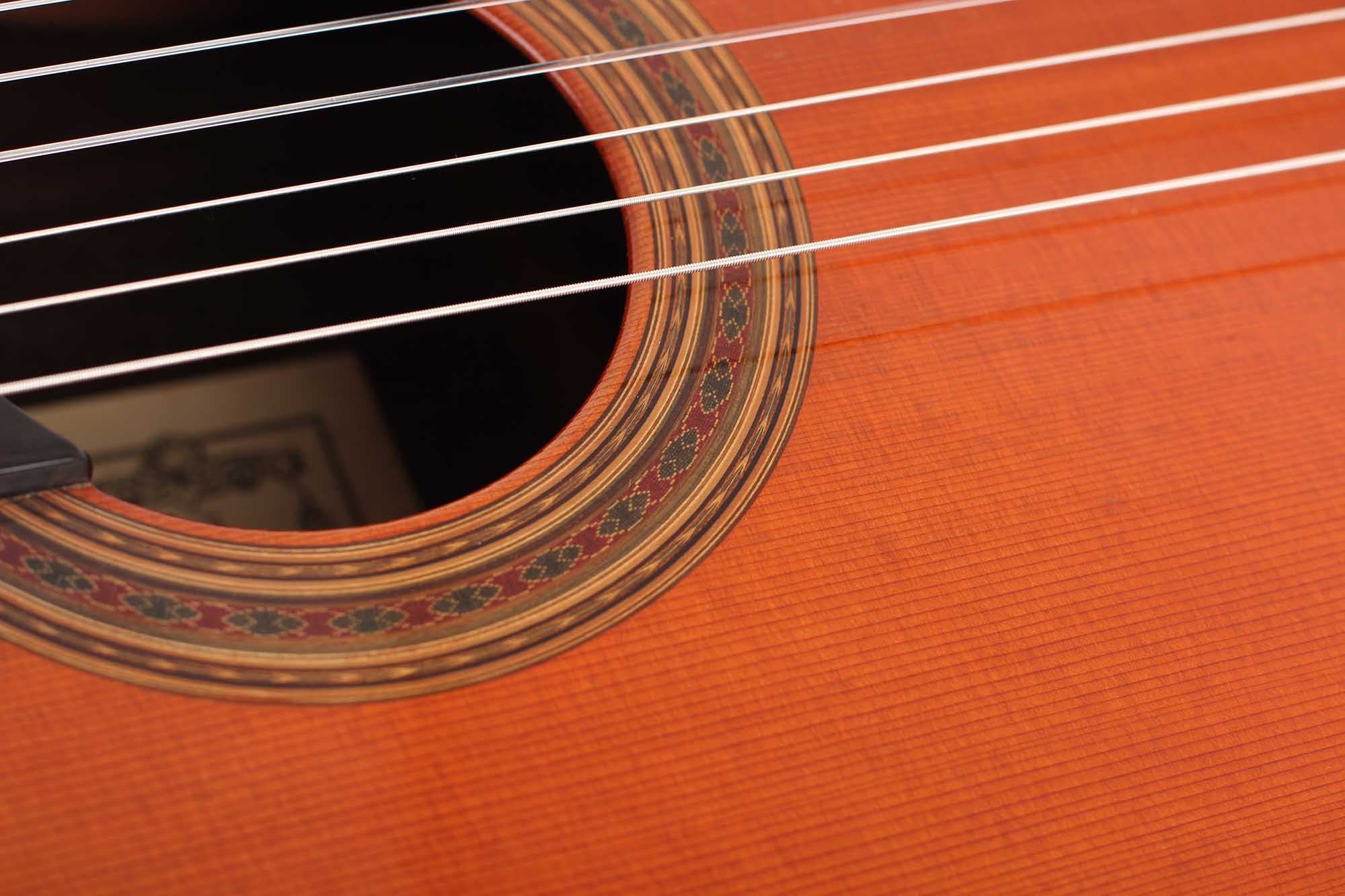 At the beginning of his career as a luthier he built some spruce top guitars, which changed in the 1970’s when he started to devote himself mainly to the construction of guitars with a cedar top. This cedar top guitar was made by Friederich in 1990. The guitar has no cracks or repairs. On the top you can find some marks. The tone is very rich tone of cedar and at the same time the clarity and the sustain of spruce. The original tuners are made by Fustero.