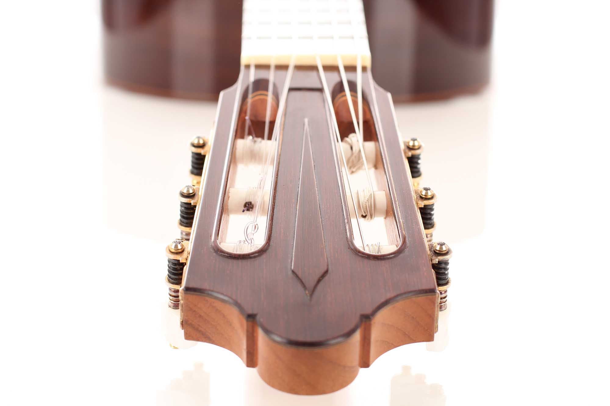 Luthier: José Luis RomanillosConstruction Year: 1979Construction Type: TraditionalTop: SpruceBack and Sides: Indian rosewoodSoundboard Finish: French polishBody Finish: French polishAir Body Frequency: G / G sharpWeight (g): 1410Tuner: Klaus SchellerCondition: Excellent