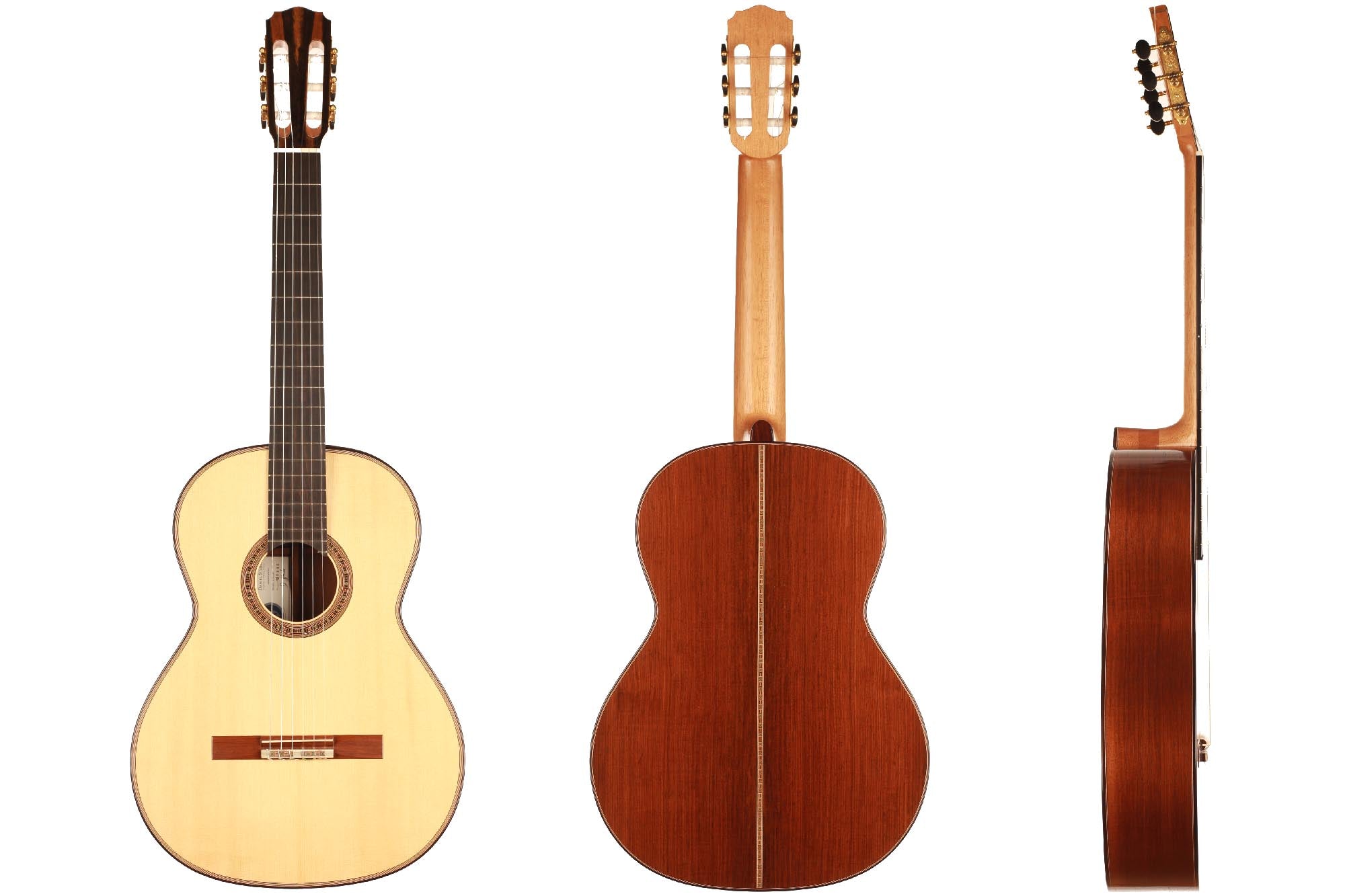 The classical guitar, with its soft nylon strings and characteristic timbre, has become a symbol of chamber music, Spanish tradition, and concert repertoire. Its modern form was shaped by Antonio de Torres in the 19th century, setting the standard for the body, fan bracing, and the 65-centimeter scale length that are still used today. Instruments in this category open up a rich palette from the refined Romantic miniatures of Tárrega to the majestic concertos of Rodrigo. Here you will find guitars that preserve historical continuity and at the same time inspire new interpretations.