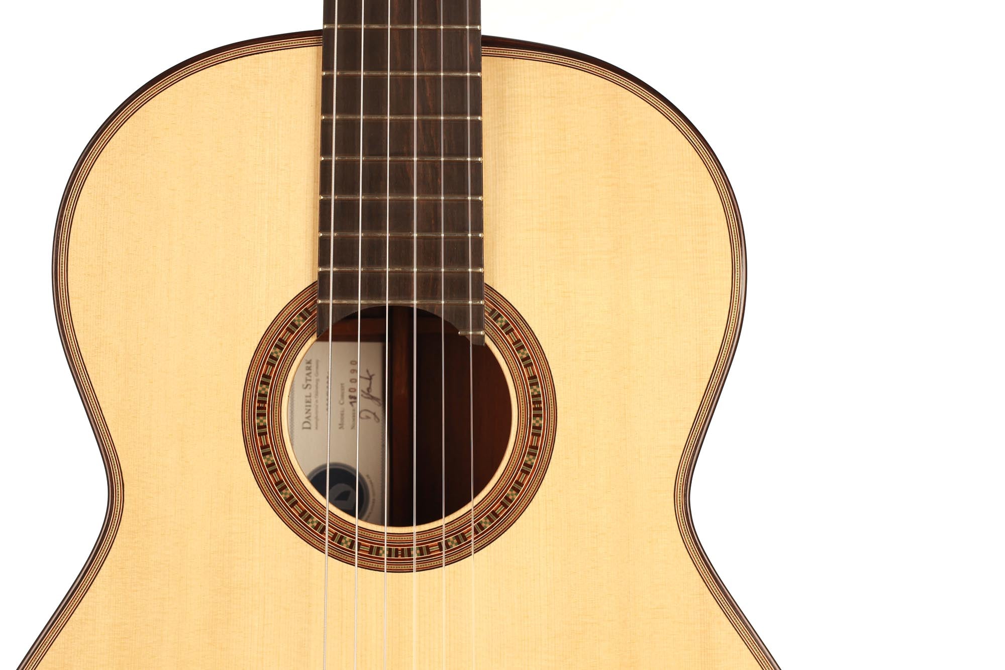 Daniel Stark is a German luthier known for his double-top guitars. His instruments are played all over the world and have been recorded on more than 25 CDs. They are very powerful and refined guitars, whose double-tops are made only of natural materials: a combination of spruce and very light balsa wood.
