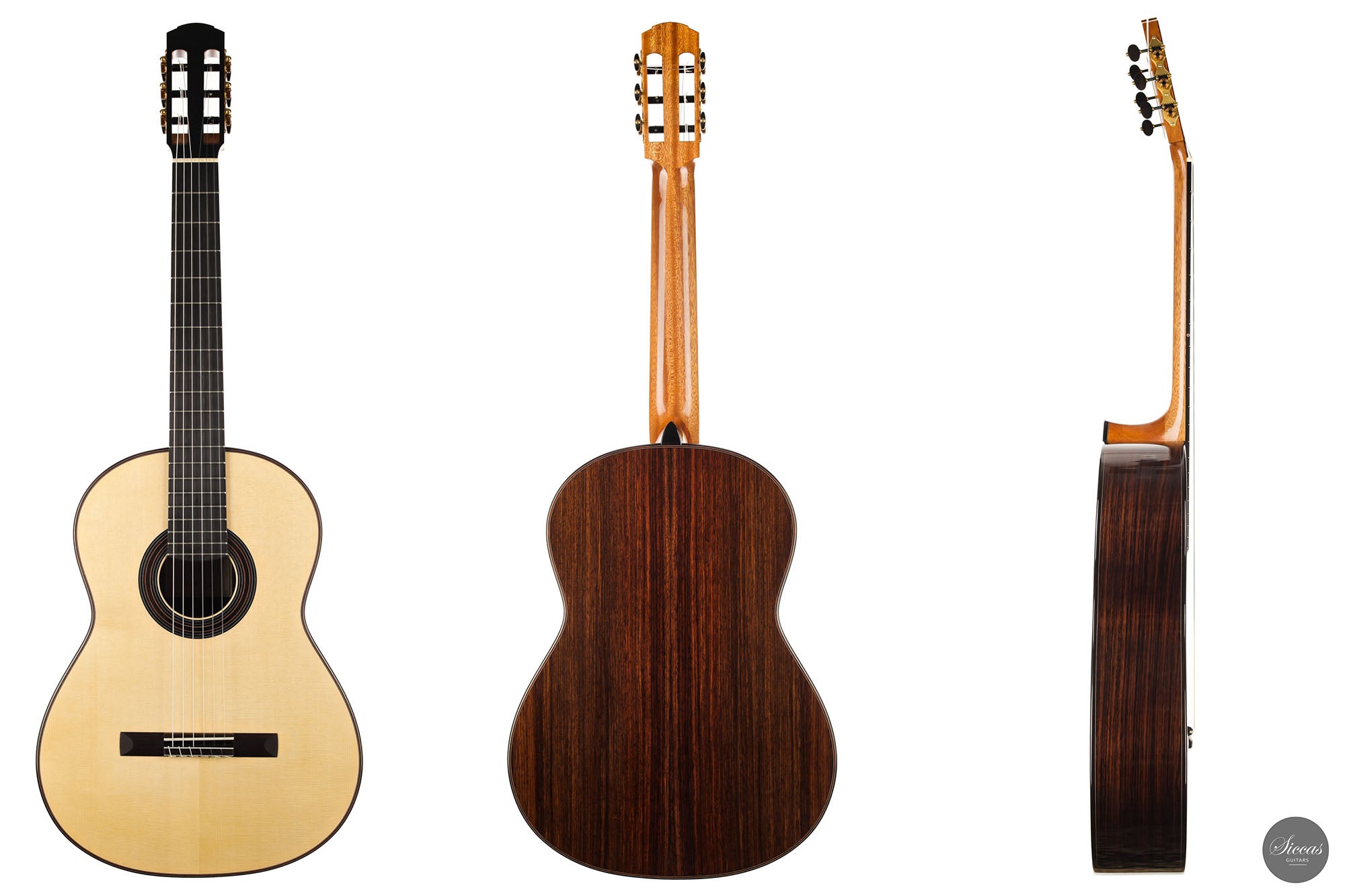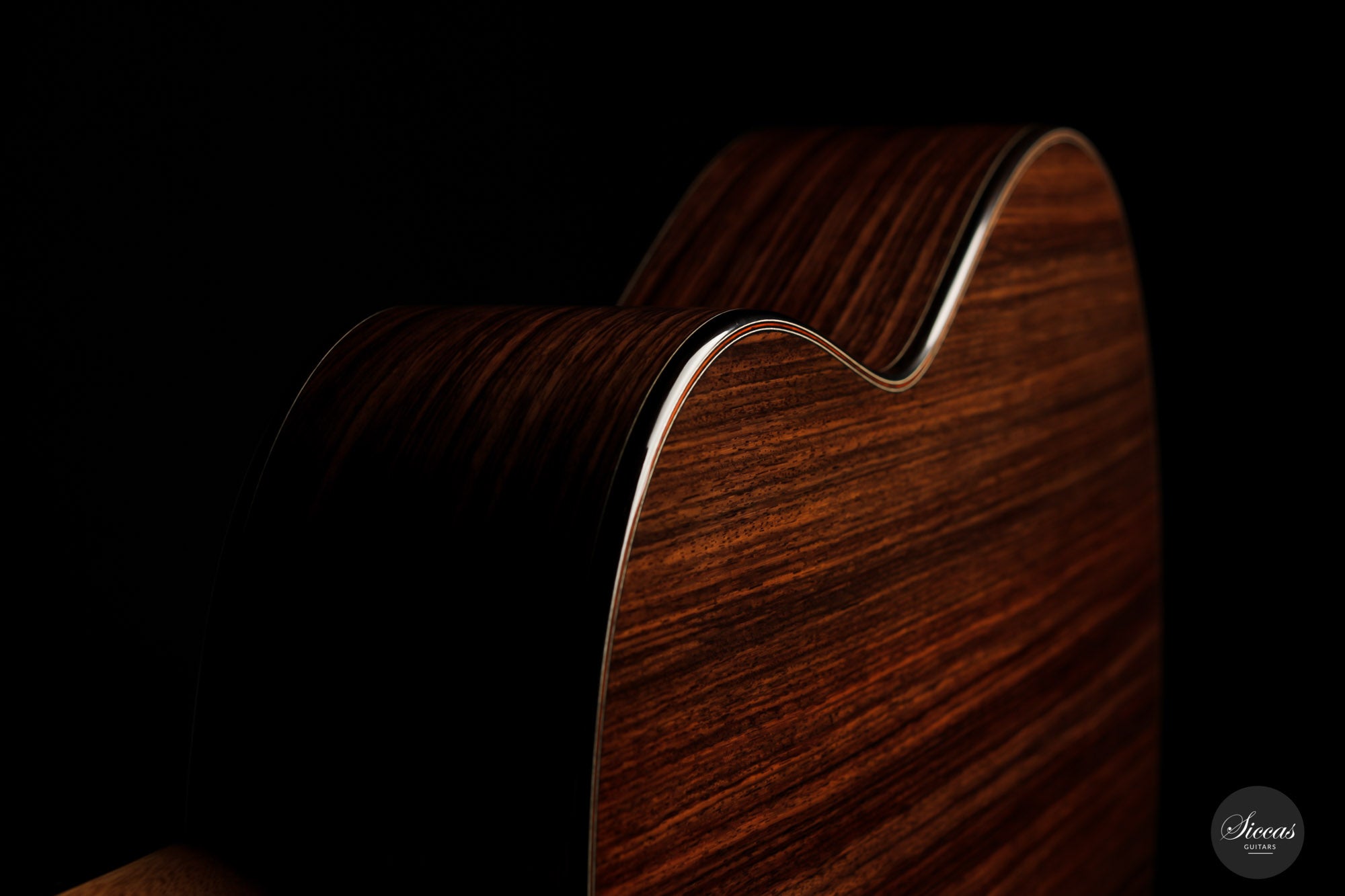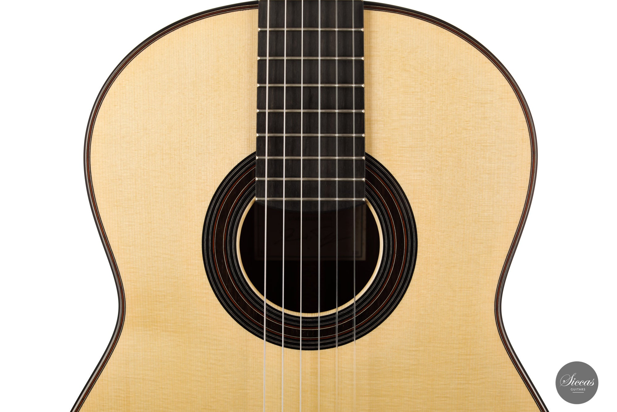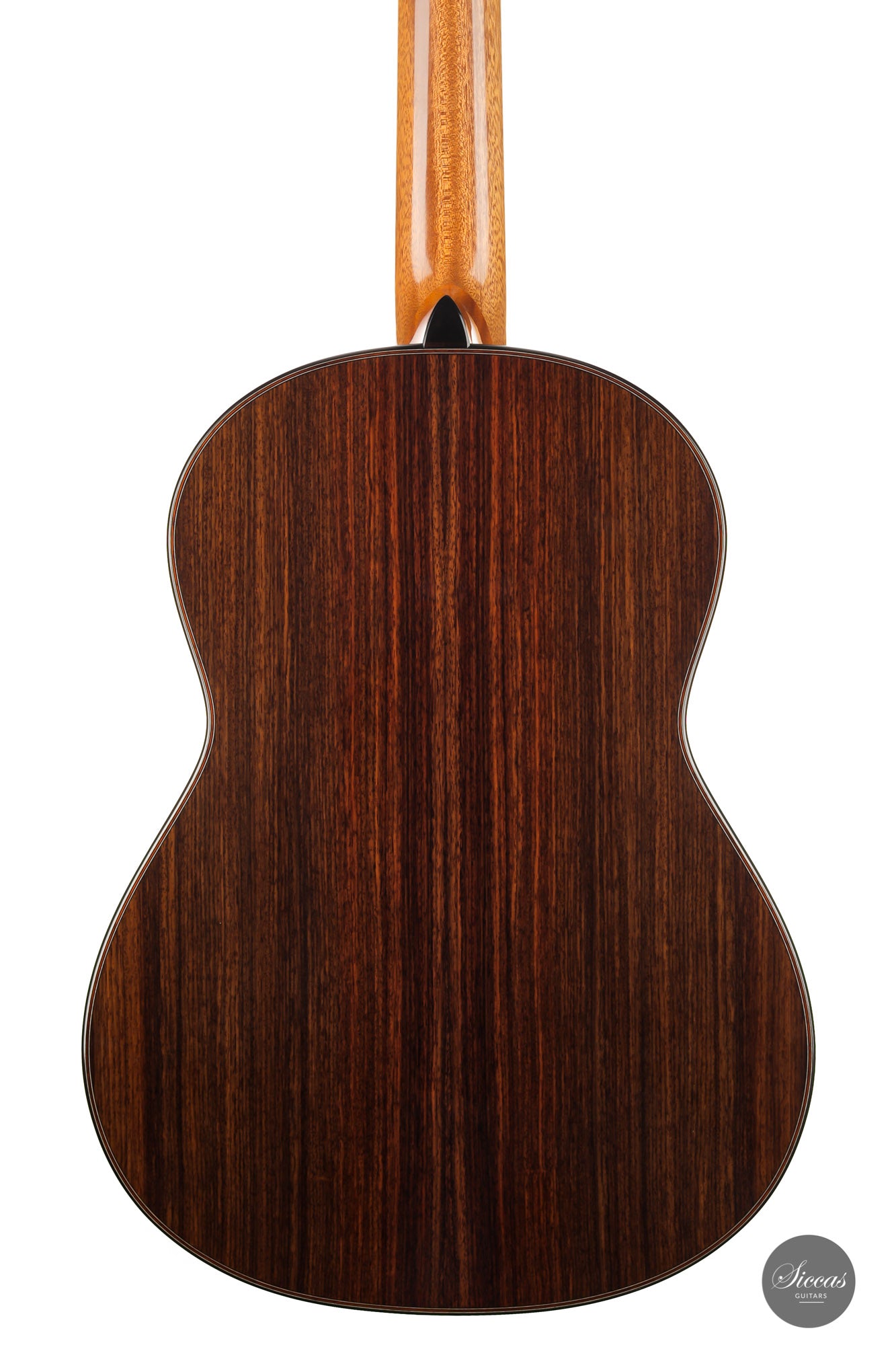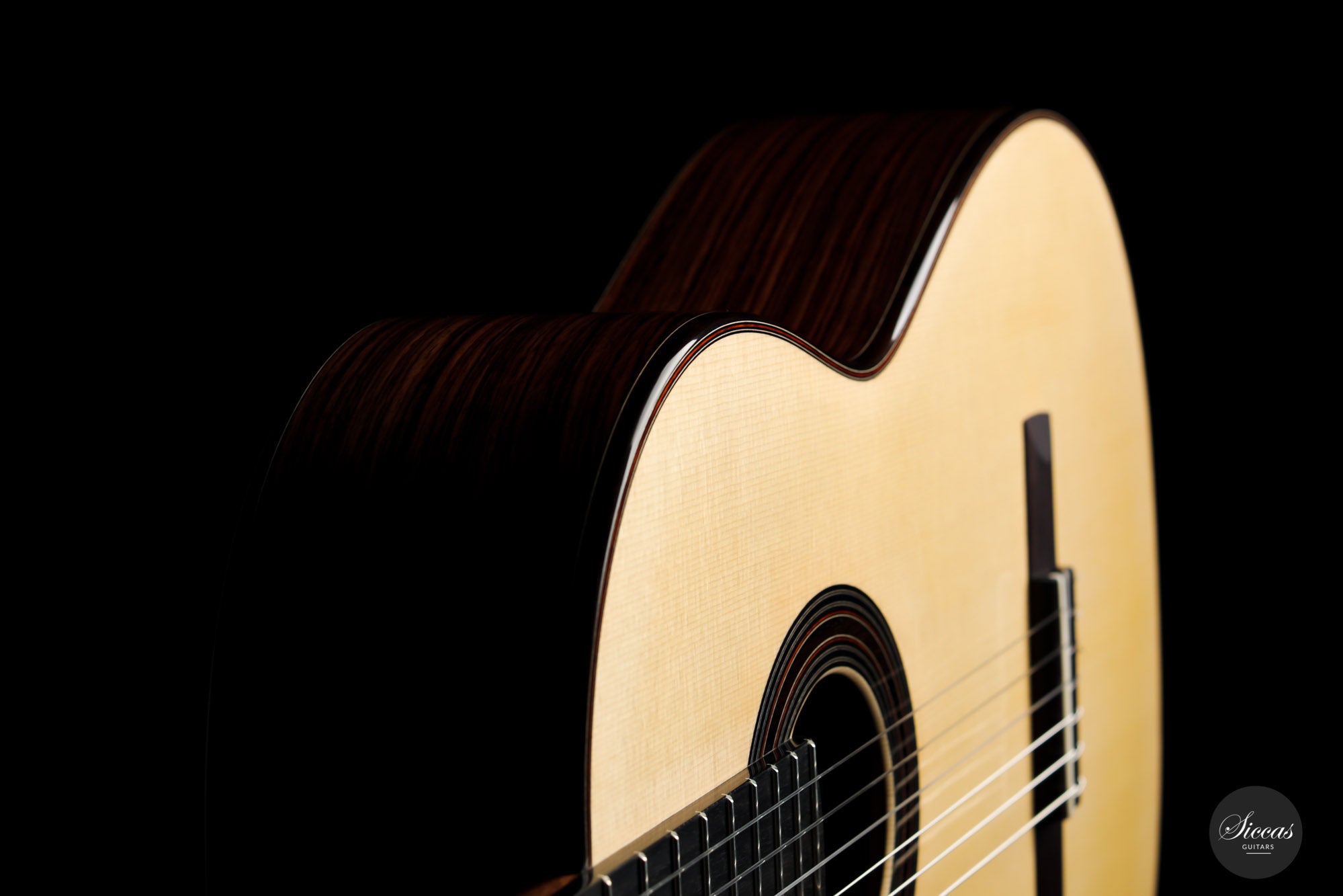 This instrument is a model of balance and elegance. Its flawless and modern design carries a clear idea of Dennis Tolz's commitment to intelligent and refined lutherie. The double-top soundboard made of an outside spruce layer and cedar on the inside is reinforced with a traditional lightweight fan bracing. This combination gives to this instrument a fantastic projection and yet a warm, precise and charming tone. The playing experience is lovely as the neck shape makes playing effortless, and the set up offers extreme comfort. We are pleased to present a guitar from Dennis and firmly believe that this guitar will seduce any passionate guitarist thanks to its pure, rich and voluminous sound.
