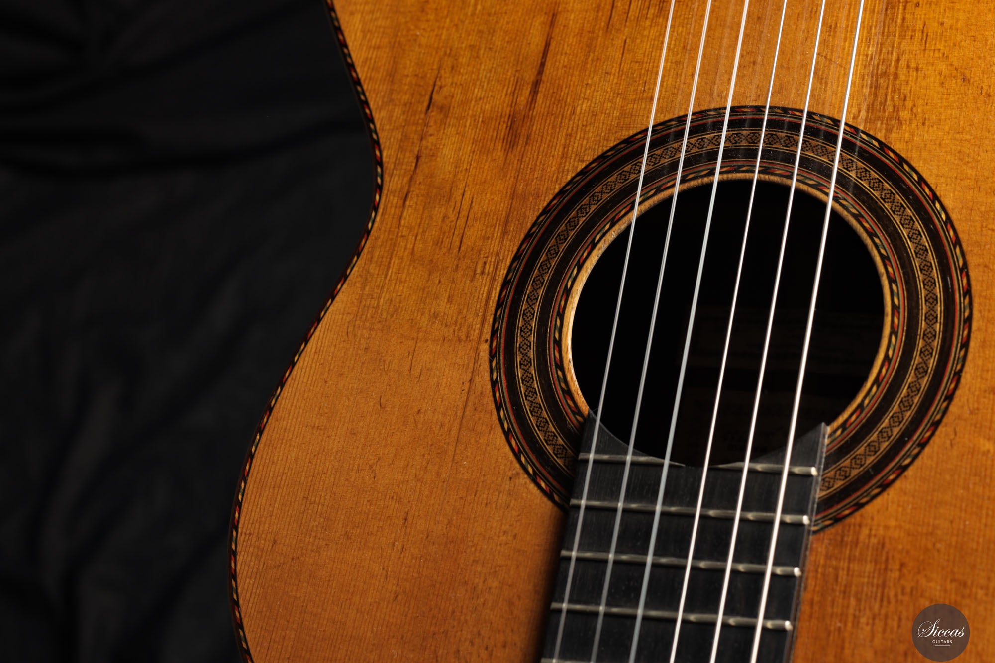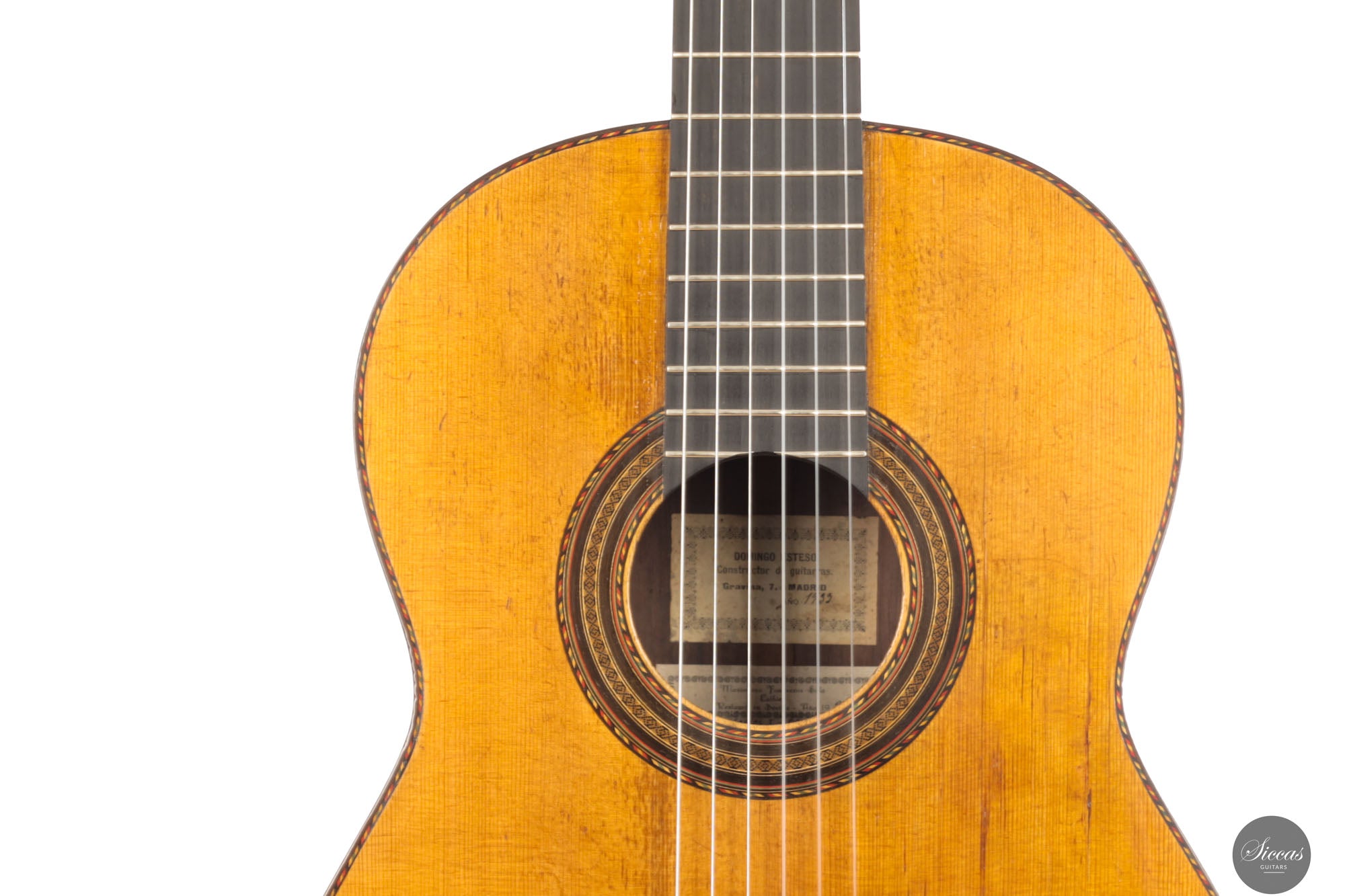 Domingo Esteso López, born in San Clemente in 1882, was one of the most influential luthiers of the early 20th century. In the 1890s, he began his apprenticeship in the workshop of Manuel Ramirez in Madrid, working alongside other renowned luthiers such as Modesto Borreguero and Santos Hernandez. Following the death of Manuel Ramirez in 1916, Domingo worked for Ramirez’s widow before establishing his own workshop in 1917 on Calle Gravina in Madrid. In 1926, his nephew Faustino Conde joined the workshop, followed by his brothers Mariano Conde in 1929 and eventually Julio Conde. After Domingo Esteso’s passing in 1937, the three brothers continued crafting guitars under the name “Vda y Sobrinos de Domingo Esteso,” ensuring the legacy of his craft.About the guitar