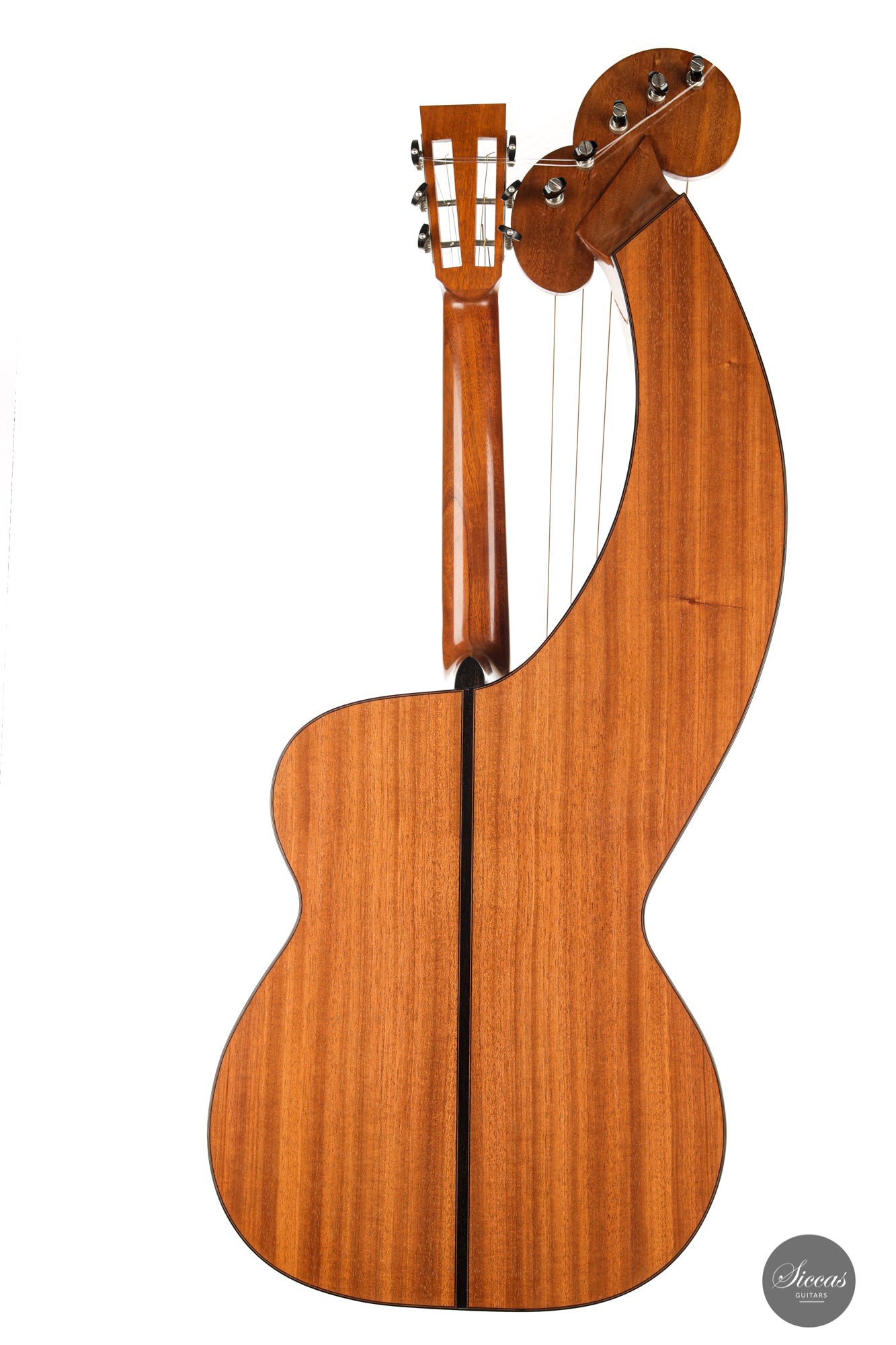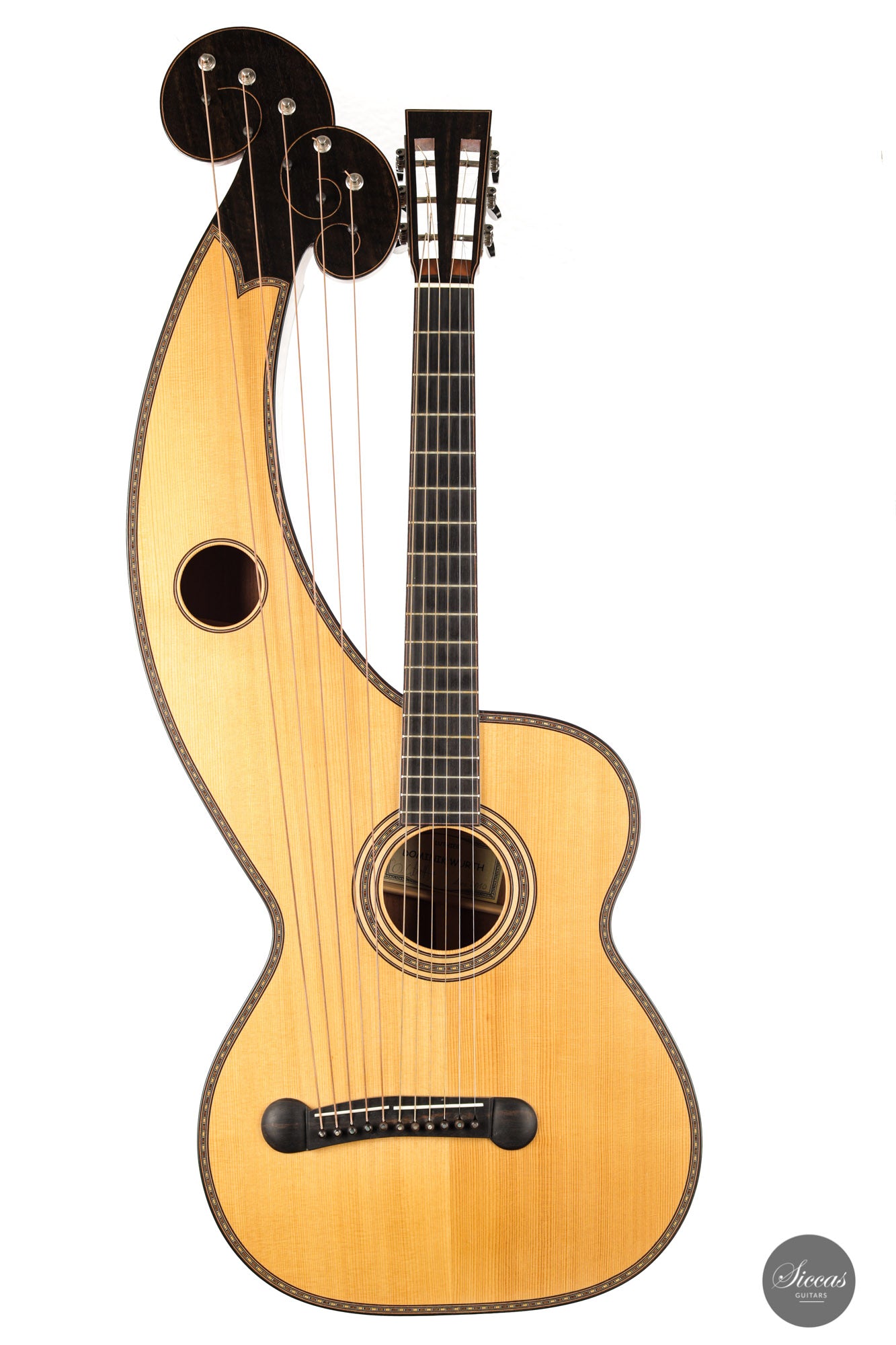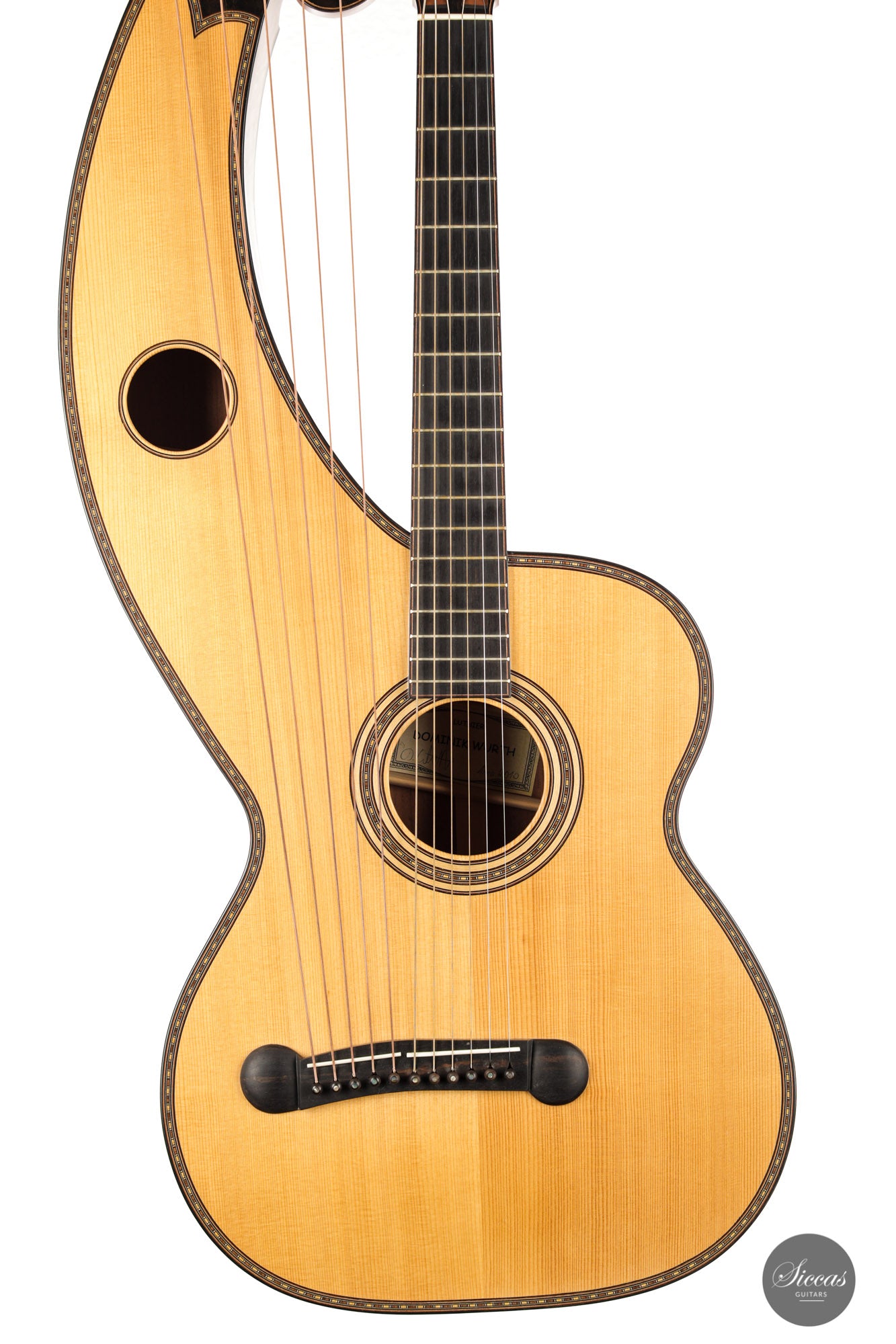Diese spezielle Harfengitarre basiert auf der Dyer Harfengitarre Typ 2 der Gebrüder Larson, einer Stahlsaitengitarre mit fünf zusätzlichen Bordunsaiten. W.J. Dyer wurde 1841 in London geboren und kam 1869 mit seiner Familie nach Amerika. Er arbeitete zunächst als Musiklehrer und eröffnete später zusammen mit seinem Bruder ein Musikgeschäft. Das Geschäft florierte , so dass die Firma Dyer an Größe zunahm. Zusammen mit dem Minnesota Conservatory of Music gründete er die erste Musikschule des Landes, stellte Klassenräume für Orchesterproben zur Verfügung und betrieb die Dyer Music Hall, die für kleine Konzertaufführungen genutzt wurde. Wahrscheinlich verkaufte er vor allem Klaviere und Orgeln, aber auch die gesamte Palette an Orchesterinstrumenten und zahlreiches Zubehör womit er 1891 einen Firmenwert von 500.000 Dollar erreichte.