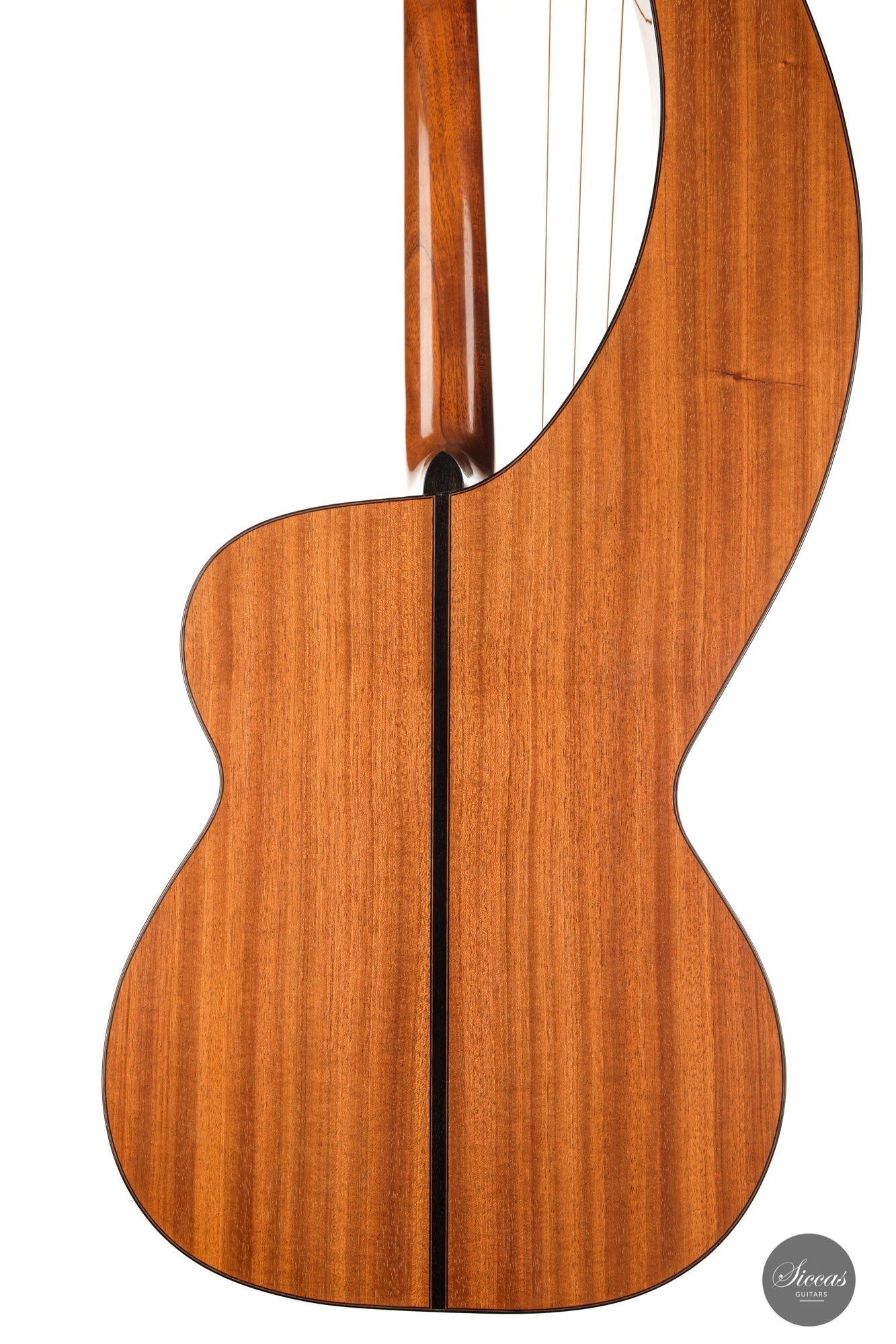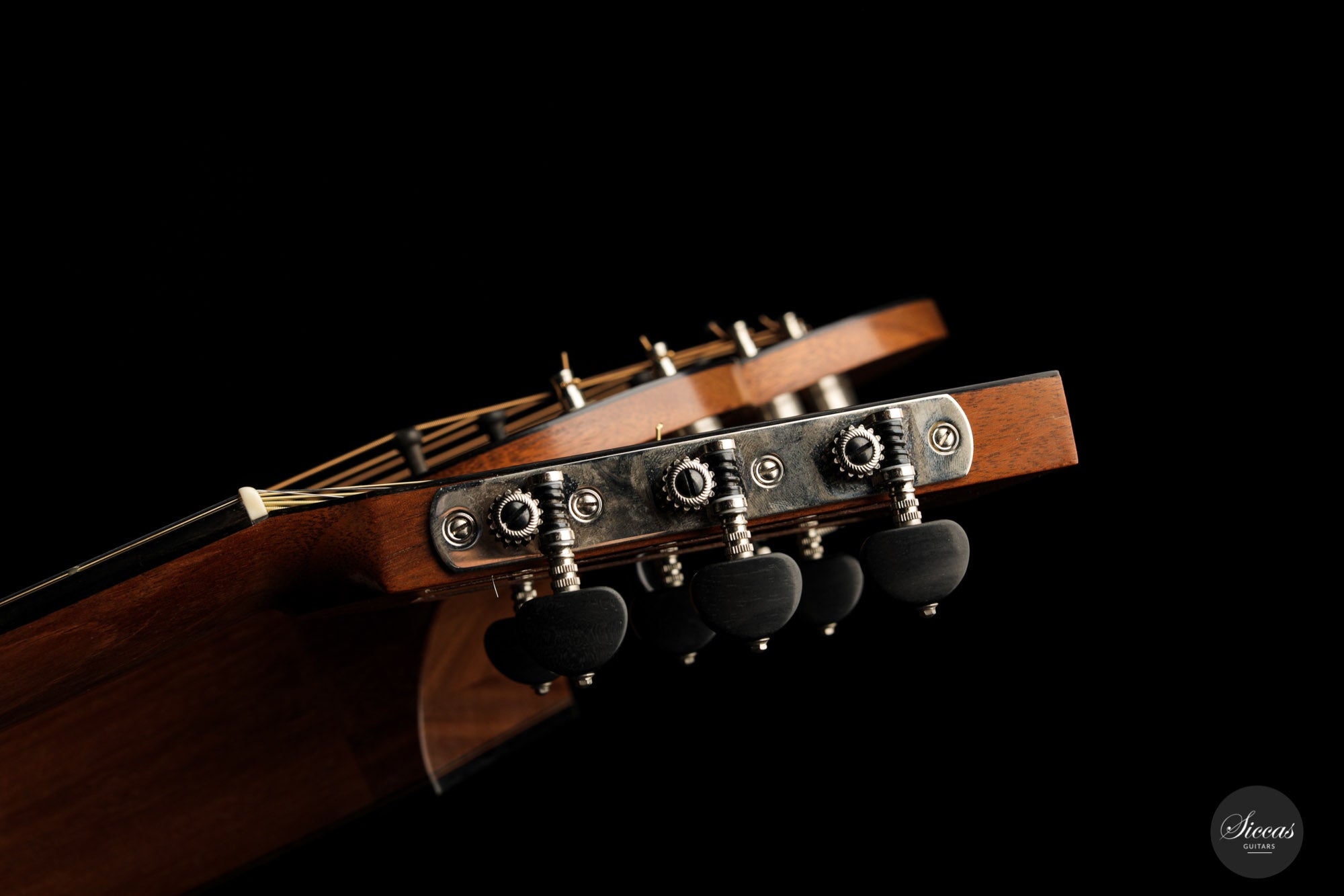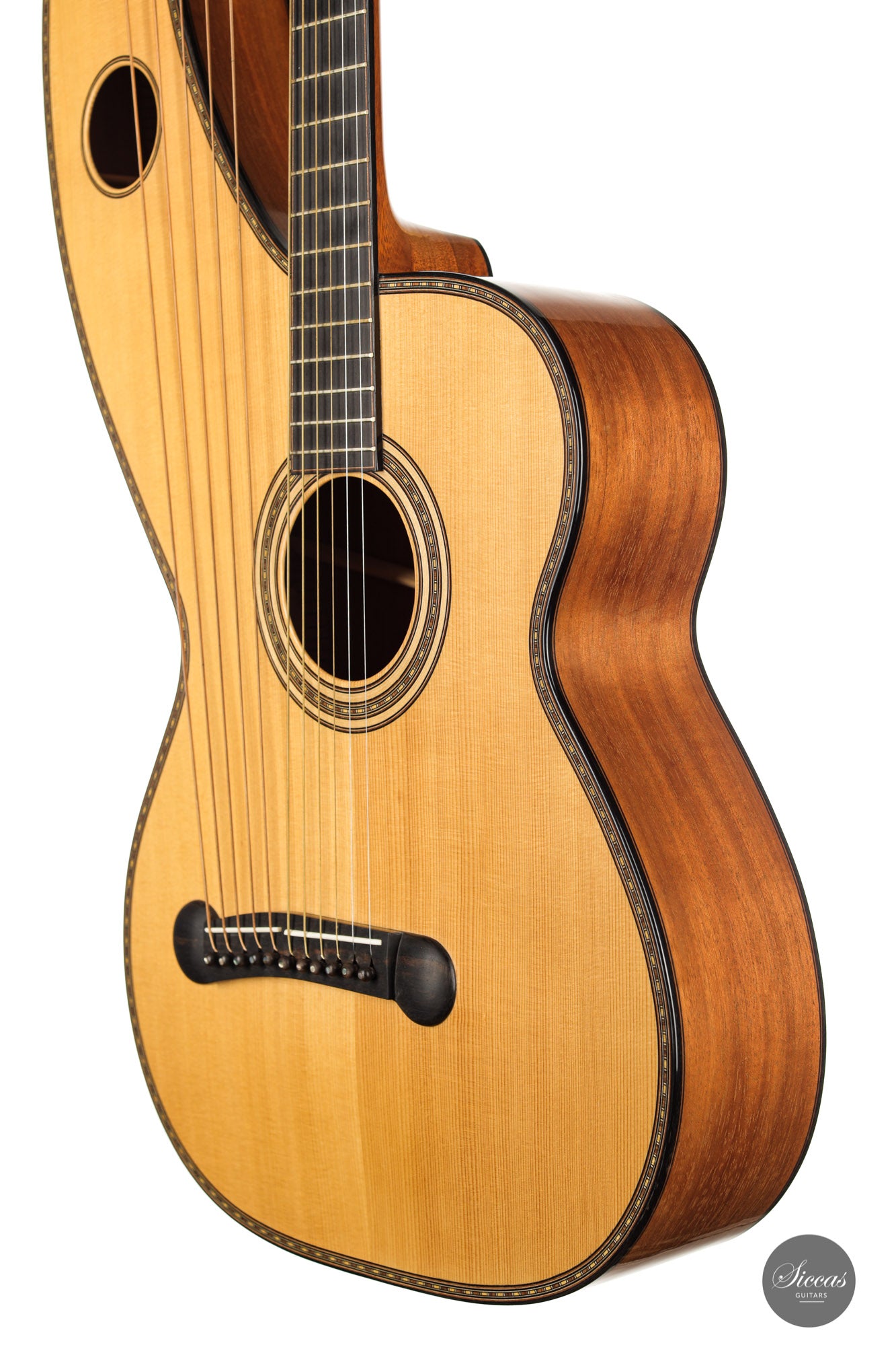 Der Klang ist einfach erstaunlich, mit kräftigen Diskantstimmen und einem nicht enden wollenden Sustain, gepaart mit den tiefsten Bässen, die man sich auf einer stahlsaitigen Gitarre wünschen kann. Es ist eine wahre Freude, auf dieser Harfengitarre zu spielen, auch weil diese Modelle besonders in Europa nicht leicht zu finden sind. Handwerklich gesehen ist diese Harfengitarre von Domink Wurth auf höchstem Niveau, auch in Anbetracht der recht kniffligen Konstruktion mit all den Bindings und Intarsien. Der Hall-Effekt, der durch die zusätzlichen Bässe erzeugt wird ist sehr inspirierend, und es fällt einem fast schwer, dieses wundervolle Instrument aus der Hand zu legen.