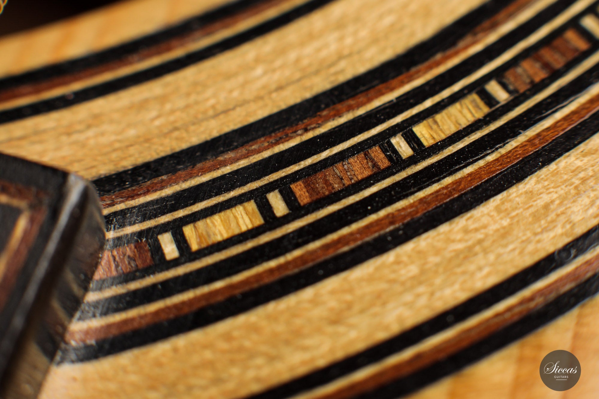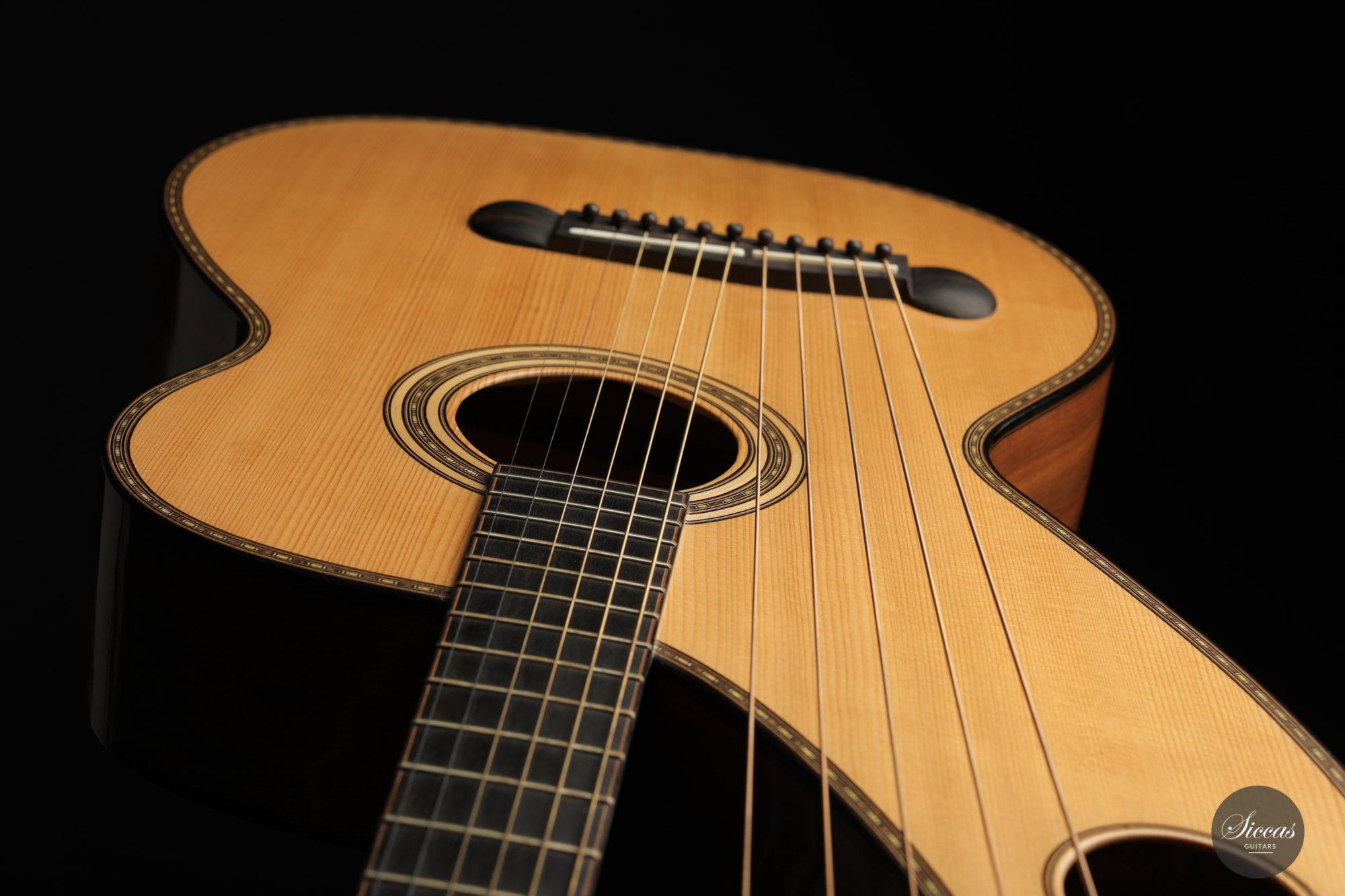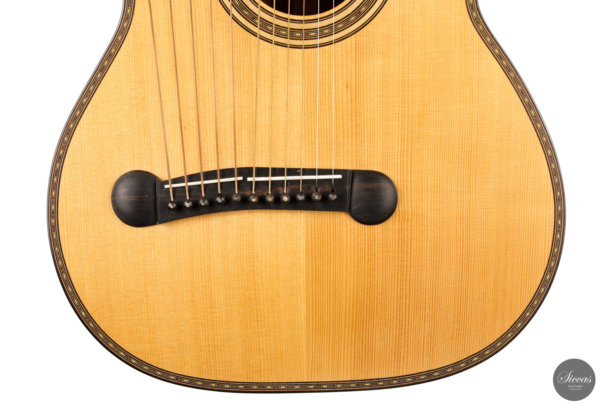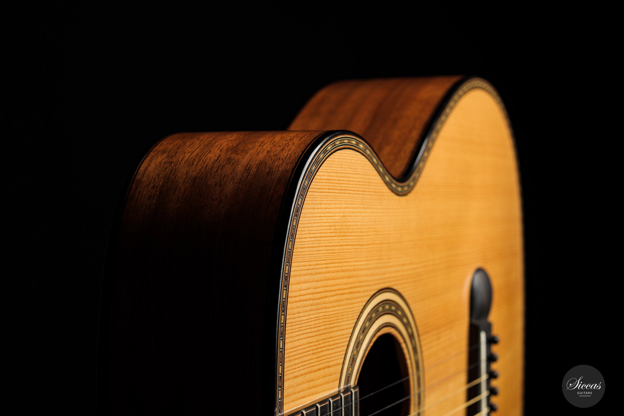 Der Klang ist einfach erstaunlich, mit kräftigen Diskantstimmen und einem nicht enden wollenden Sustain, gepaart mit den tiefsten Bässen, die man sich auf einer stahlsaitigen Gitarre wünschen kann. Es ist eine wahre Freude, auf dieser Harfengitarre zu spielen, auch weil diese Modelle besonders in Europa nicht leicht zu finden sind. Handwerklich gesehen ist diese Harfengitarre von Domink Wurth auf höchstem Niveau, auch in Anbetracht der recht kniffligen Konstruktion mit all den Bindings und Intarsien. Der Hall-Effekt, der durch die zusätzlichen Bässe erzeugt wird ist sehr inspirierend, und es fällt einem fast schwer, dieses wundervolle Instrument aus der Hand zu legen.