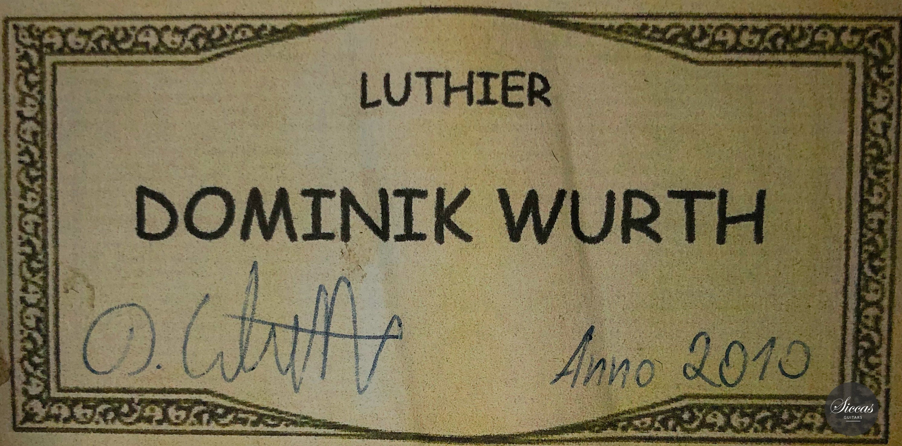 Dominik Wurth wuchs in einem kleinen ländlichen Dorf am Fuße des Schwarzwaldes in Deutschland auf. Mit Anfang zwanzig entdeckte er die Gitarre. Nach einer gewissen Zeit und technischen Fortschritten wurde er mit dem Klang seiner Anfängergitarre unzufrieden und brauchte ein besseres Instrument. Um einen tieferen Einblick in die Qualitätsunterschiede zu erhalten und um besser vorbereitet zu sein, sich das richtige Instrument zu kaufen, begann er mit der Lektüre über den Gitarrenbau. Nachdem er mehrere Bücher gelesen hatte, packte ihn die Idee, keine Gitarre zu kaufen, sondern eine zu bauen, und nach einer sehr langen schweren Zerreißprobe stellte er seine erste Gitarre fertig. Um seinem eingeschlagenen Weg eine Richtung zu geben, immatrikulierte er sich an der weltweit einzigen Hochschule für Streichinstrumente in Zwickau und schloss sein Studium 2012 ab. Während dieser Zeit erhielt er den Titel „Meister des Zupfinstrumentenmacherhandwerkes“.