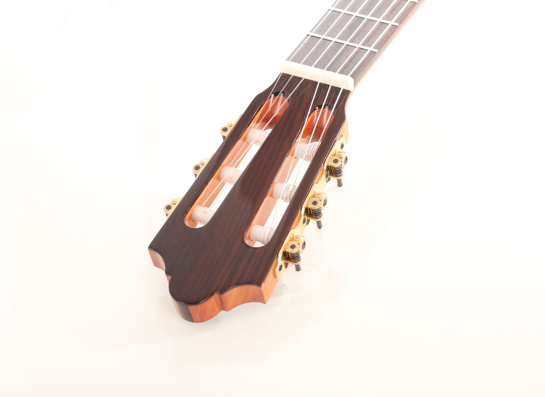 The classical guitar, with its soft nylon strings and characteristic timbre, has become a symbol of chamber music, Spanish tradition, and concert repertoire. Its modern form was shaped by Antonio de Torres in the 19th century, setting the standard for the body, fan bracing, and the 65-centimeter scale length that are still used today. Instruments in this category open up a rich palette from the refined Romantic miniatures of Tárrega to the majestic concertos of Rodrigo. Here you will find guitars that preserve historical continuity and at the same time inspire new interpretations.Look all products of the collection -