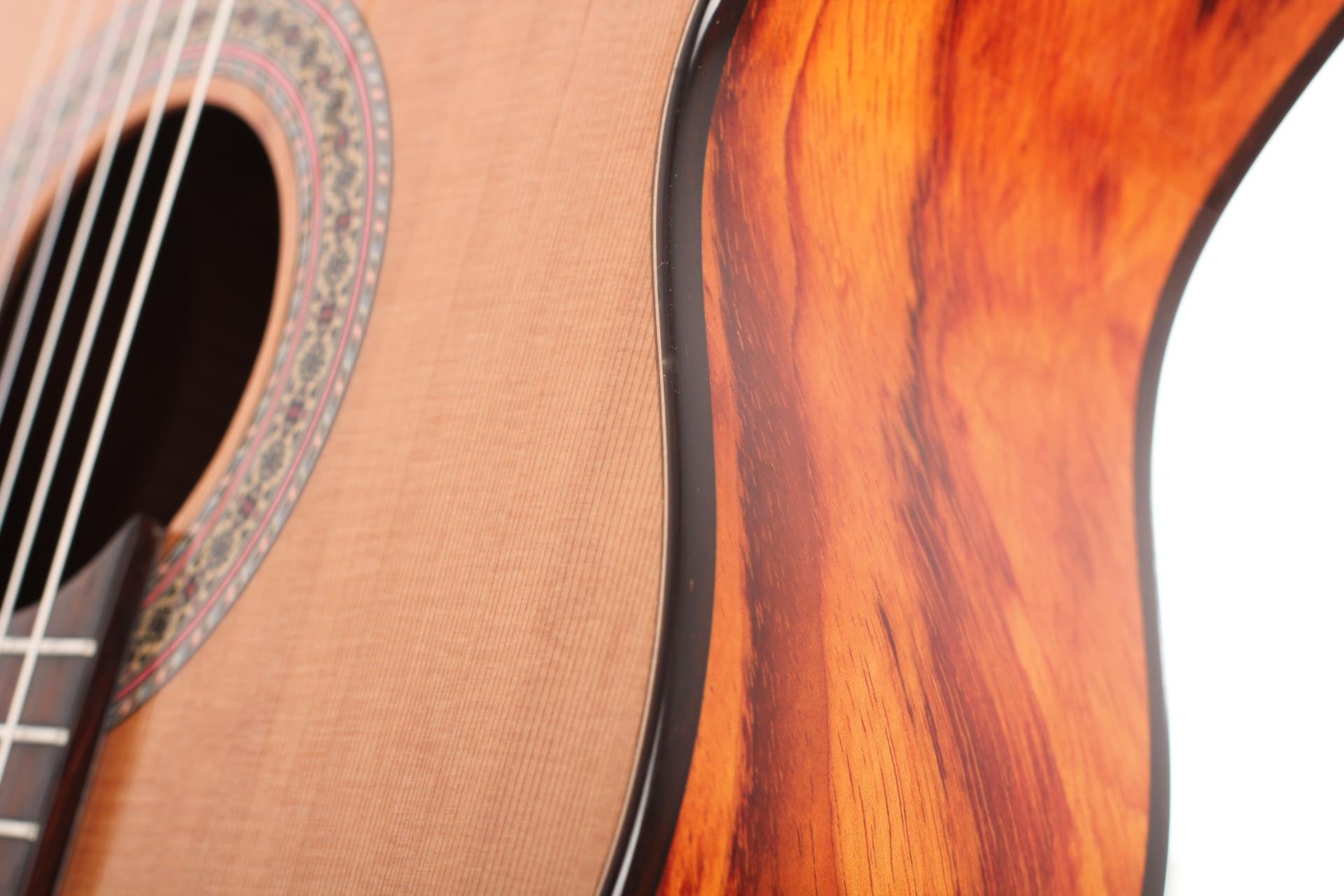Price: 5.990 €Sale price 5.990 € Price:Unit price / per Tax free (0% DE)0 €Save: -5.990 €Luthier: Elvis PajaresConstruction Year: 2025Construction Type: Double TopTop: CedarBack and Sides: Indian rosewoodSoundboard Finish: French polishBody Finish: French polishAir Body Frequency: F / F sharpWeight (g): 1415Tuner: Kris BarnettCondition: New -