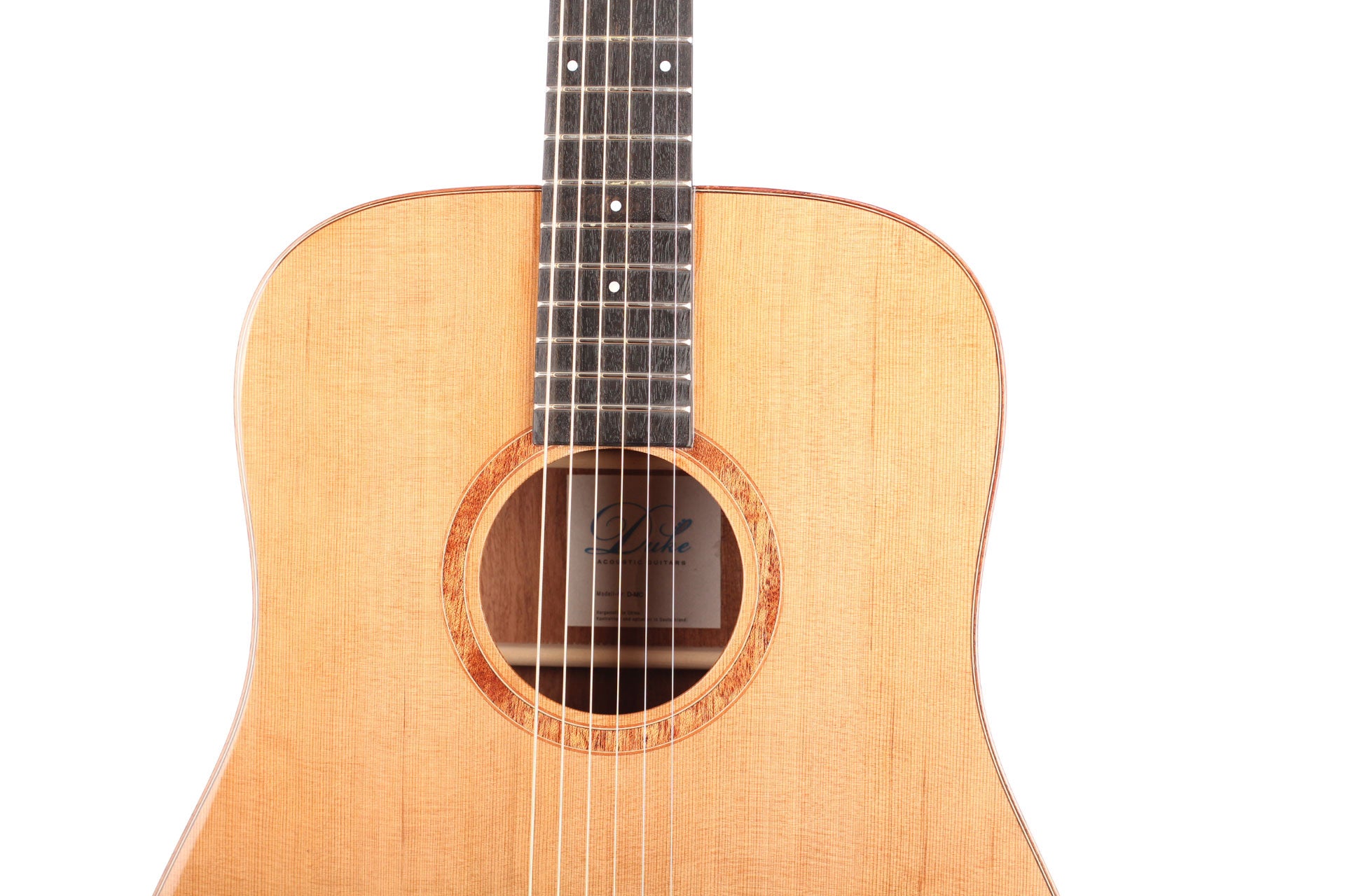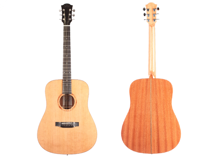 This Duke Dreadnought has an exceptional quality. It has a very powerful and equilibrated sound. This guitar is perfect for beginners and also professional players. The Duke D-MC guitar has a solid spruce top and back and sides that are made of mahogany. The guitars are refined with a high gloss finish. Included is a gig-bag by Duke.
