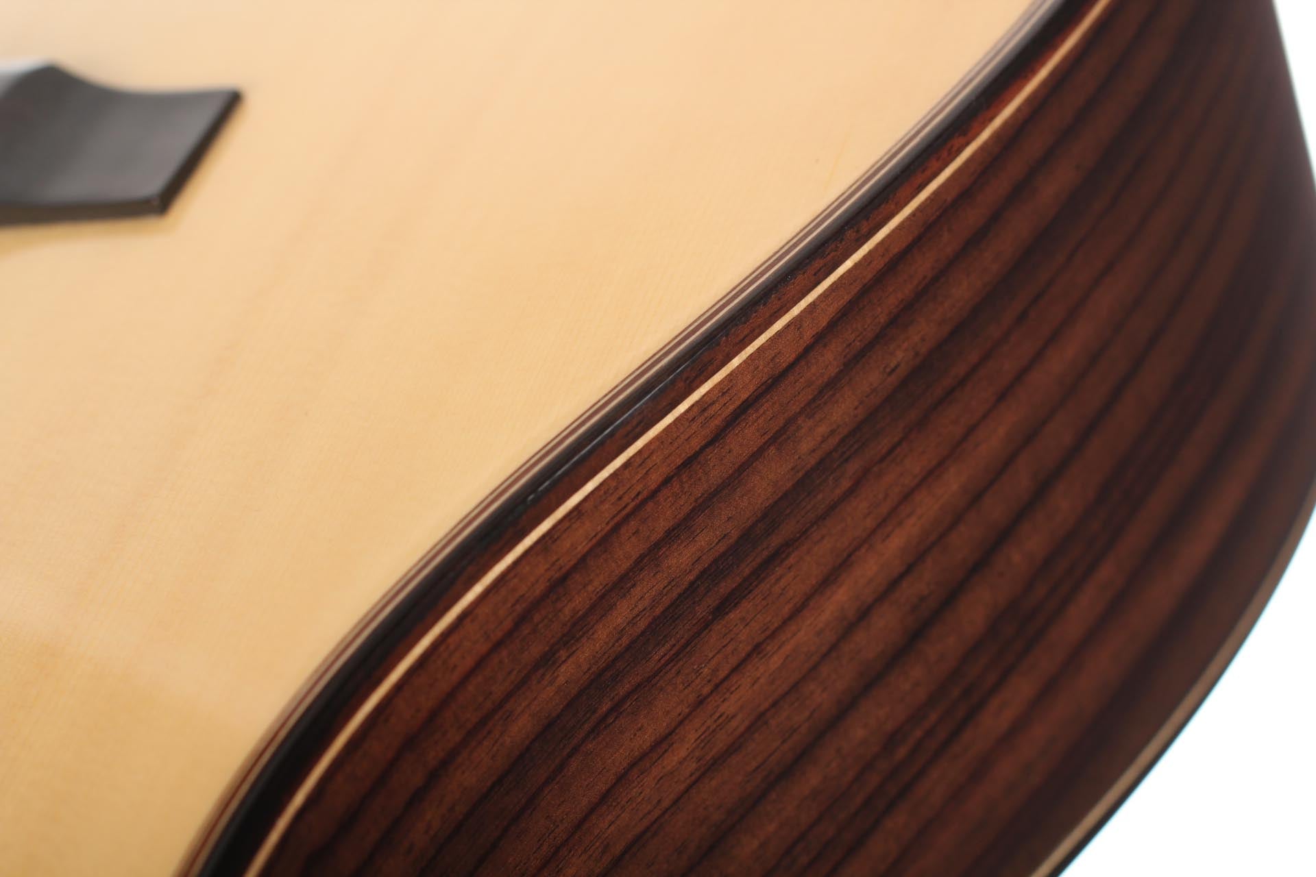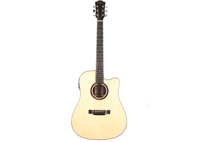 This Duke Dreadnought has an exceptional quality. It has a very powerful and equilibrated sound. This guitar is perfect for beginners and also professional players. The Duke D-PF-Cut has as solid spruce top and back and sides that are made of Indian rosewood. The guitars are refined with a high gloss finish. Included is a gig-bag by Duke.