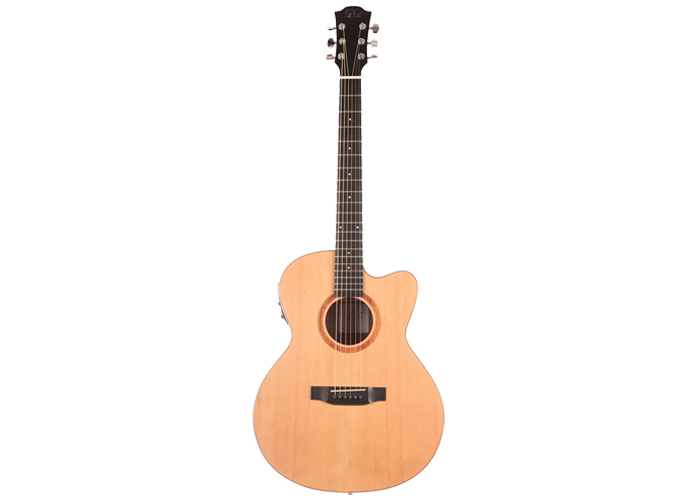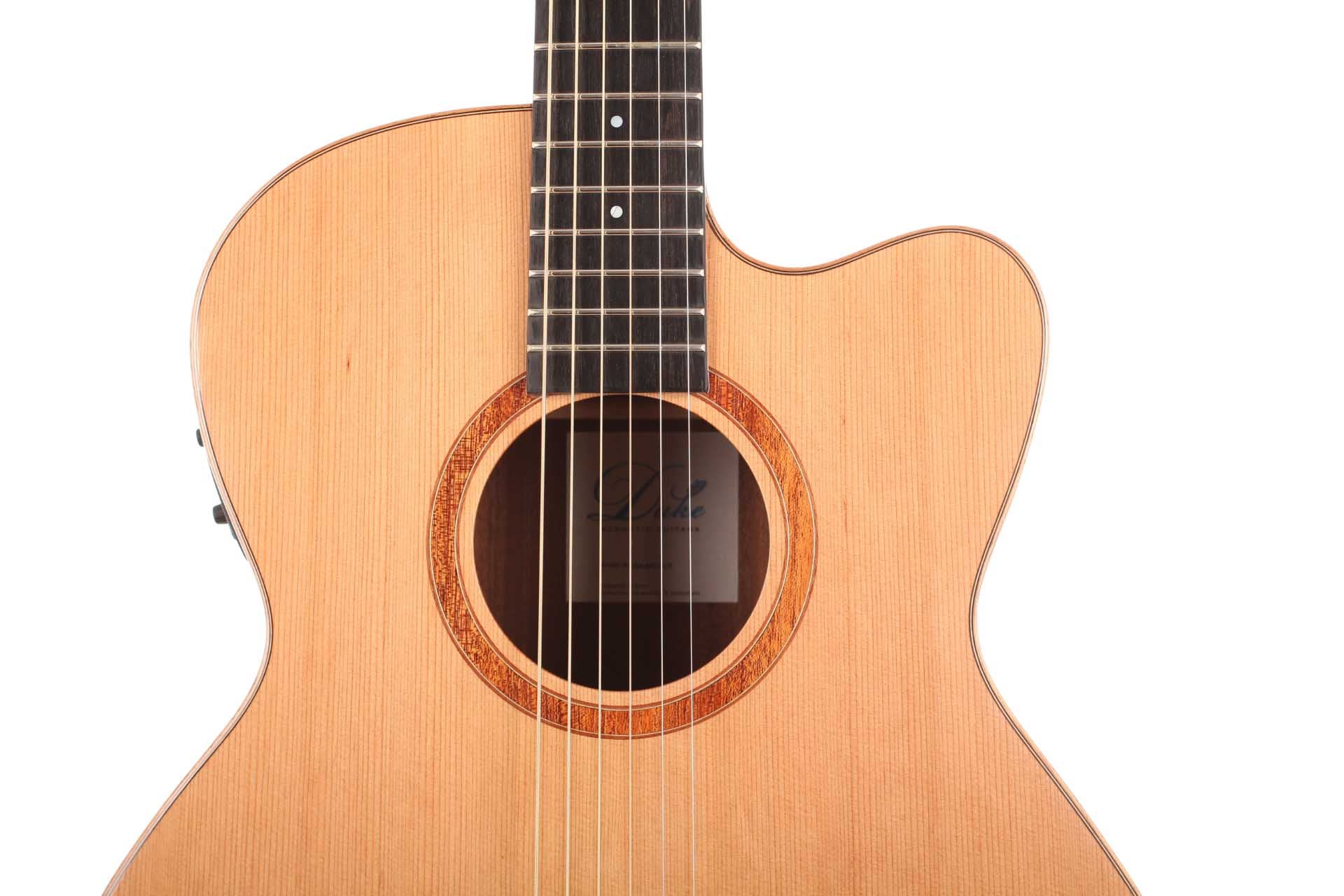This Duke Grand Auditorium guitar has an exceptional quality. It has a very powerfull and equilibrated sound. This guitar is perfect for beginners and also professional players. The Duke Grand Auditorium has as solid cedar top and back and sides are laminated with mahogany. The neck is made of cedro. The guitars are refined with a high gloss finish. Included is a gig-bag by Duke.