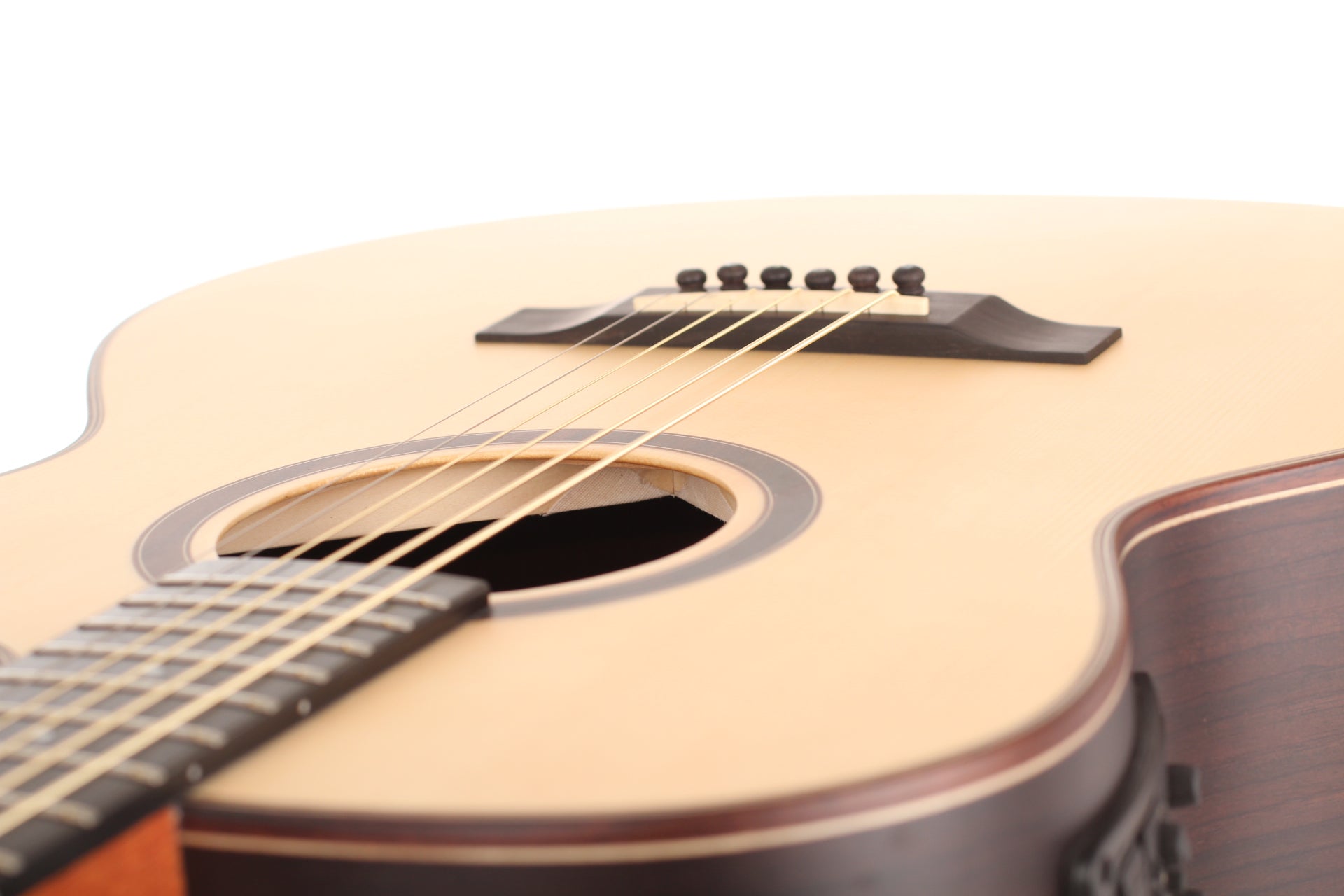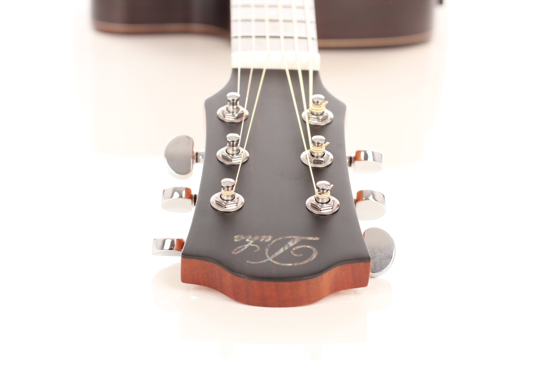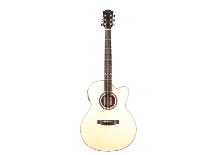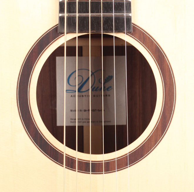 This Duke Grand Auditorium Satin guitar has an exceptional quality. It has a very powerful and equilibrated sound. This guitar is perfect for beginners and also professional players. The Duke Grand Auditorium Satin has as solid spruce top and back and sides that are made of Indian rosewood. The neck is made of cedro. The guitar is refined with a high satin finish. Included is a gig-bag by Duke.