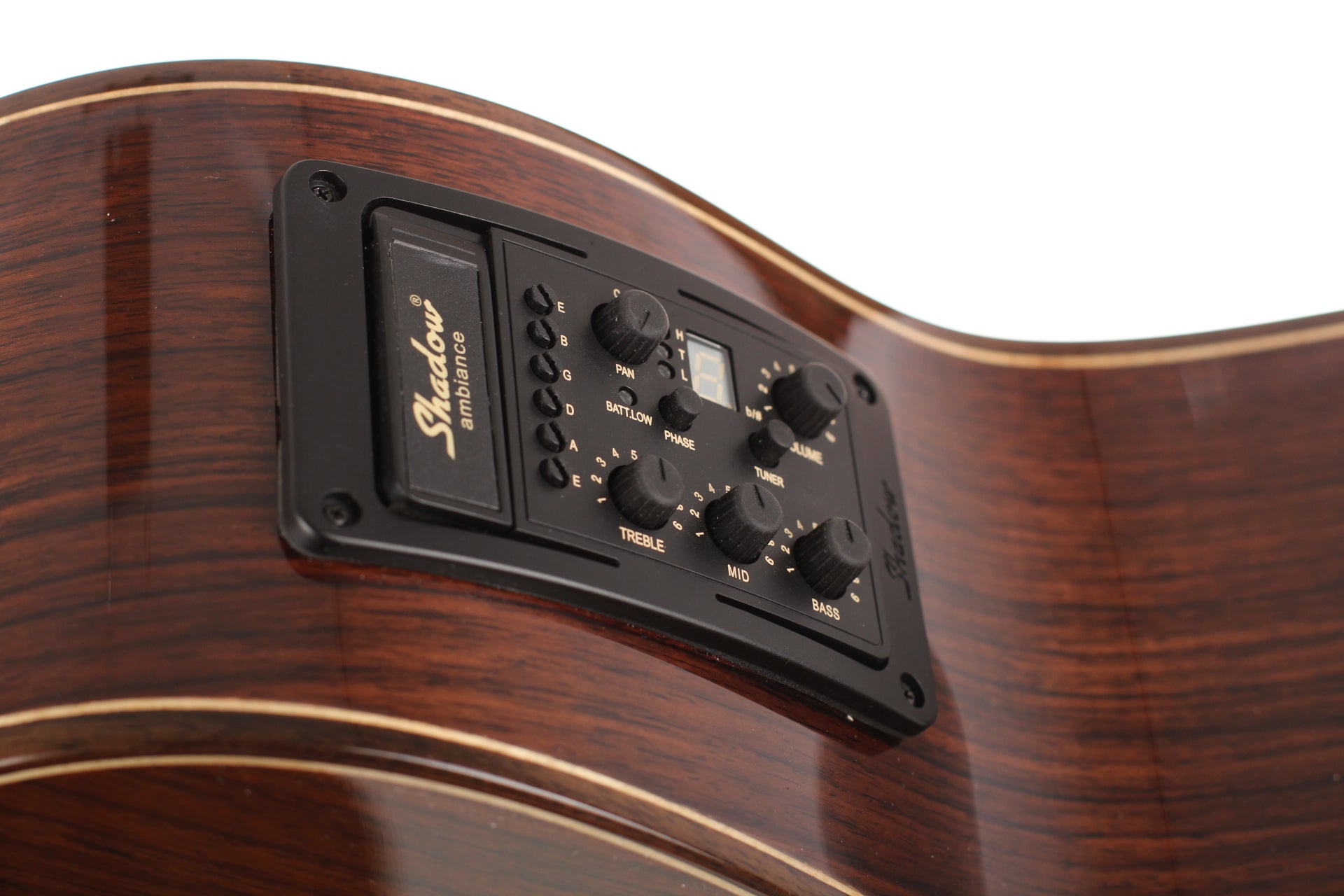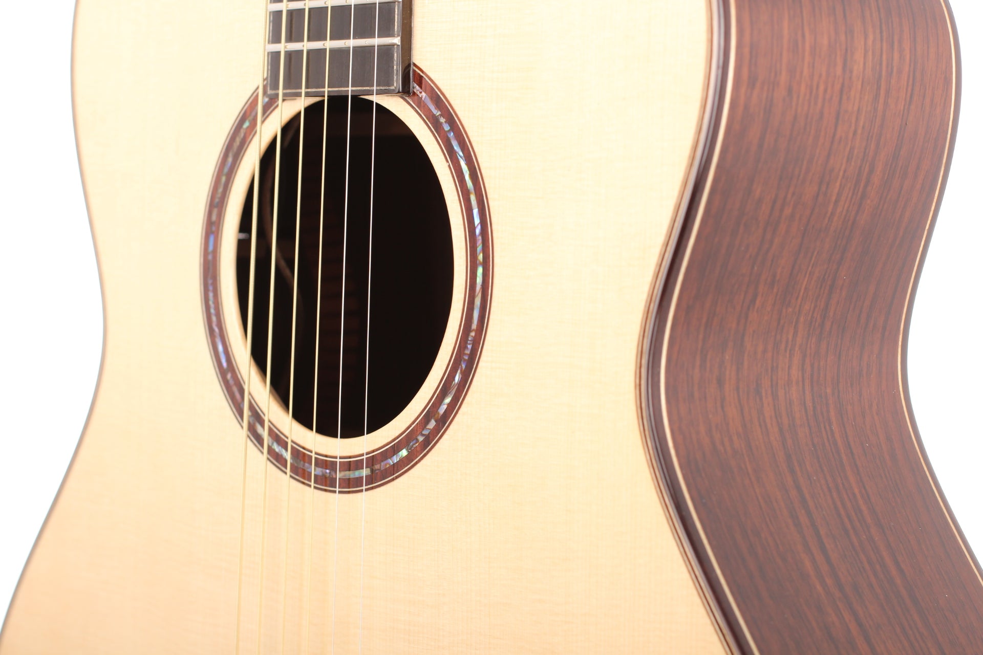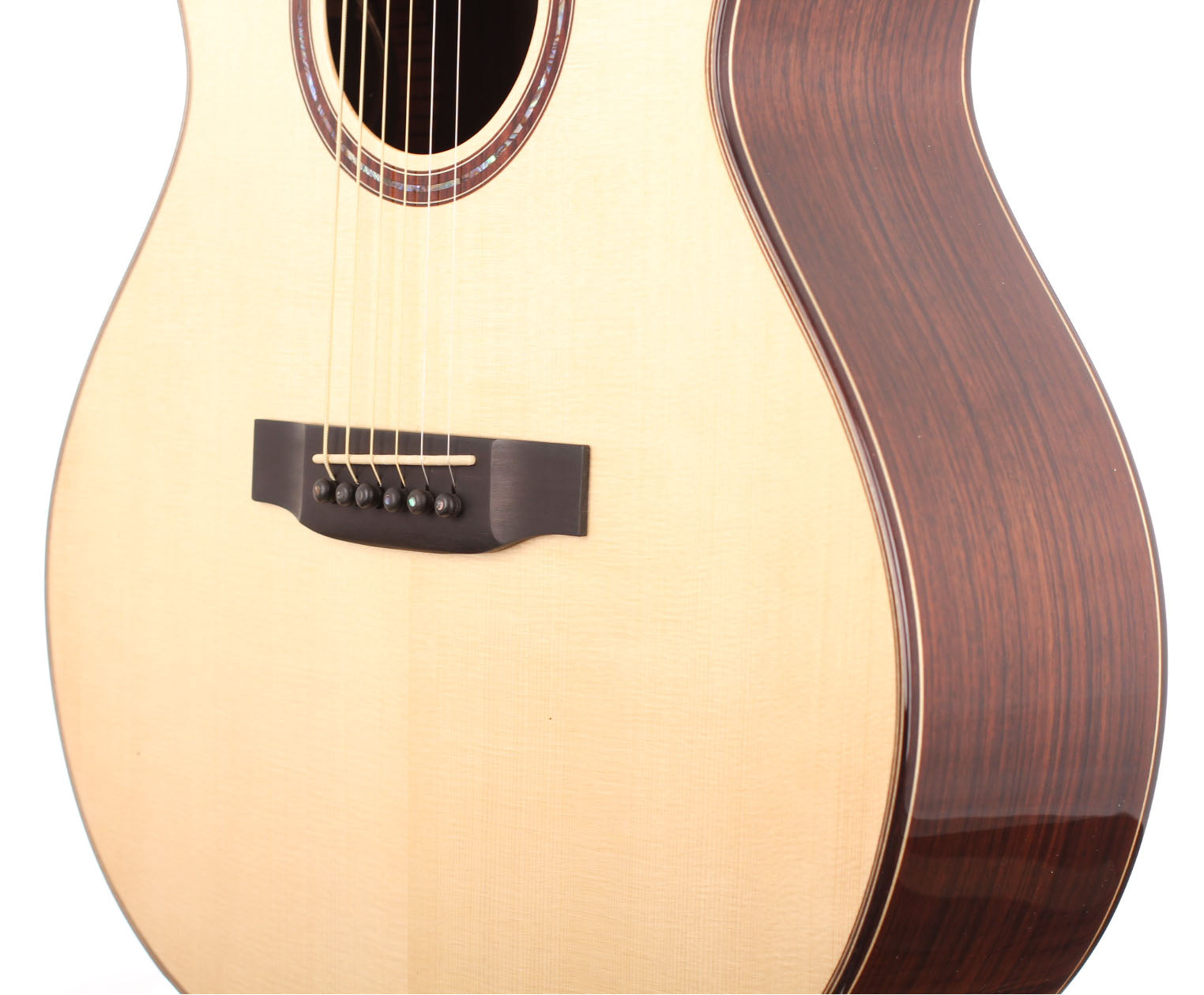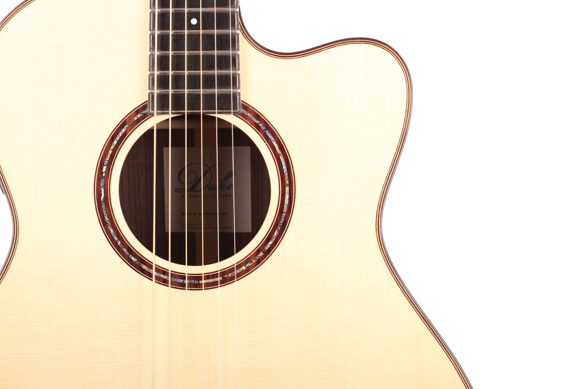 This Duke Grand Auditorium guitar has an exceptional quality. It has a very powerful and equilibrated sound. This guitar is perfect for beginners and also professional players. The Duke Grand Auditorium has as solid spruce top and back and sides that are made of Indian rosewood. The neck is made of cedro. The guitars are refined with a high gloss finish. Included is a gig-bag by Duke.