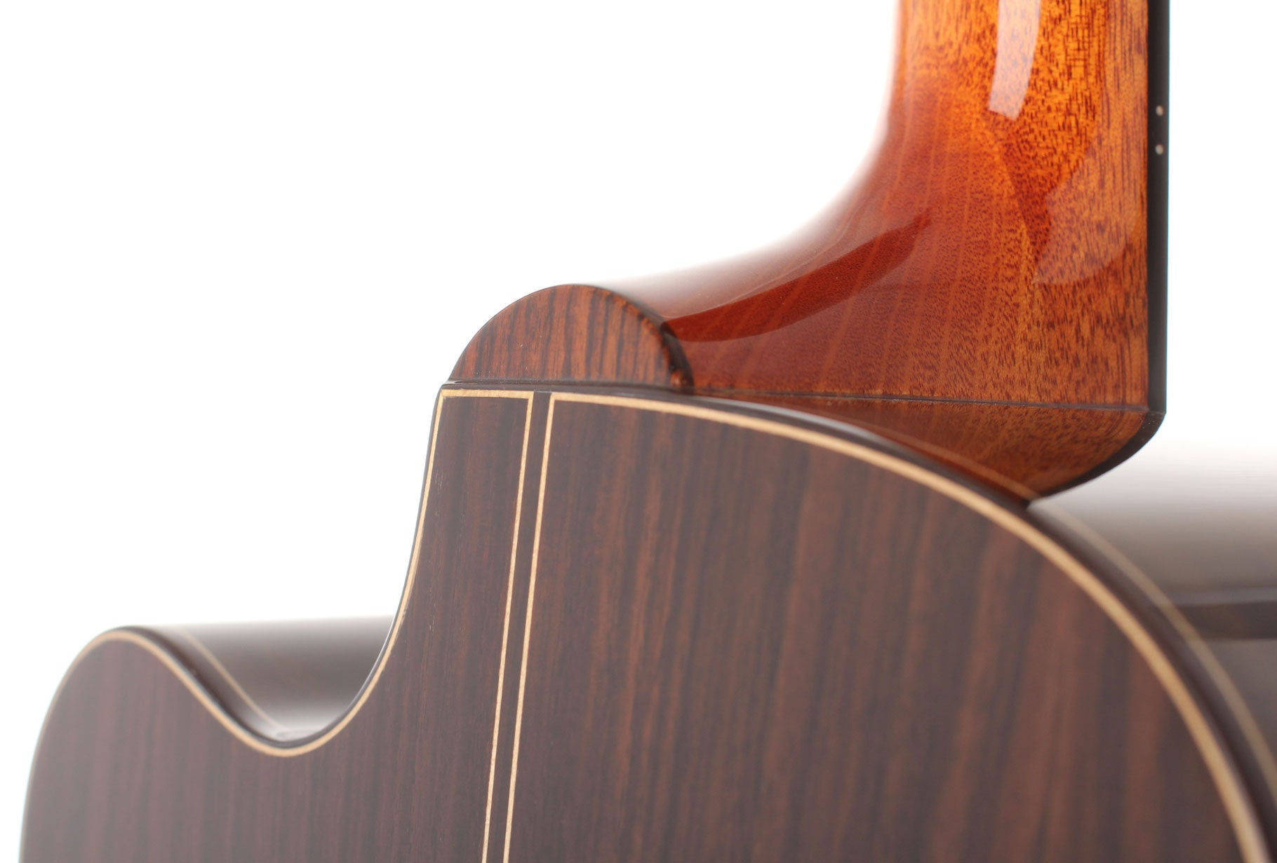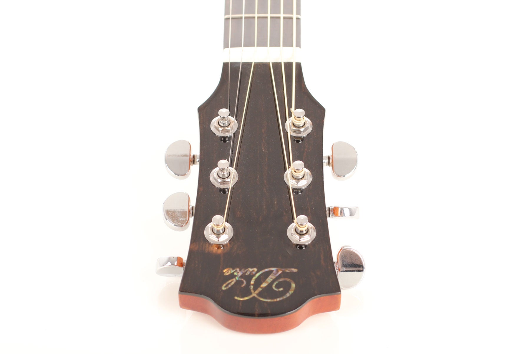 This Duke Grand Auditorium PF Cut guitar has an exceptional quality. It has a very powerful and equilibrated sound. This guitar is perfect for beginners and also professional players. The Duke Grand Auditorium Satin has as solid spruce top and back and sides that are made of Indian rosewood. The neck is made of cedro. The guitar is refined with a high gloss finish. Included is a gig-bag by Duke.
