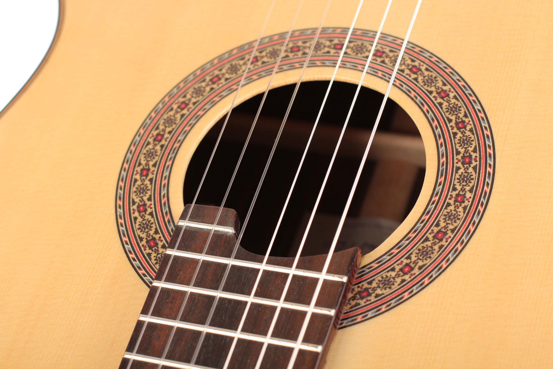 The classical guitar, with its soft nylon strings and characteristic timbre, has become a symbol of chamber music, Spanish tradition, and concert repertoire. Its modern form was shaped by Antonio de Torres in the 19th century, setting the standard for the body, fan bracing, and the 65-centimeter scale length that are still used today. Instruments in this category open up a rich palette from the refined Romantic miniatures of Tárrega to the majestic concertos of Rodrigo. Here you will find guitars that preserve historical continuity and at the same time inspire new interpretations.Look all products of the collection -