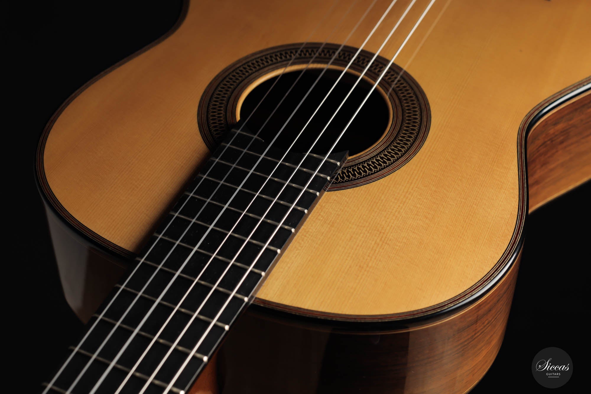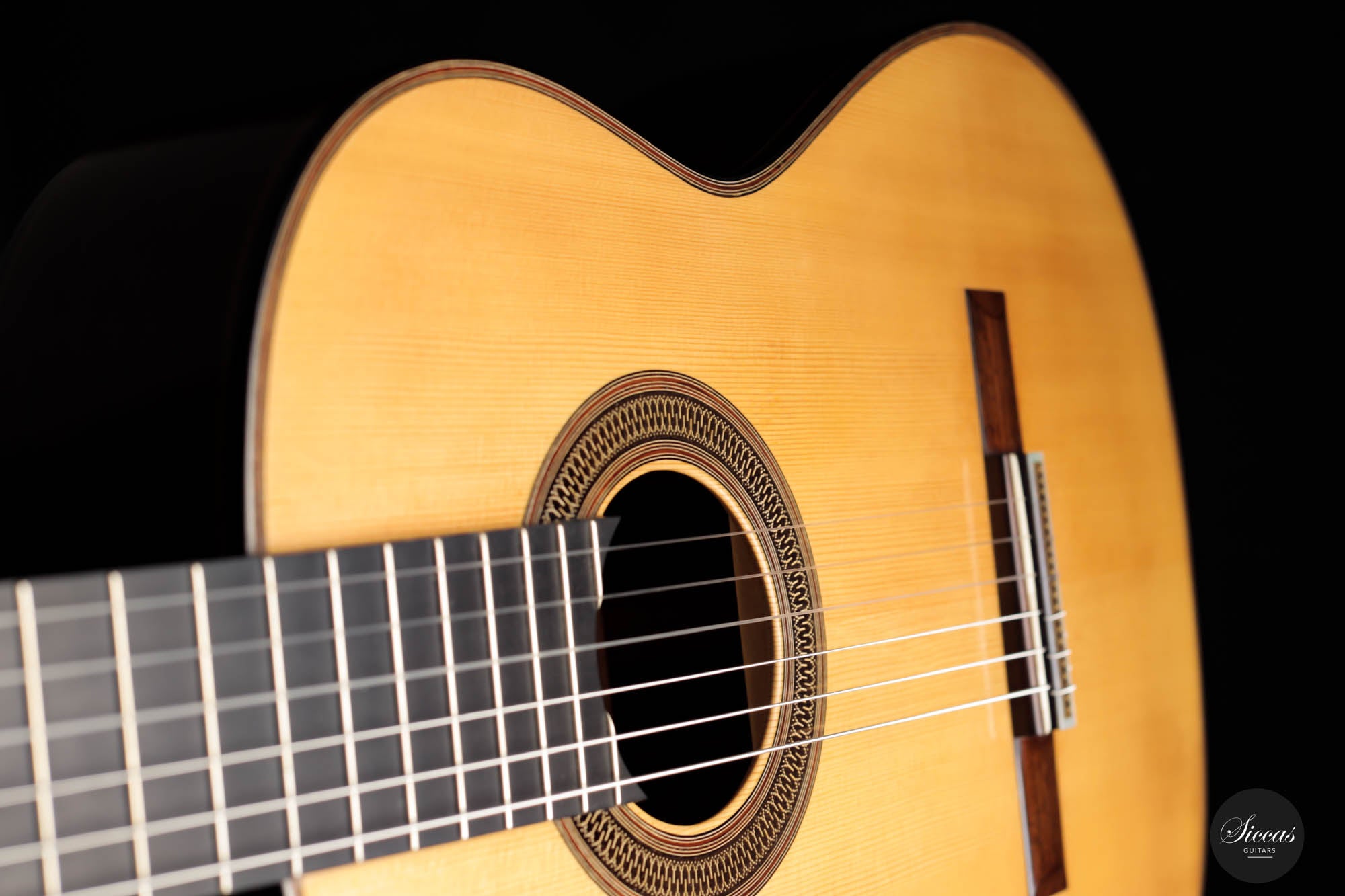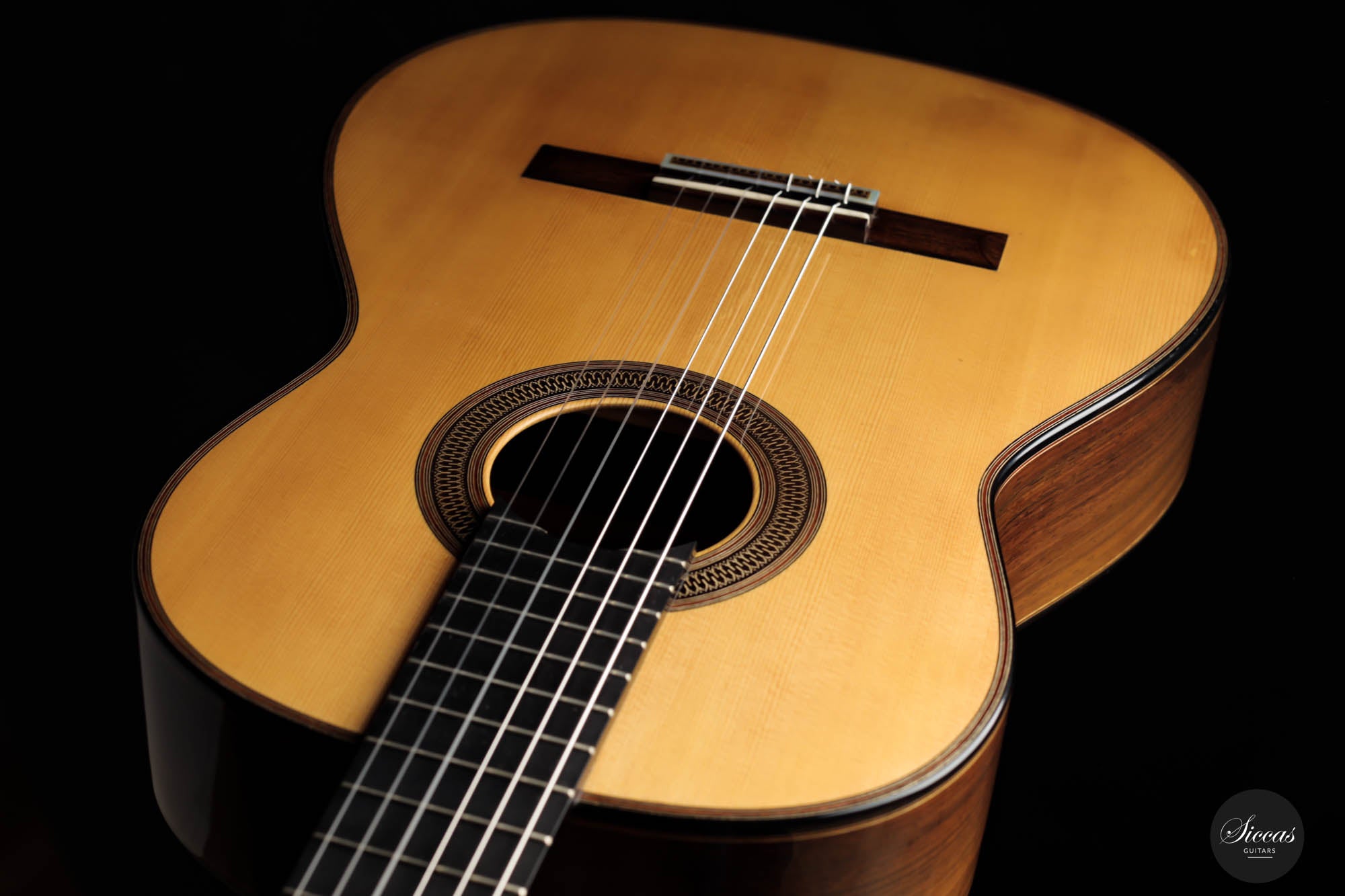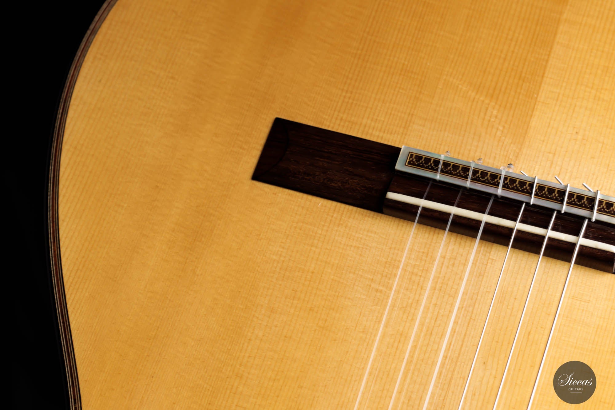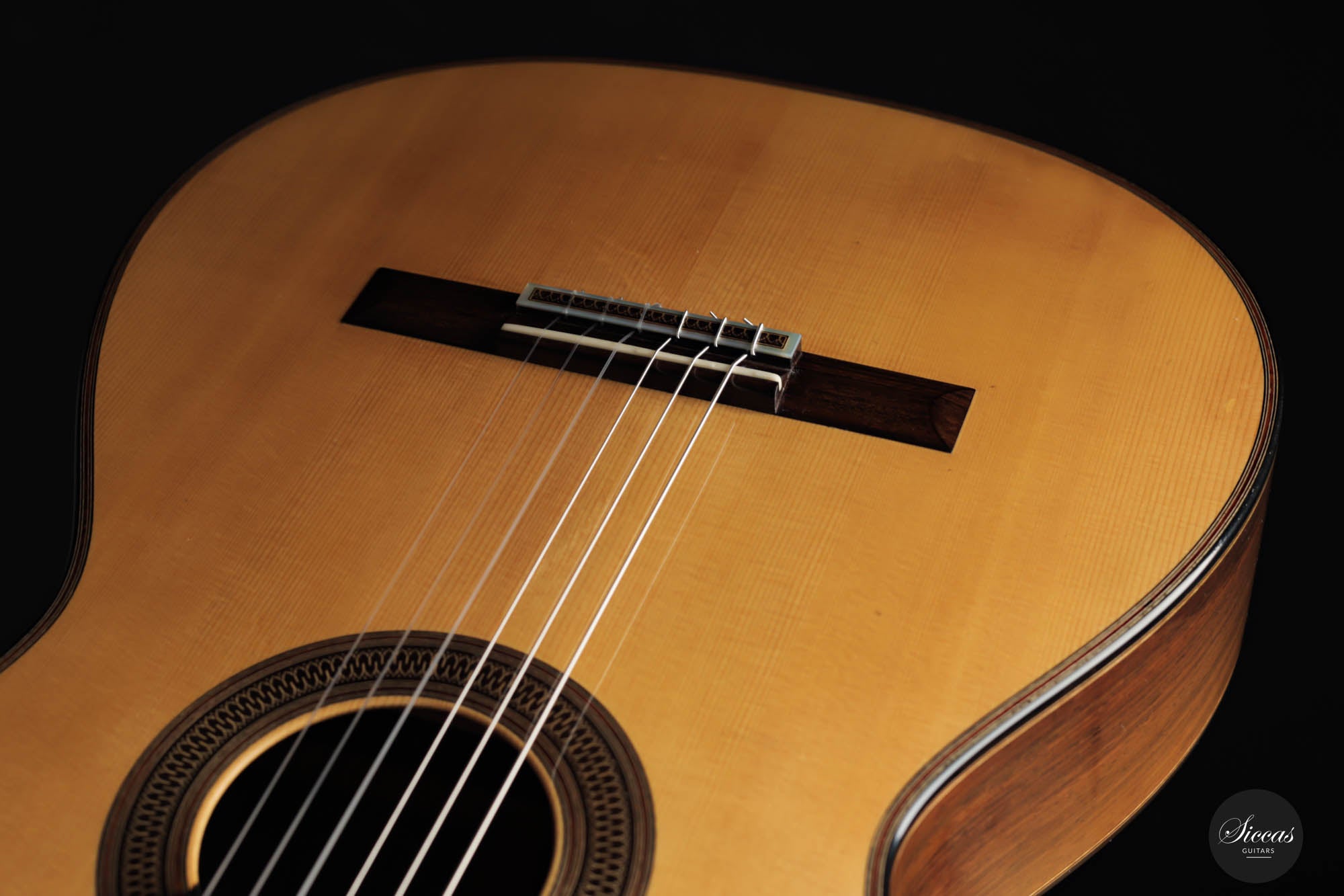 This 2013 Enrico Bottelli guitar is truly a masterpiece, showcasing exquisite craftsmanship and attention to detail, a hallmark of his work. This guitar is heavily inspired by a famous German guitar from 1938, which is evident in its design and construction. The spruce soundboard and meticulous Amazonas rosewood back and sides are breathtakingly beautiful, and their contribution to the guitar's sound is significant. Despite being built in 2013, this guitar is in immaculate condition, a testament to the care and maintenance it has received. This instrument has been lovingly cared for, allowing it to age gracefully and develop a tonal quality that is simply breathtaking. The guitar's crystal-clear trebles and deep, punchy basses are pleasing to the ear and incredibly versatile. In addition to its tonal quality, this Enrico Bottelli guitar offers an endless tonal palette, giving guitarists the freedom to experiment with different playing styles. Whether playing classical or contemporary music, this guitar can adapt to the musician's style and deliver a simply unforgettable sound. Overall, this Enrico Bottelli guitar is a remarkable instrument that combines beauty, craftsmanship, and excellent sound quality. It is a testament to the skill and dedication of Enrico Bottelli and serves as a reminder of the artistry that goes into crafting such exquisite musical instruments. This particular guitar offers a chance to immediately bypass the waiting list and acquire a magnificent instrument. It is a rare opportunity for guitar enthusiasts and collectors to own an important instrument crafted by a master luthier.