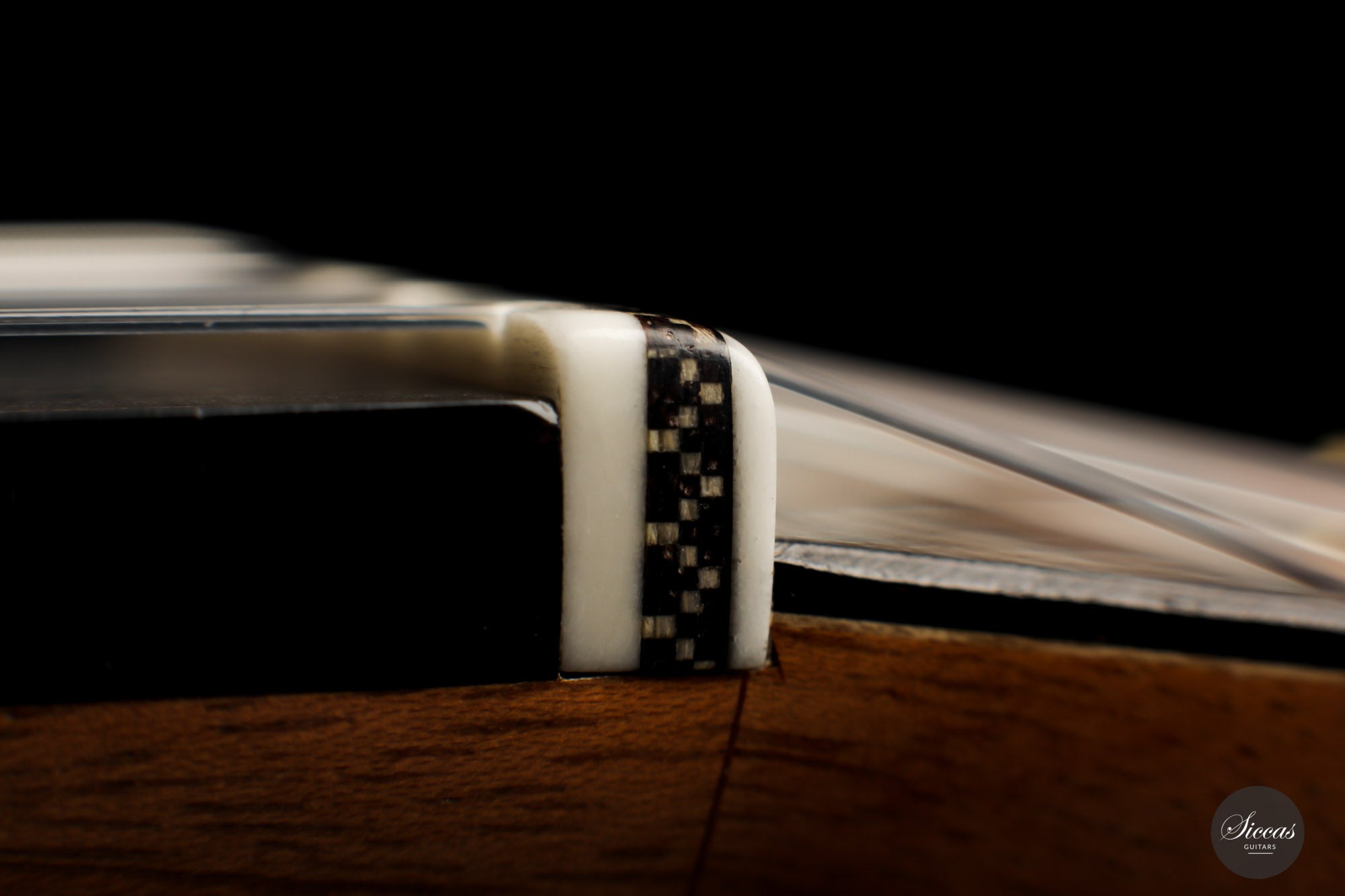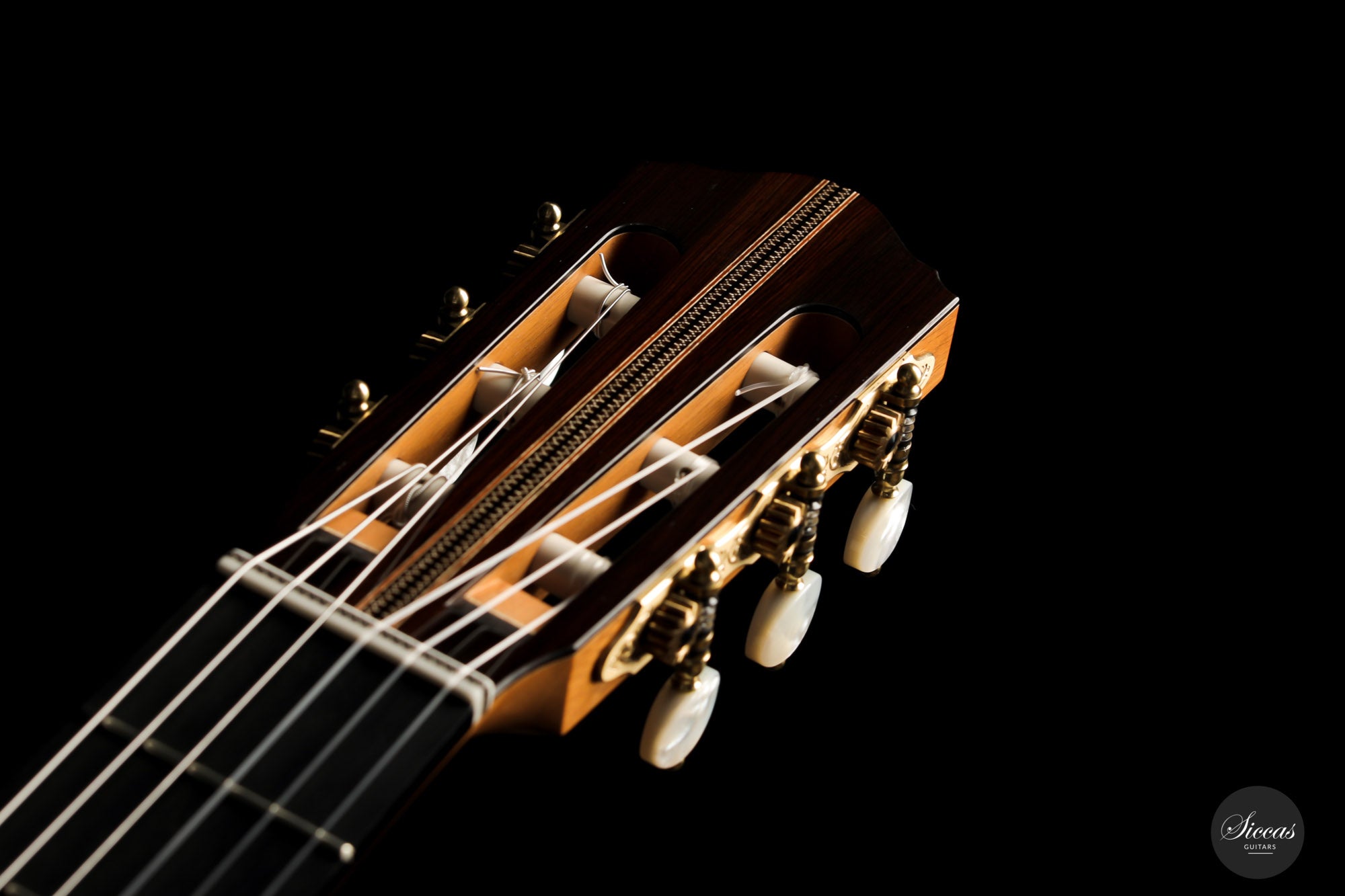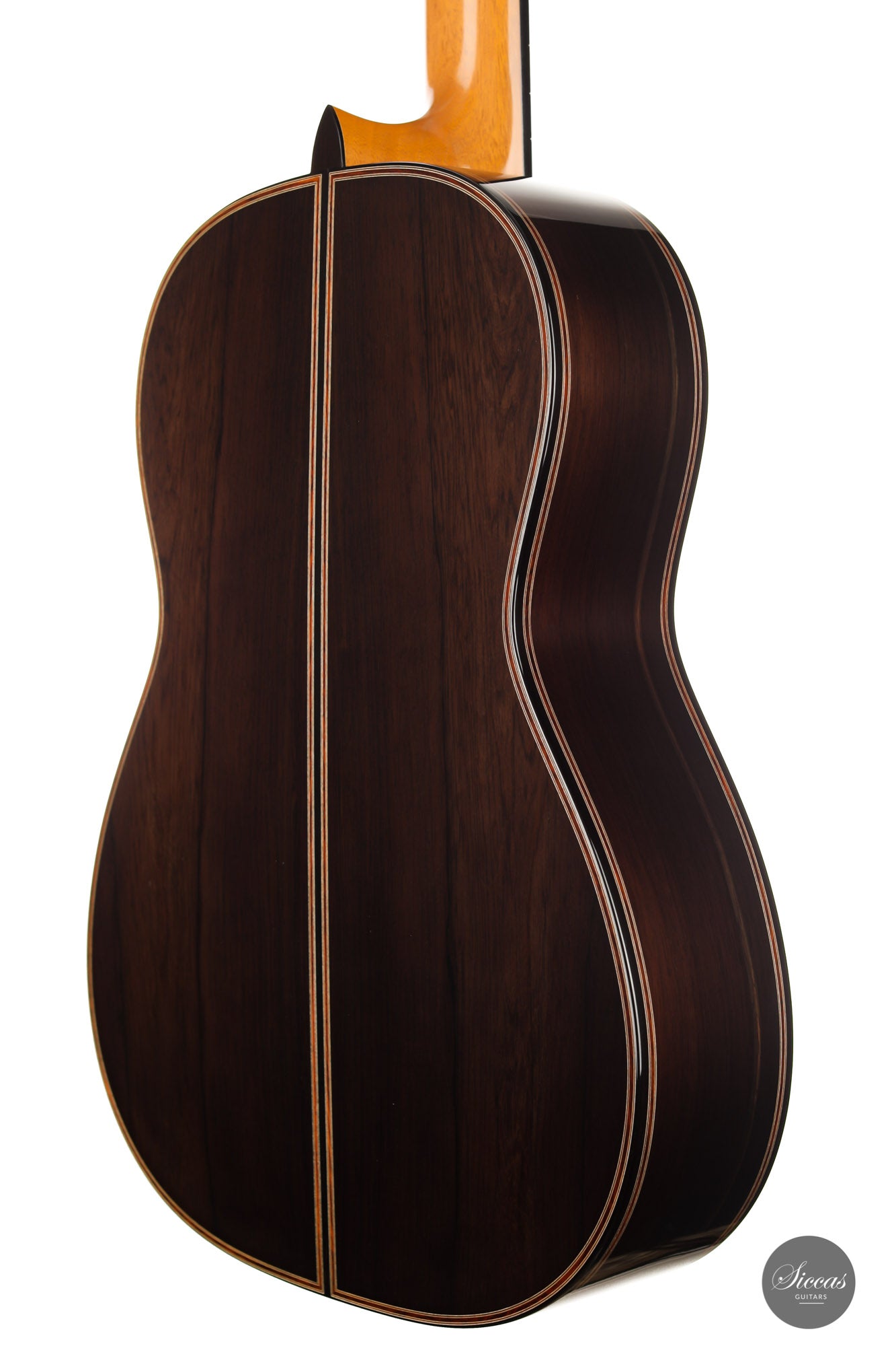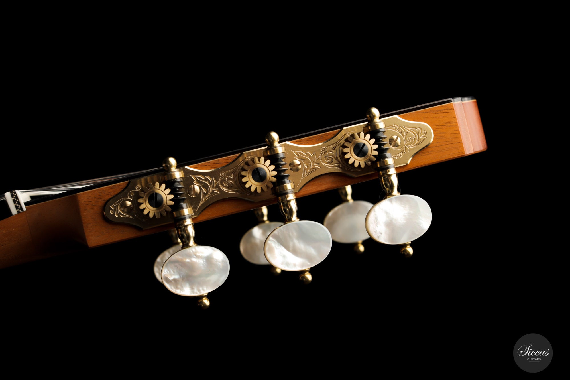 This beautiful 2019 Special model is one of Enrico Bottelli's most elaborate models. The inlay work is fine and elegant, and the choice of woods is simply gorgeous. The back and sides are made of extremely rare, old Brazilian rosewood (CITES certified), which presents splendid colors. The soundboard is made of premium Italian spruce, which is both lightweight and responsive. A particularly eye-catching detail is the flamed mahogany neck, which adds a beautiful touch to the entire instrument. The Rodgers tuners are also of the highest quality and perfectly complement this unique guitar.