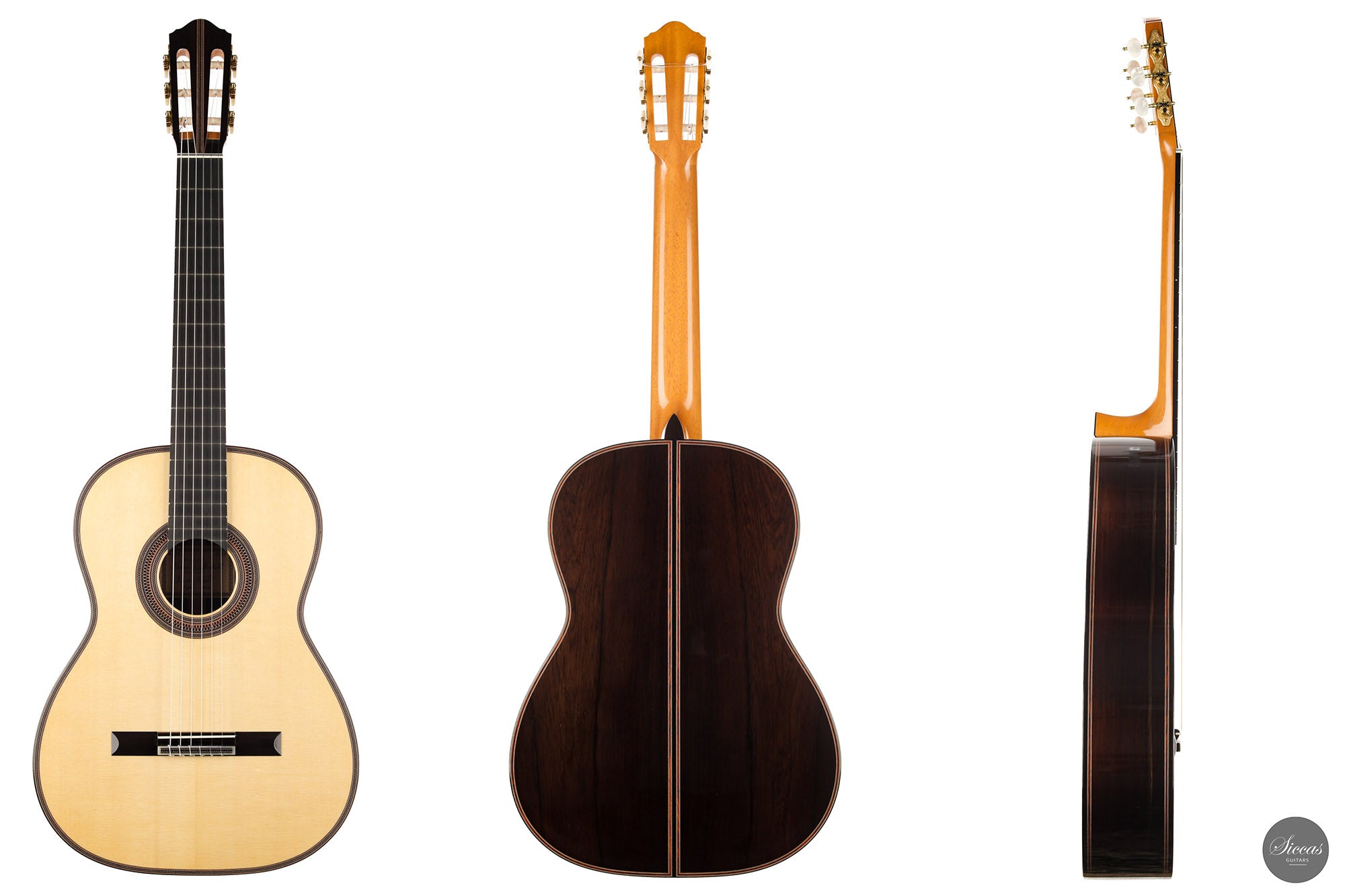 The classical guitar, with its soft nylon strings and characteristic timbre, has become a symbol of chamber music, Spanish tradition, and concert repertoire. Its modern form was shaped by Antonio de Torres in the 19th century, setting the standard for the body, fan bracing, and the 65-centimeter scale length that are still used today. Instruments in this category open up a rich palette from the refined Romantic miniatures of Tárrega to the majestic concertos of Rodrigo. Here you will find guitars that preserve historical continuity and at the same time inspire new interpretations.
