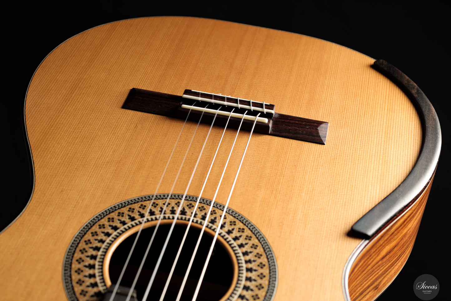 Tonally, the guitar is striking for its immediacy and bold dynamic range. Chords resonate with a breathing quality, and single notes emerge with clarity and power, even with minimal effort. Its voice is modern, rich in overtones, and highly responsive to touch, allowing expressive nuance even when nails are not perfectly shaped. This is a guitar that reveals its character from the first note, making a lasting impression. It is especially suited for players who appreciate the projection and openness of guitars in the tradition of Greg Smallman or Simon Marty, while offering its own distinct voice.