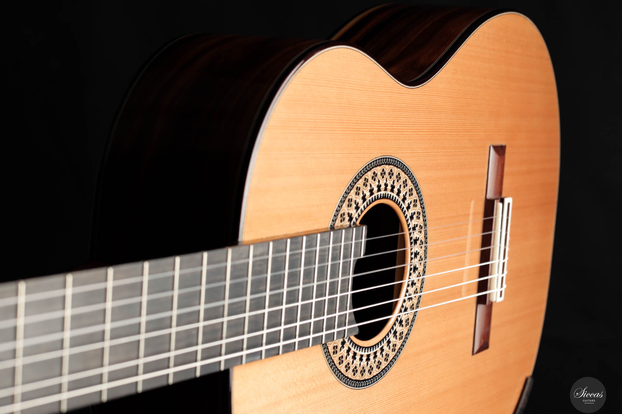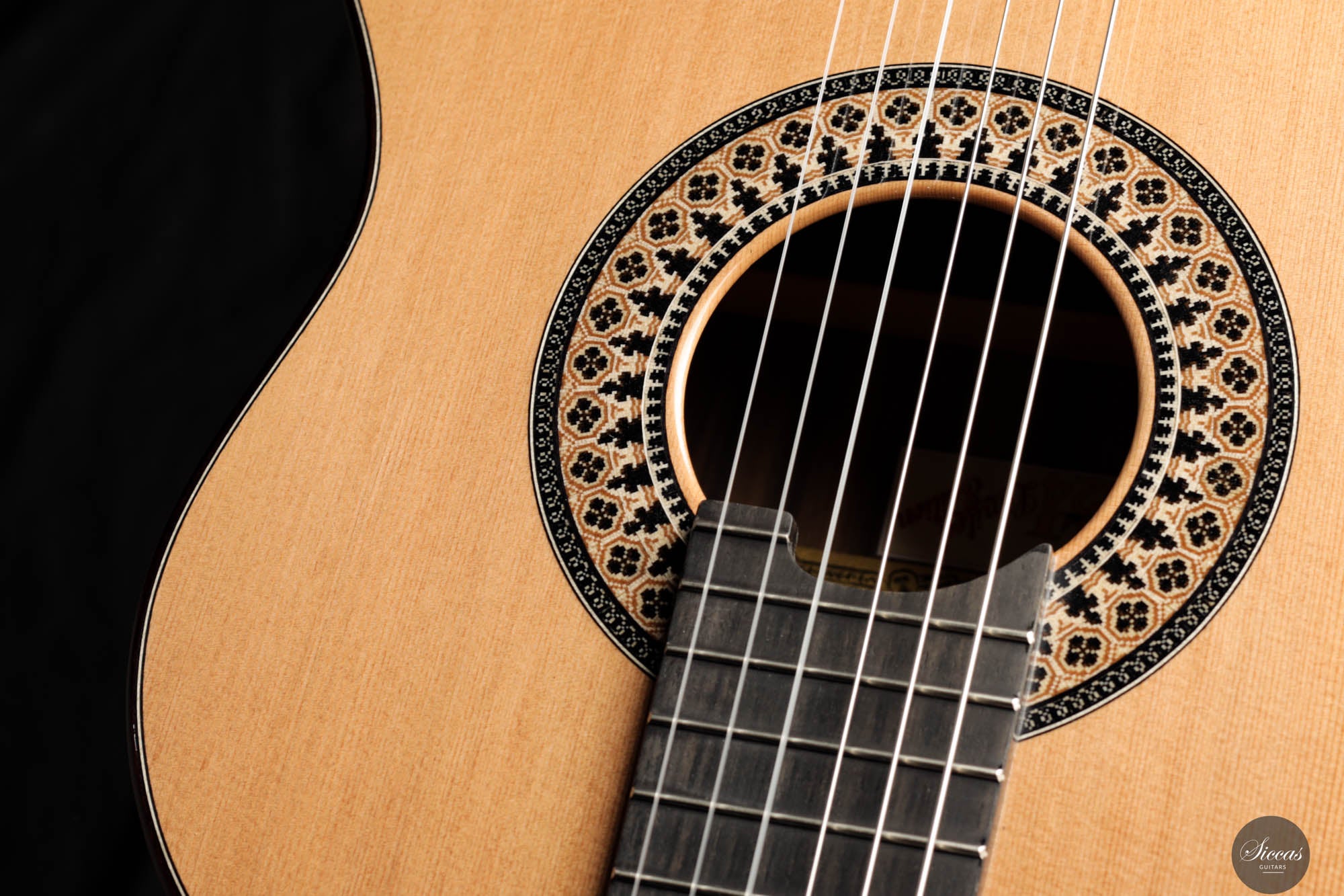 Fernando Mazza is a successful guitar maker born in Argentina. After a career as a guitarist, he dedicated himself to classical guitar making and opened his workshop in Arezzo, Italy. Fernando Mazza’s guitars are easily recognized by their meticulous construction and beautiful rosette, reminiscent of the arches of the famous Palazzo Ducale in Venice. He builds guitars in the Australian lattice tradition, combining extremely stiff laminated backs and sides with a highly responsive lattice top. In addition, Fernando Mazza also builds a Nomex double top model with lattice bracing that offers even more projection and spontaneity.