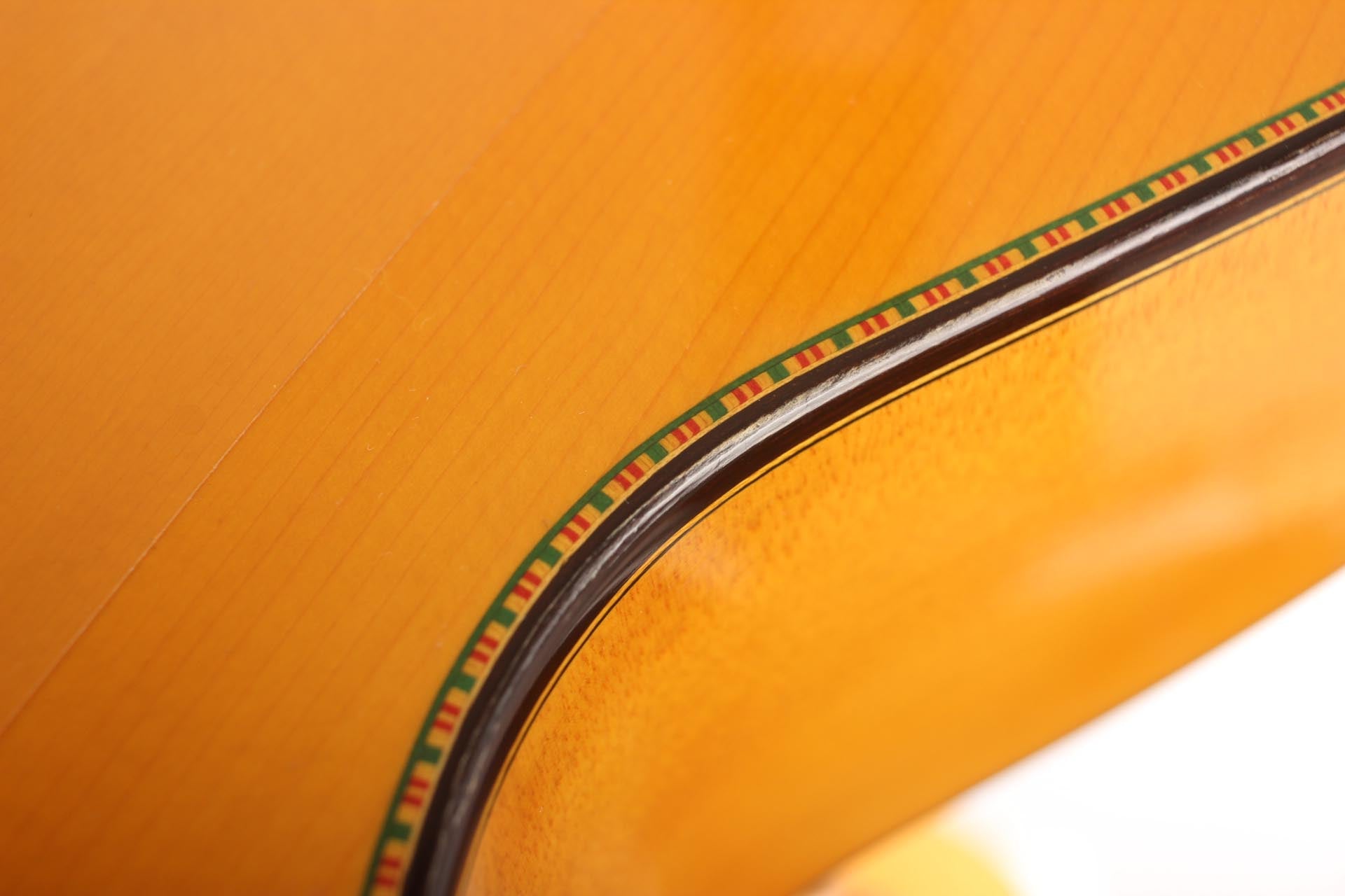 The playability of this 2012 Barba guitar is a dream and the sound is characterized by strong and deep basses and lyrical trebles. Only the best woods were used for this guitar – spruce for the top and cypress for back and sides. It is all French-polished. A Hiscox Pro II case is included.