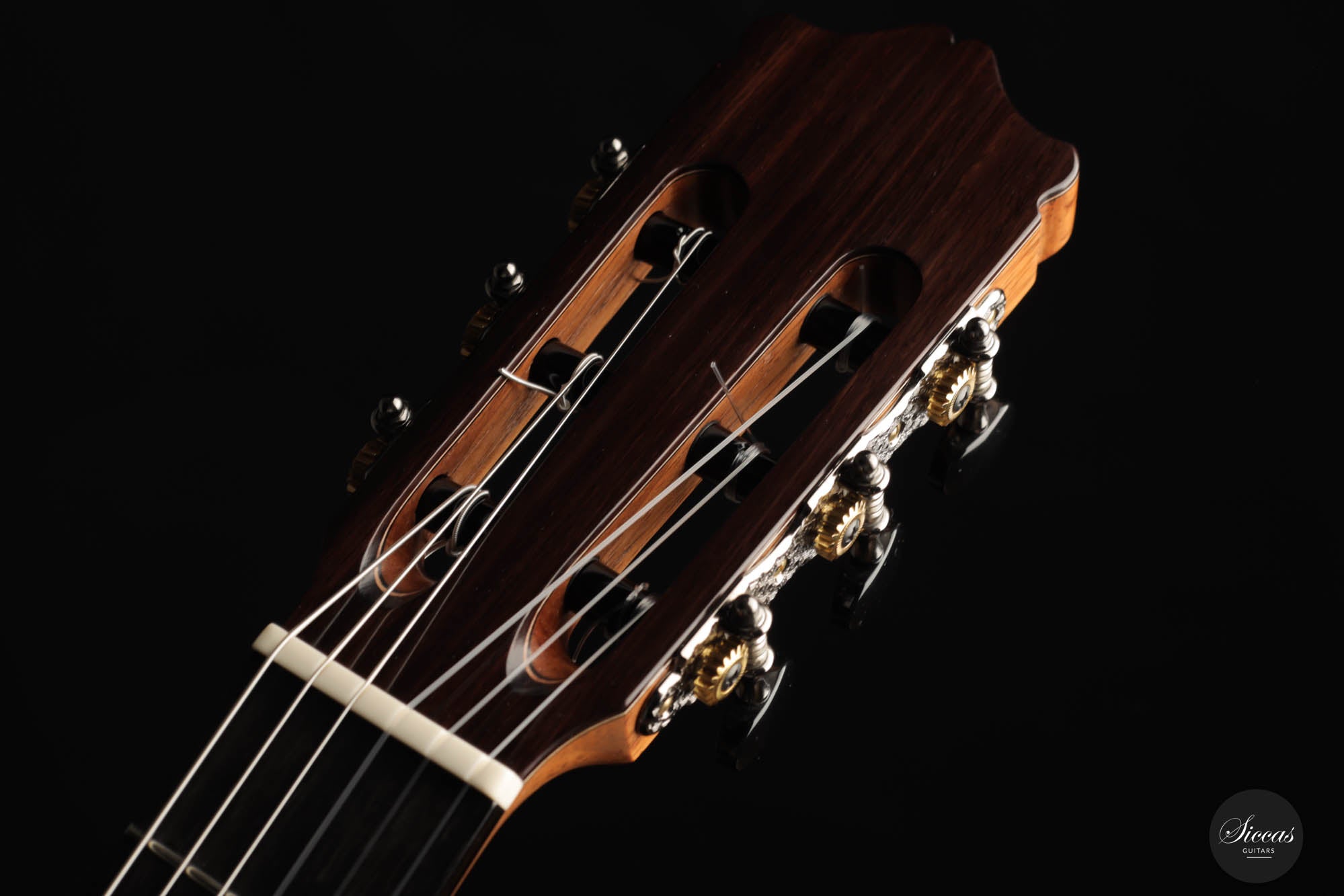 Moreover, the 64cm scale is a gift for a guitarist with a smaller hand. This instrument showcases the impressive capabilities of Francisco Munoz Alba, a representative of the talented young generation of guitar makers carrying forward the Spanish tradition. A true embodiment of a Spanish guitar, the "Especial Homenaje" model reflects Munoz's profound respect for the luthiery tradition while pushing the boundaries of craftsmanship and sound, a tribute worthy of the distinguished lineage of Spanish guitar-making.