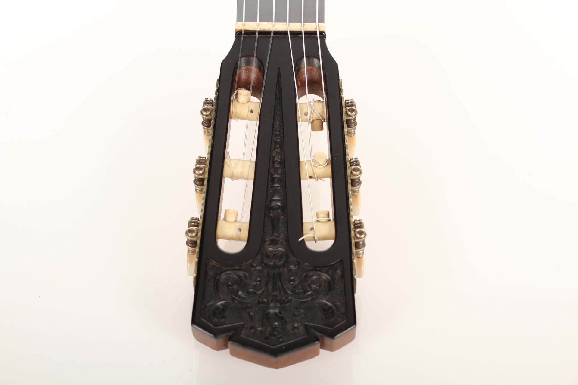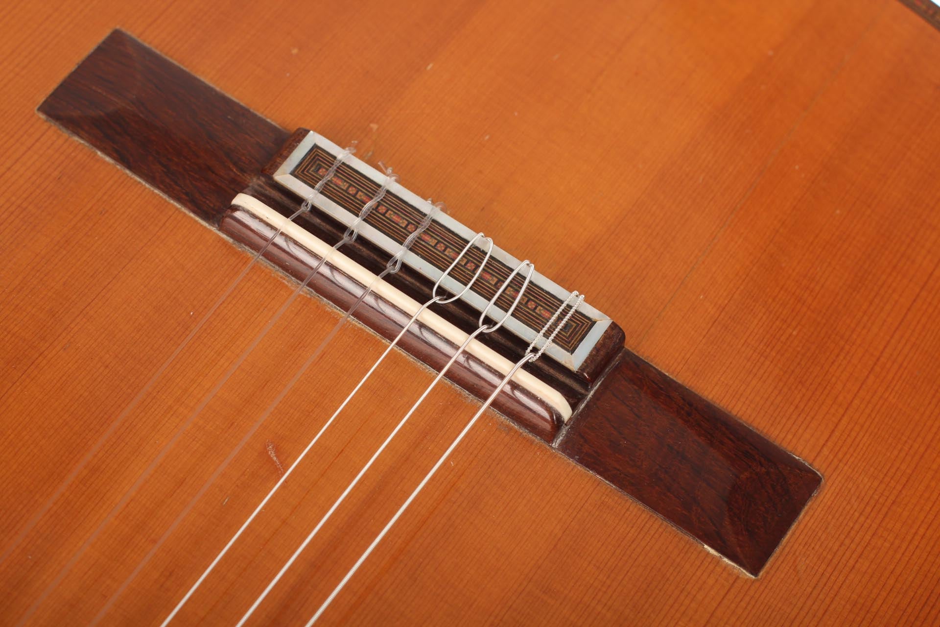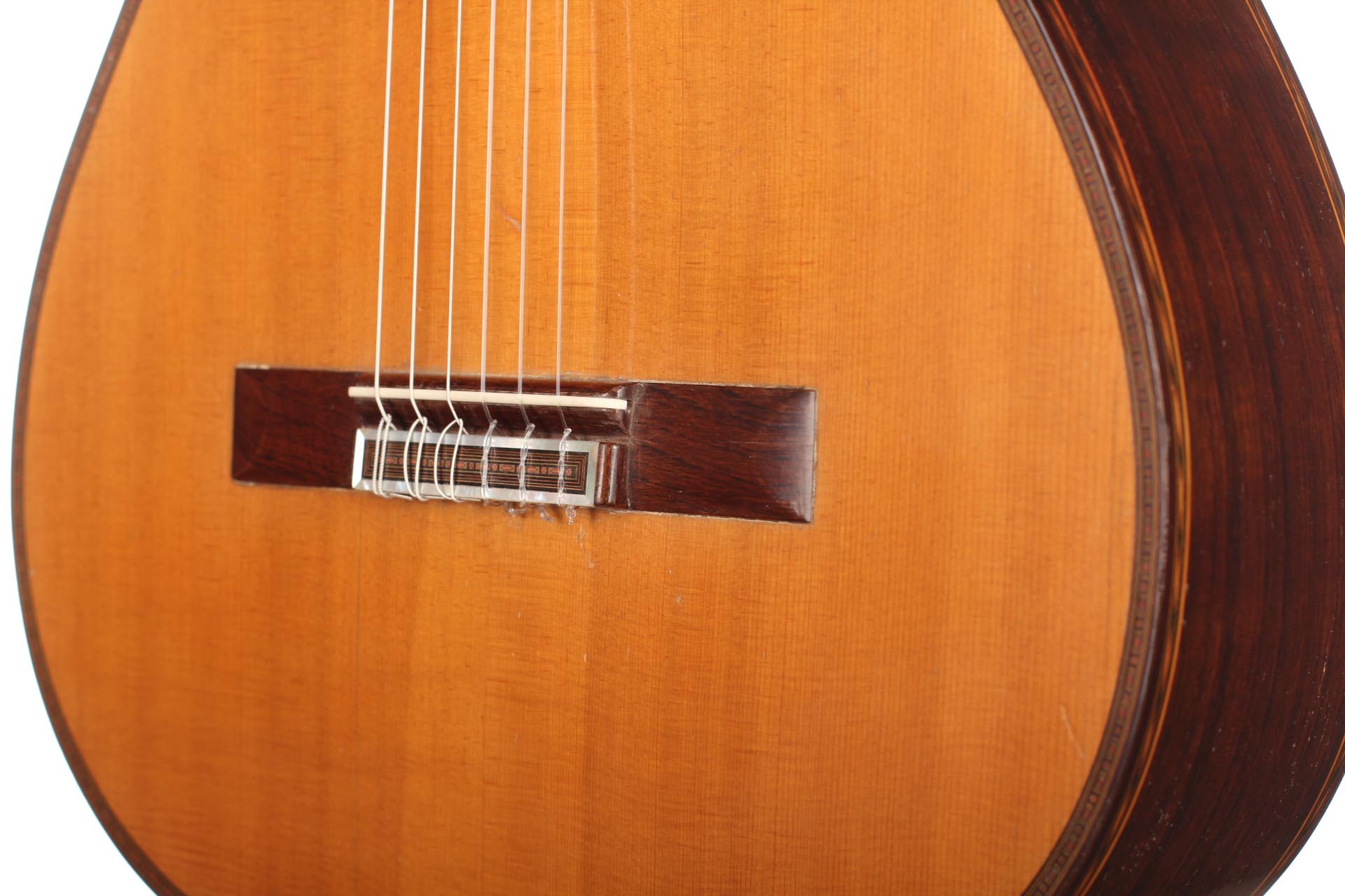 This Guitar was built in 1927 and wears the number 162. It has a beautiful spruce top and Cites pre-convention Brazilian rosewood back and sides. The top and the back have a few repaired cracks. The ebony head-plate is carved and the head wears old Fustero tuners. A very special feature of this guitar is the rosewood tornavoz that goes down to the half of the depth of the sound box. It gives the guitar extraordinary deep and warm basses, projecting easily and giving a smooth stroke-feeling. This guitar is a unique collection instrument and has the very sound one is looking for, when playing some Tarrega, Granados, Albeniz, etc.The original case is included.