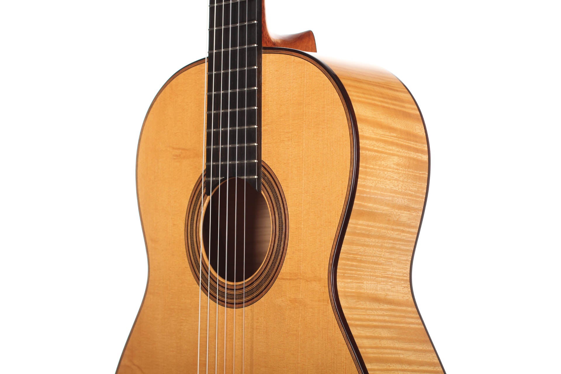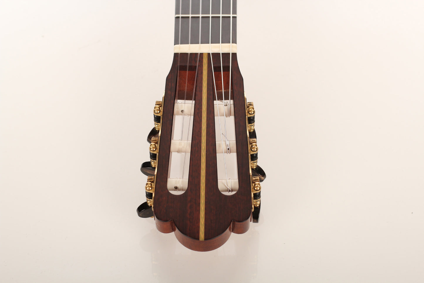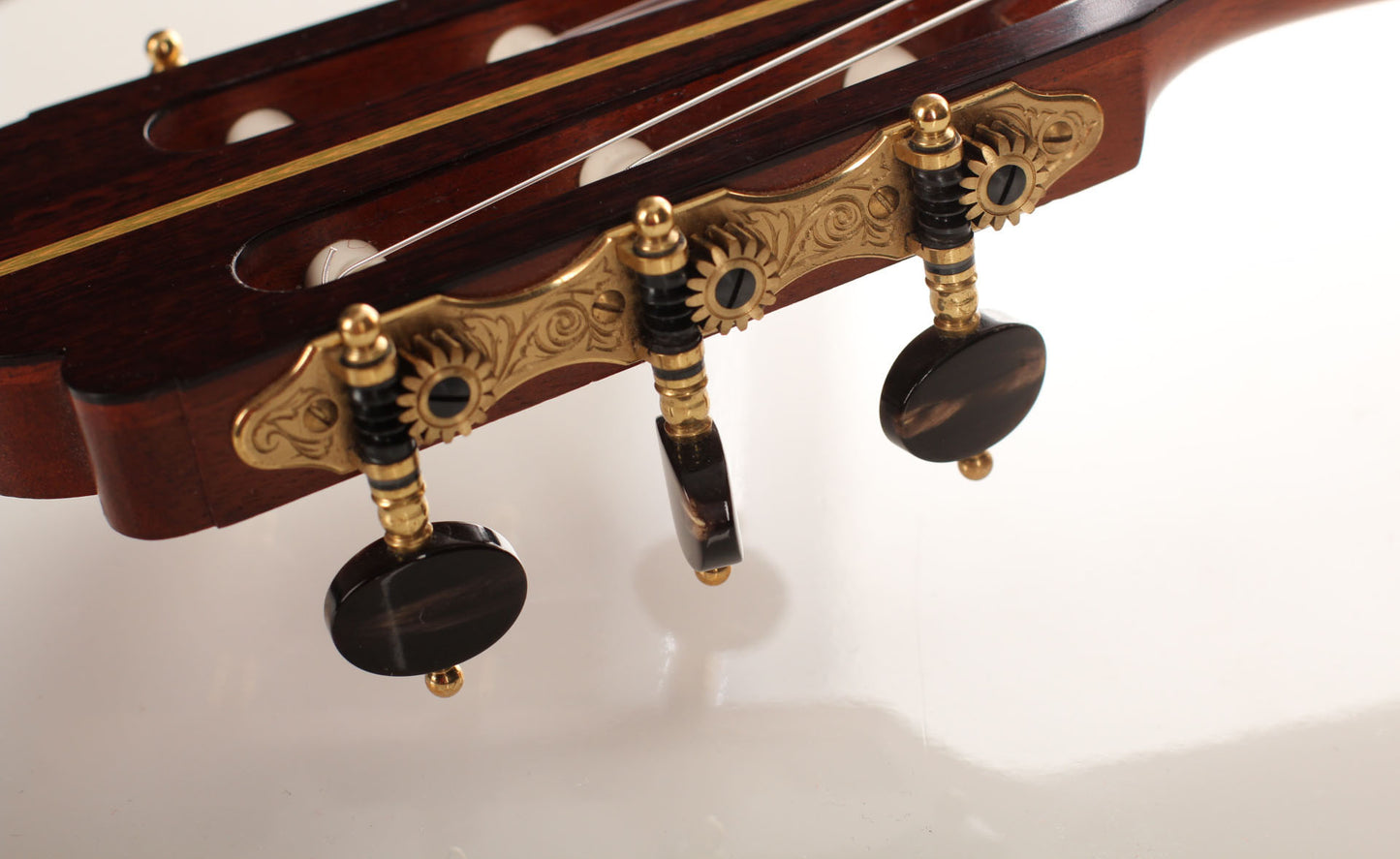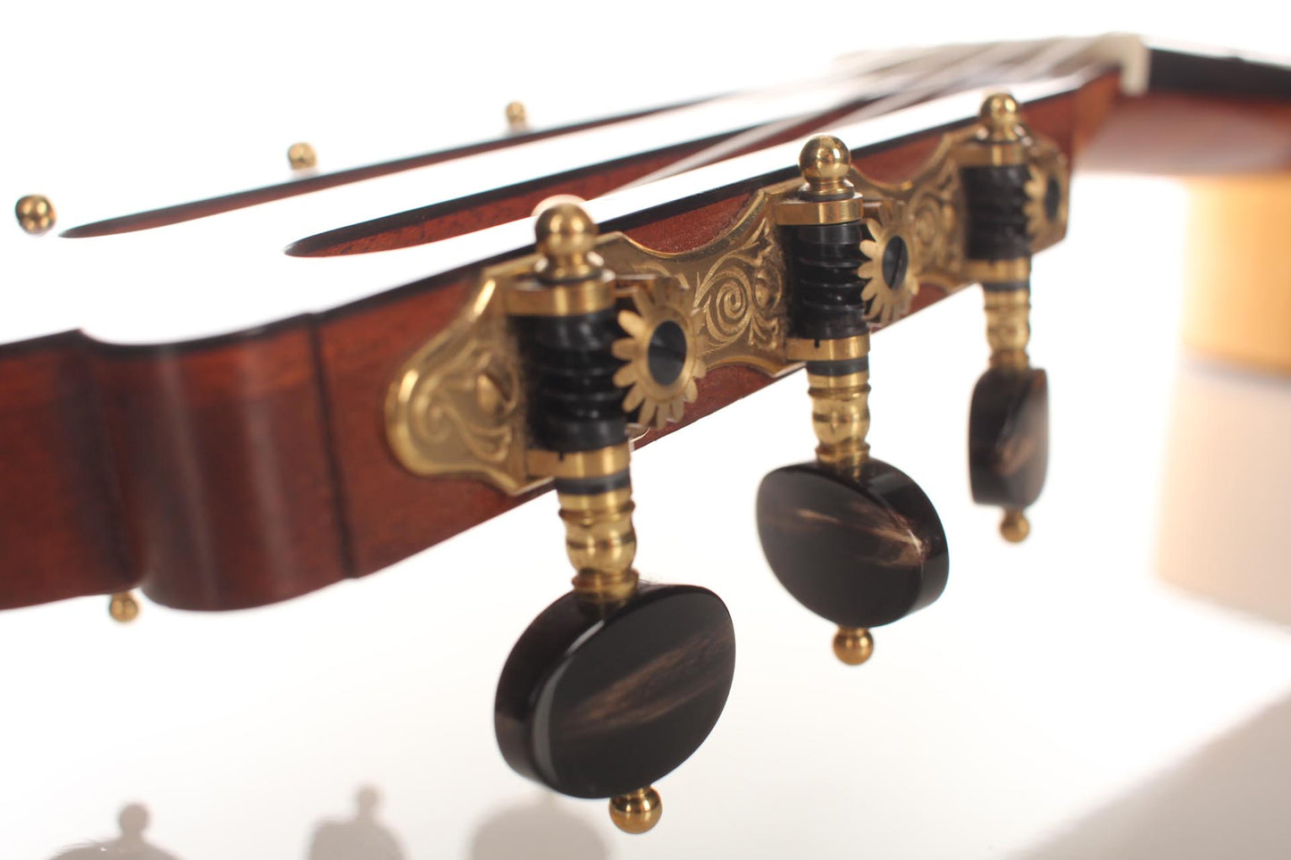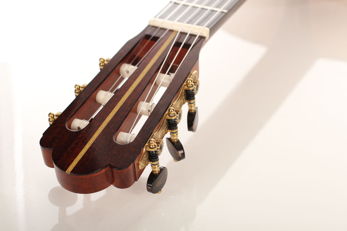 The sound has a lot of character - the basses are warm and have very much depth. The trebles are clear, lyrical and projecting. The guitar has a beautiful French-polish finish. The tuners with engraved side-plates are made by Rodgers. A Hiscox Pro II case is included.