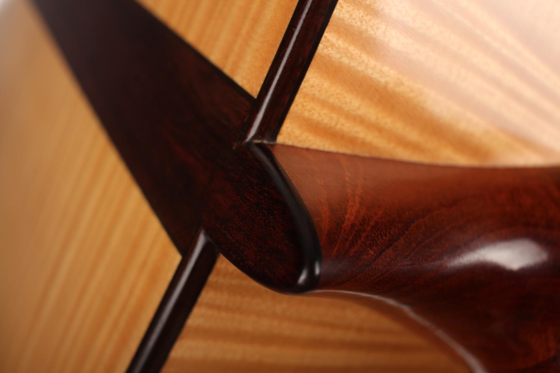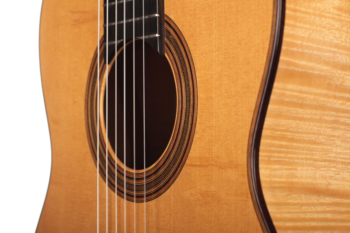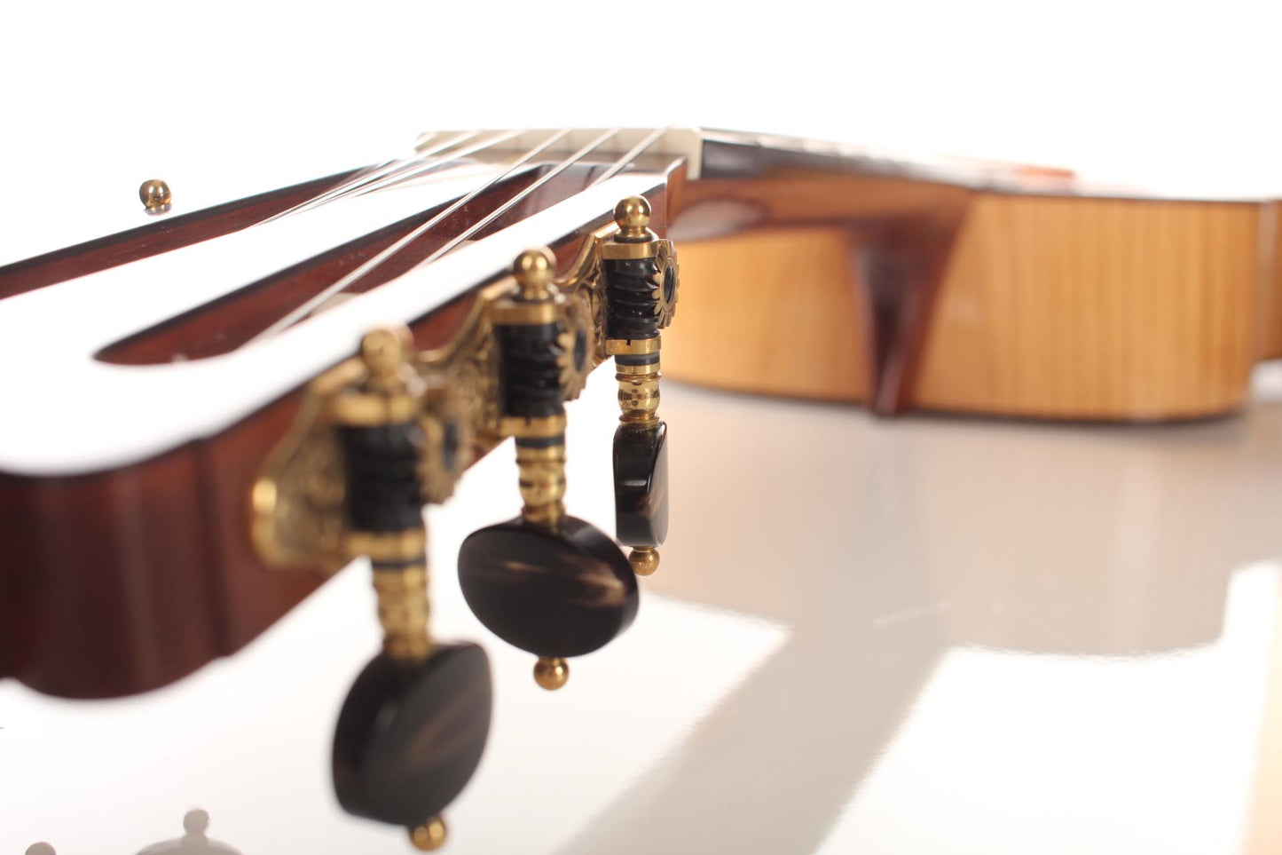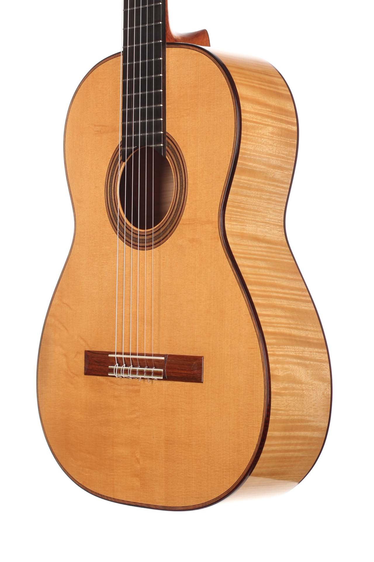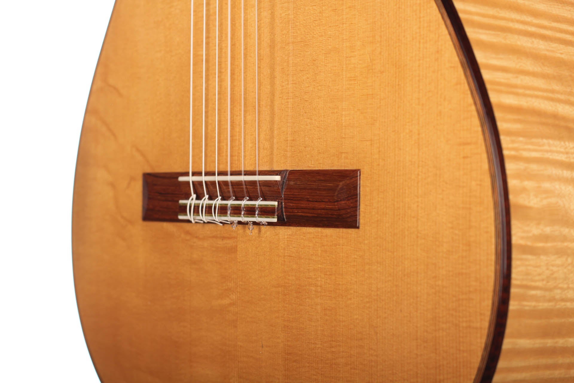 The sound has a lot of character - the basses are warm and have very much depth. The trebles are clear, lyrical and projecting. The guitar has a beautiful French-polish finish. The tuners with engraved side-plates are made by Rodgers. A Hiscox Pro II case is included.