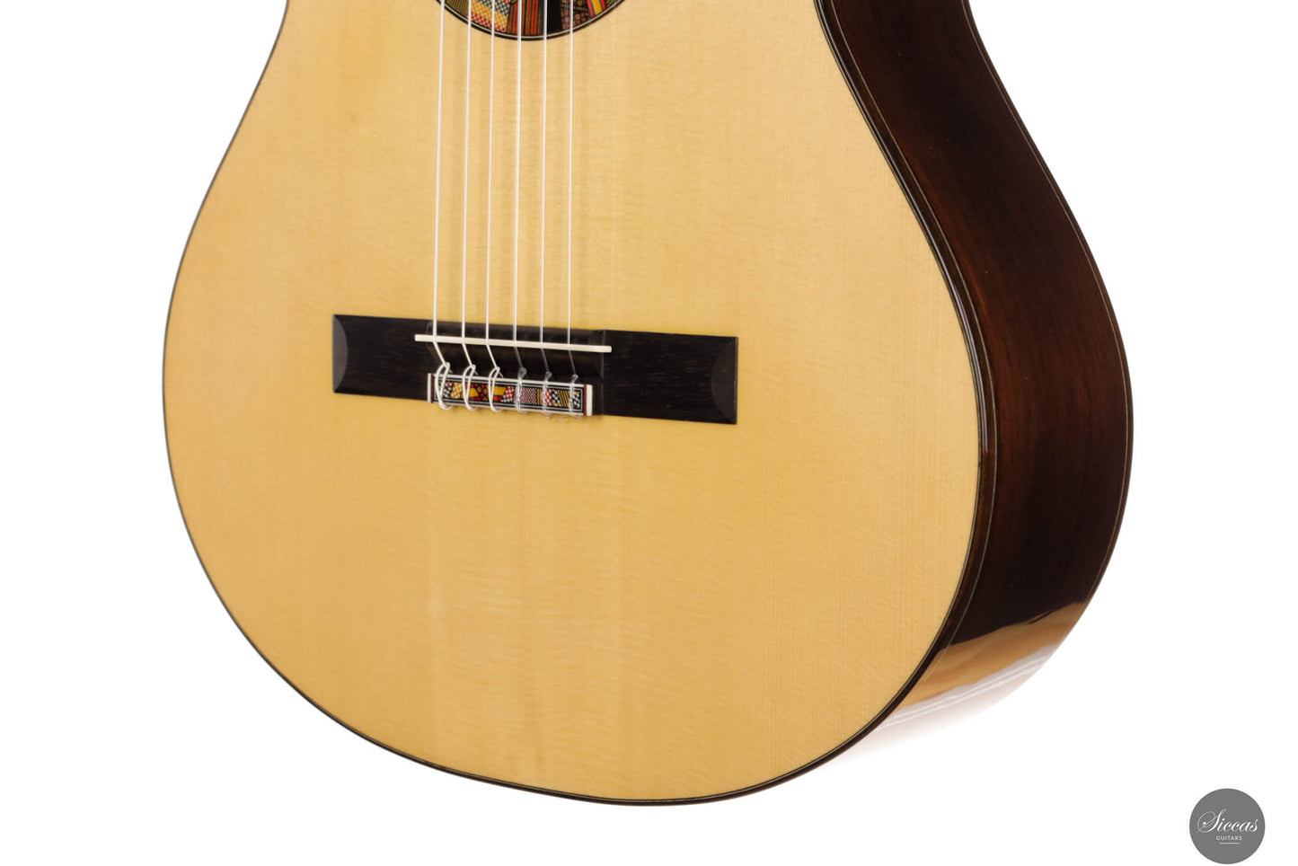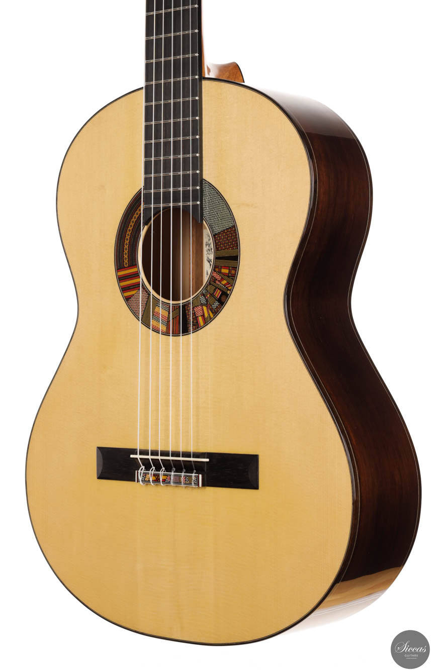 The classical guitar, with its soft nylon strings and characteristic timbre, has become a symbol of chamber music, Spanish tradition, and concert repertoire. Its modern form was shaped by Antonio de Torres in the 19th century, setting the standard for the body, fan bracing, and the 65-centimeter scale length that are still used today. Instruments in this category open up a rich palette from the refined Romantic miniatures of Tárrega to the majestic concertos of Rodrigo. Here you will find guitars that preserve historical continuity and at the same time inspire new interpretations.