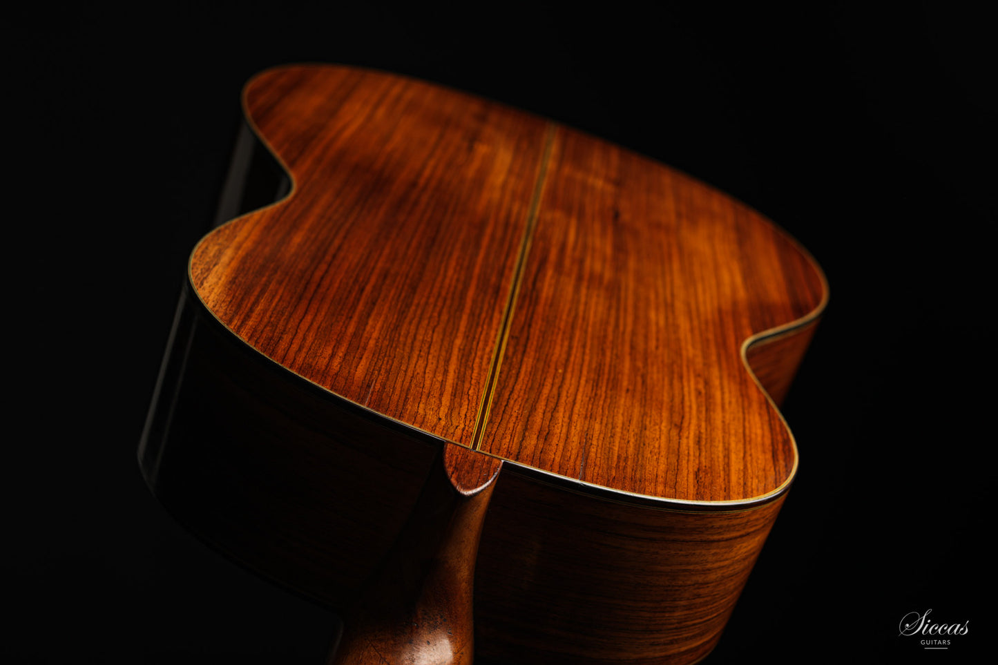 The sound of the Fleta guitars from this era is always very touching, and this one inspires deep emotion. The basses are round and precise, with an absolutely special and bewitching colour. Singing and crystalline trebles are very easy to play and offer a fantastic palette of timbre. It is therefore a legendary instrument, at its best, which will amaze guitarists and collectors of all kinds.