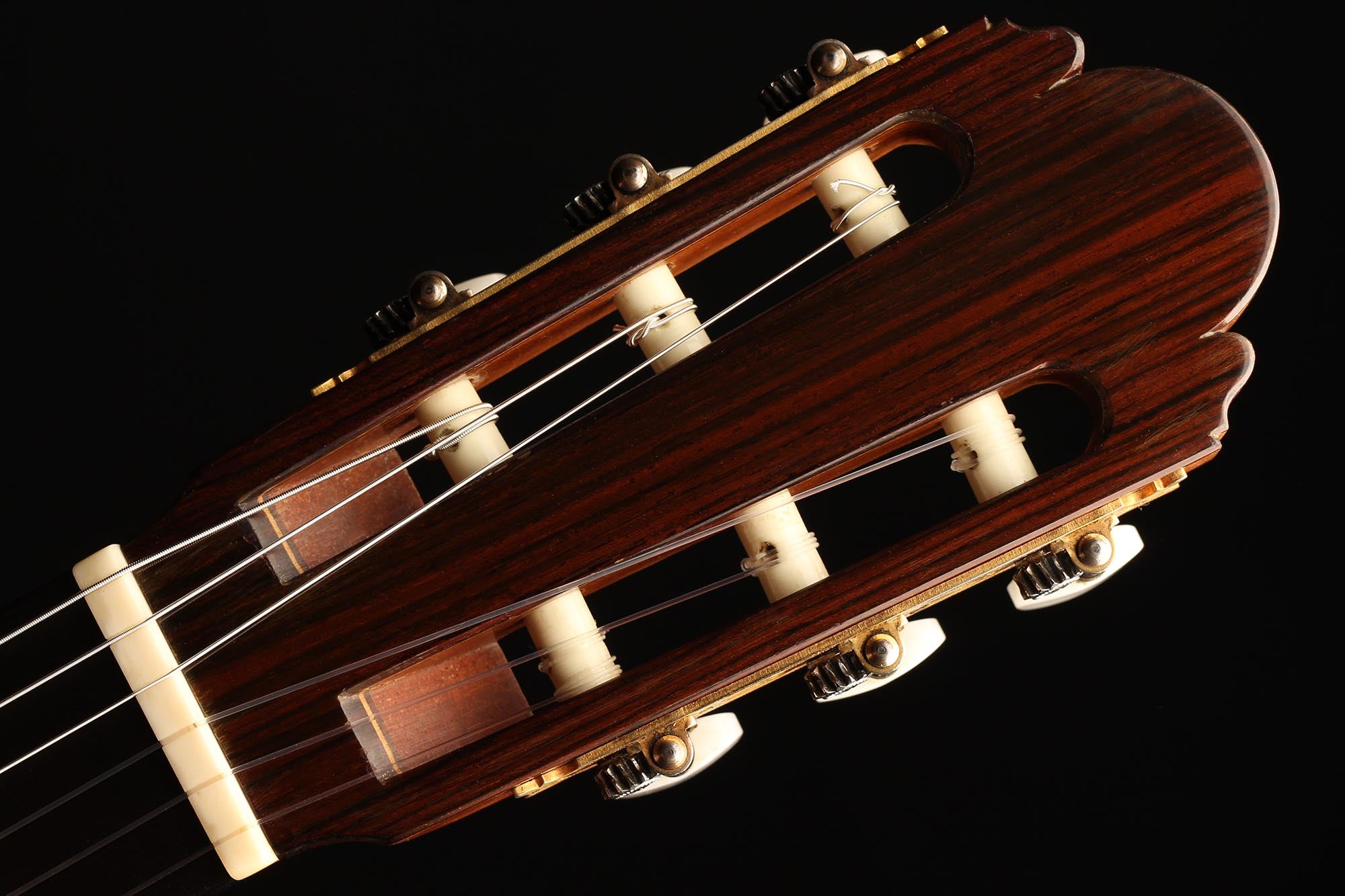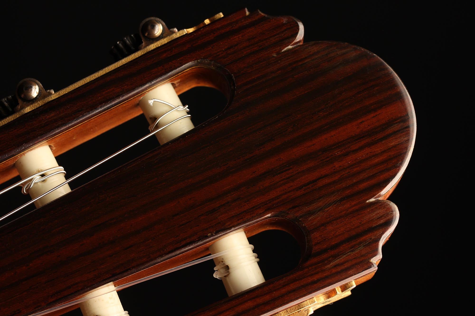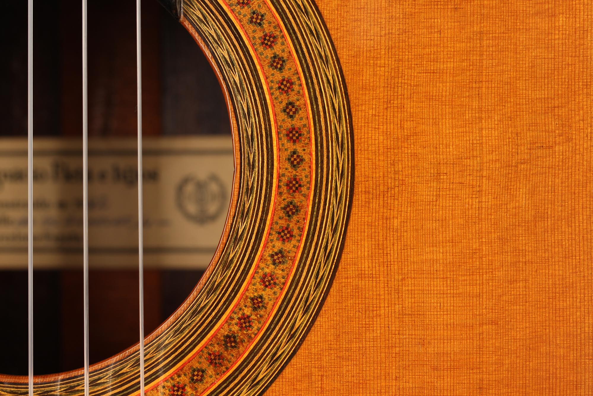 This guitar has the spontaneous and powerful character that we know well from the guitars built by Fleta. Each time we receive one of these instruments, we are impressed by the volume they produce, and this one is particularly captivating. It is an instrument of great lyricism, and its perfect playability allows the guitarist to give free rein to his inspiration. The timbre is round and warm with an astounding sustain and perfect balance. The guitars of Ignacio Fleta have strongly influenced an entire era, and this magnificent instrument shows us why.