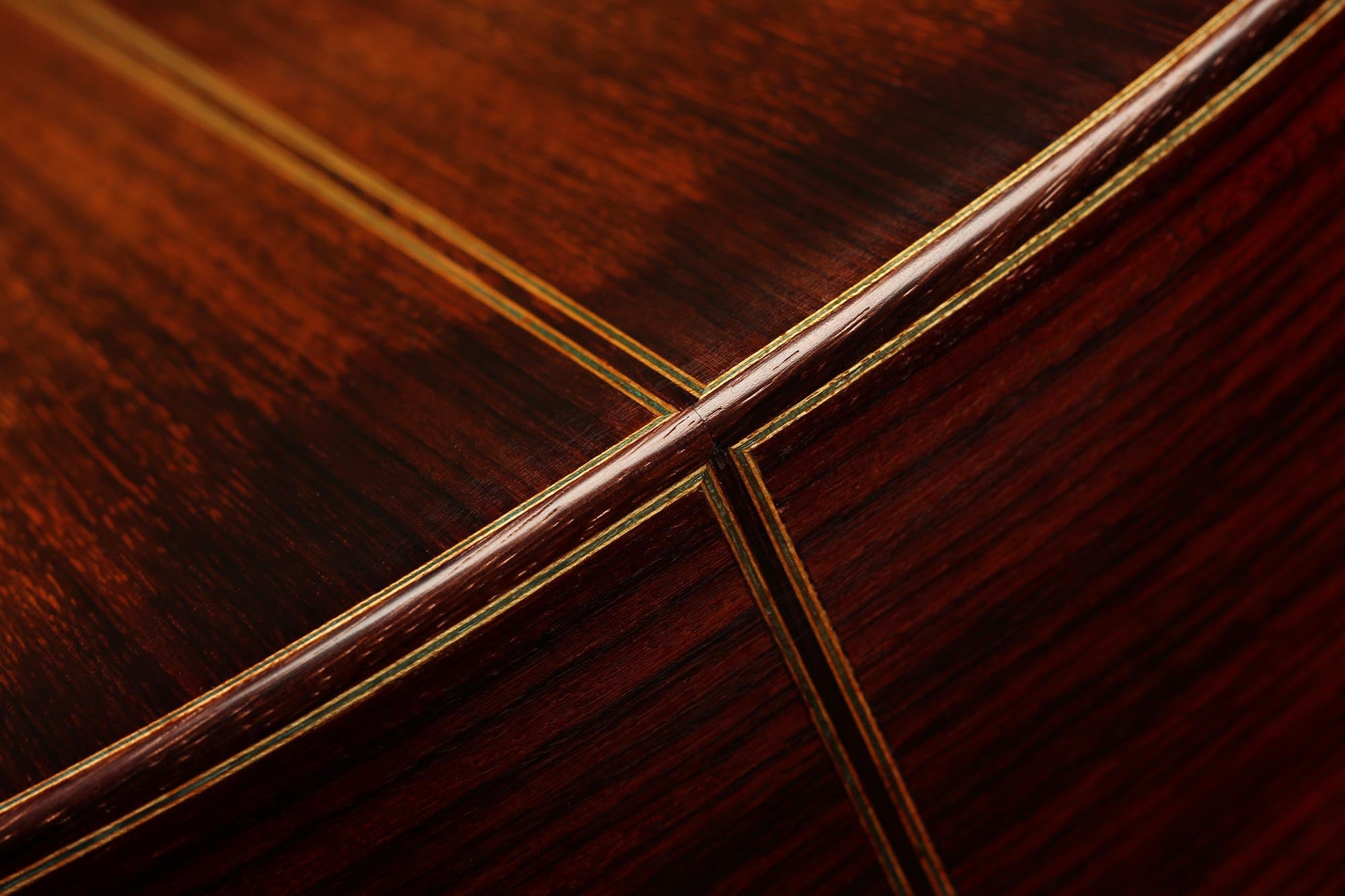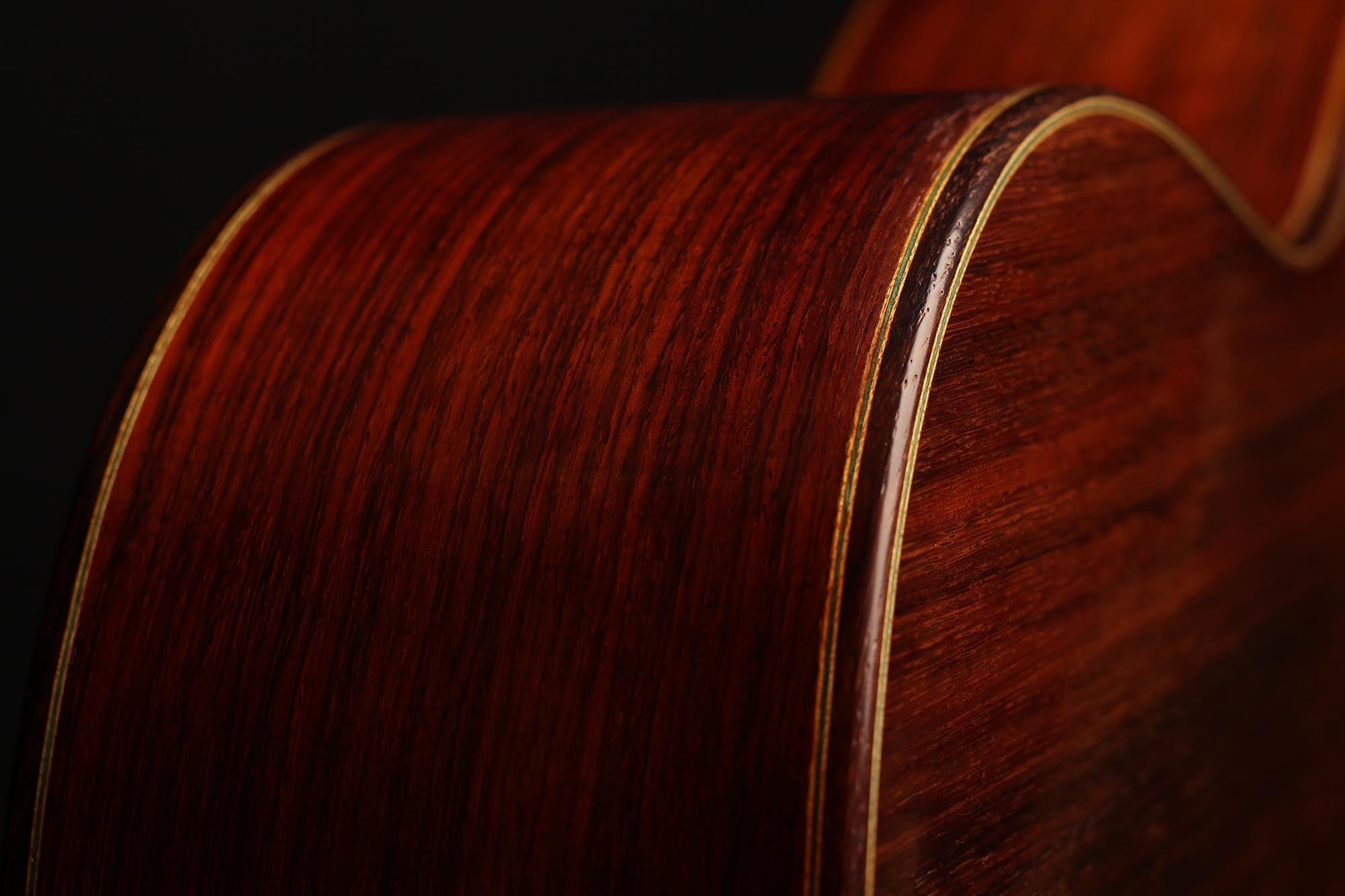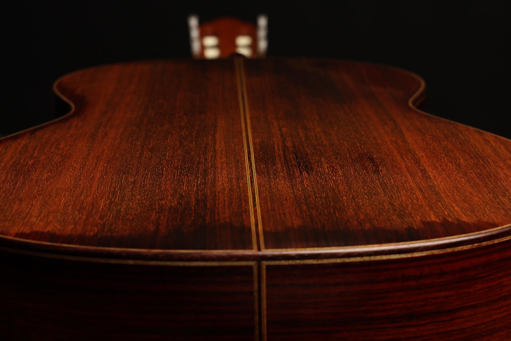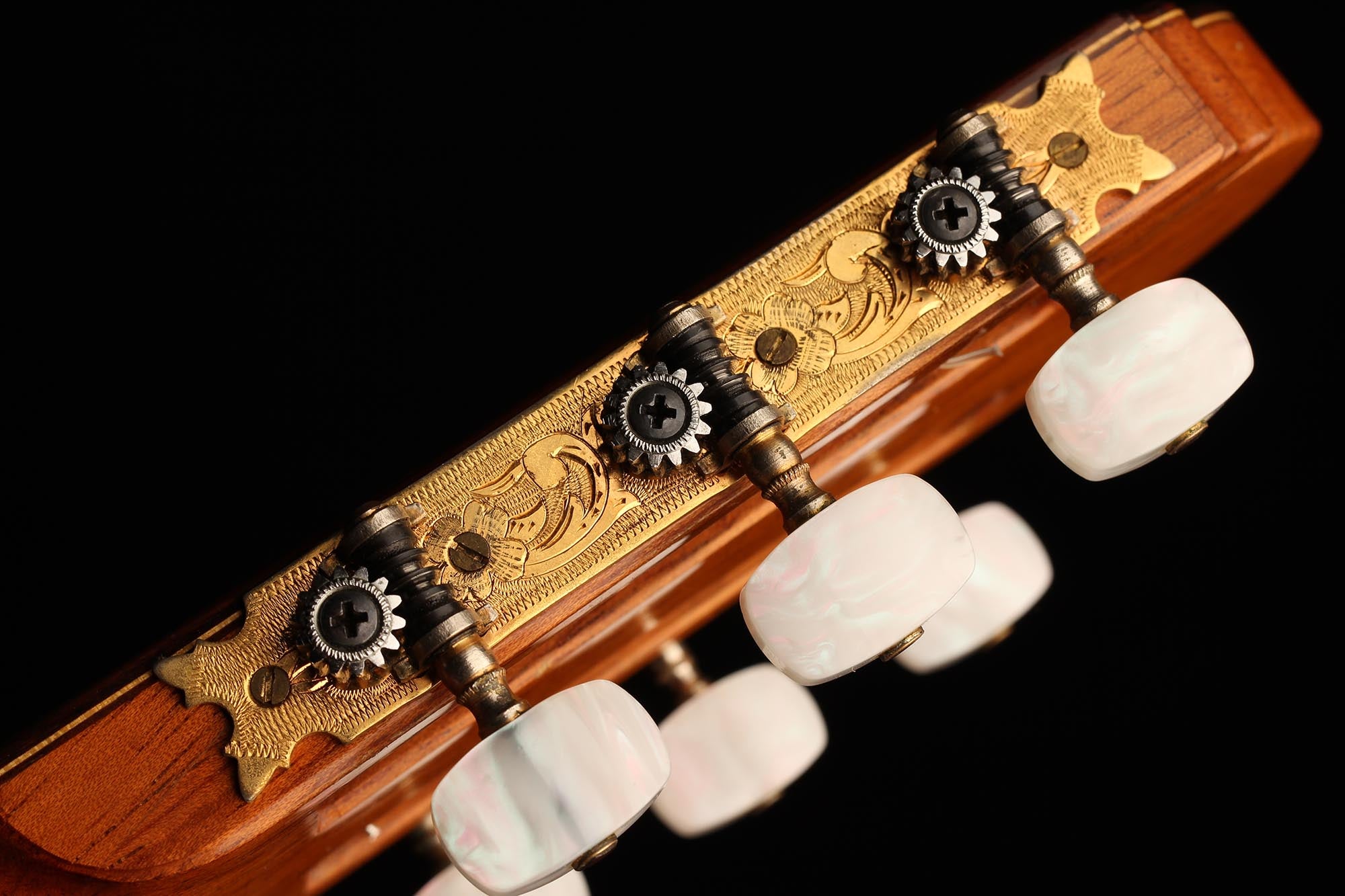 This guitar has the spontaneous and powerful character that we know well from the guitars built by Fleta. Each time we receive one of these instruments, we are impressed by the volume they produce, and this one is particularly captivating. It is an instrument of great lyricism, and its perfect playability allows the guitarist to give free rein to his inspiration. The timbre is round and warm with an astounding sustain and perfect balance. The guitars of Ignacio Fleta have strongly influenced an entire era, and this magnificent instrument shows us why.
