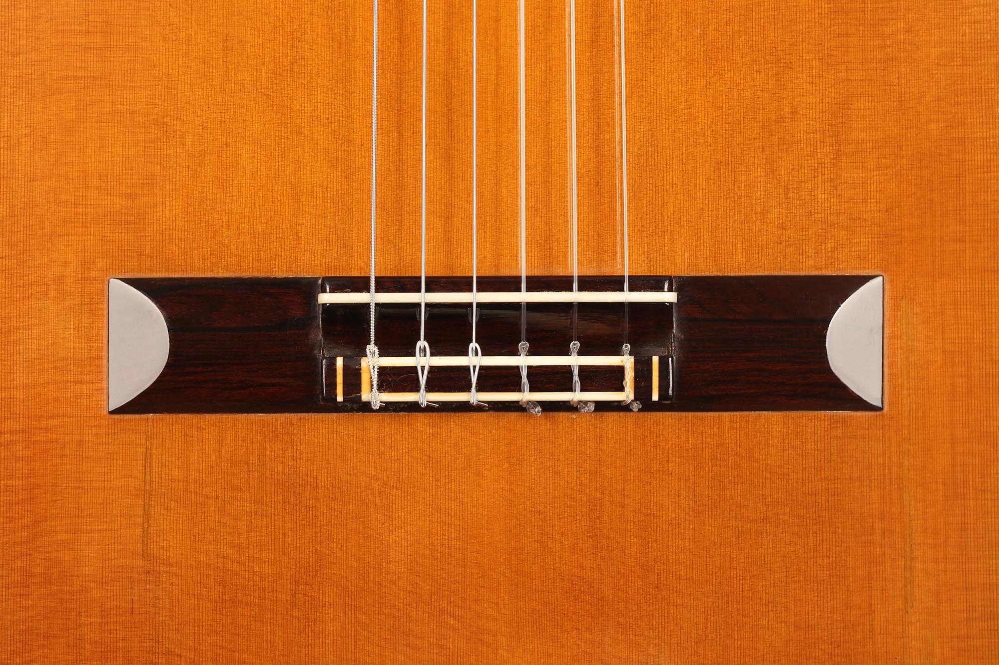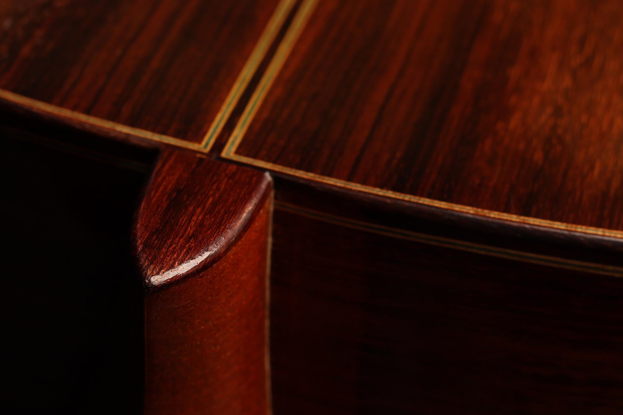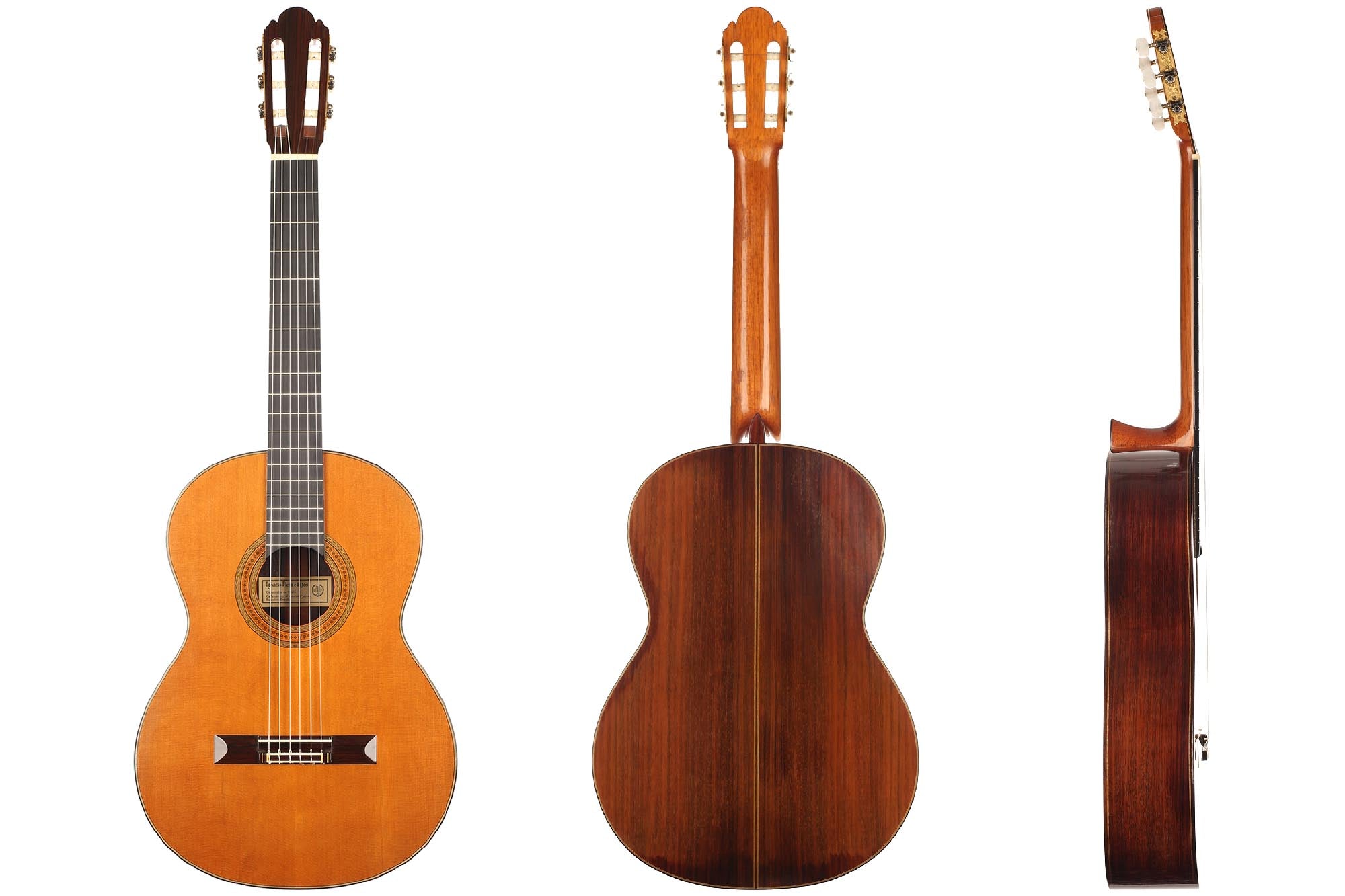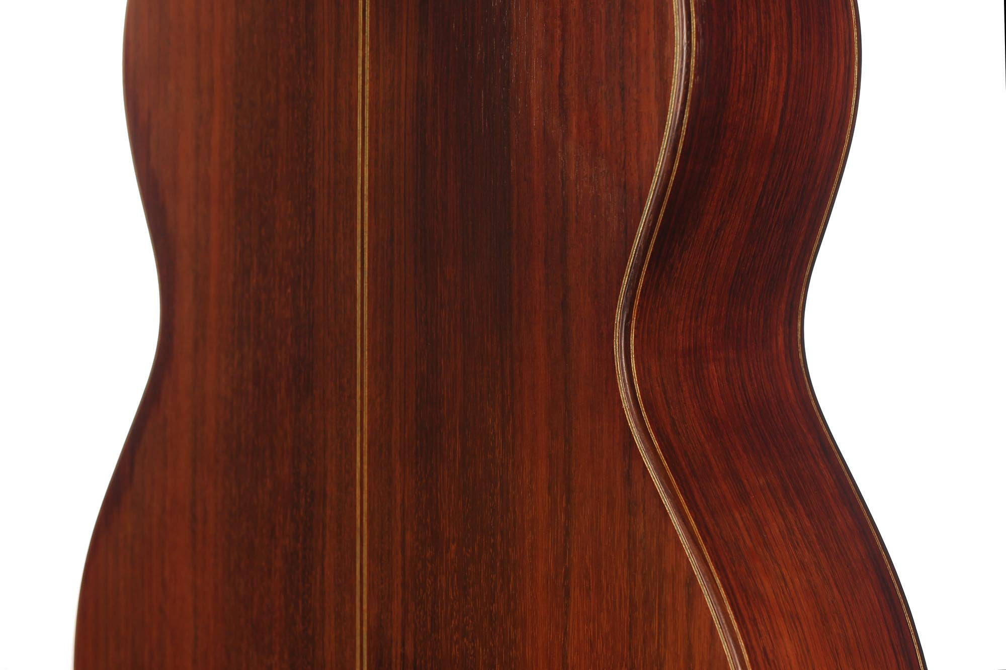This 1982 guitar is absolutely beautiful, with a nice set of straight-grained Indian rosewood and a first-class red cedar top. The condition is very good with just some varnish wear and two cracks on the top, that have been perfectly repaired by Fleta in their workshop and have been stable for more than twenty years now.