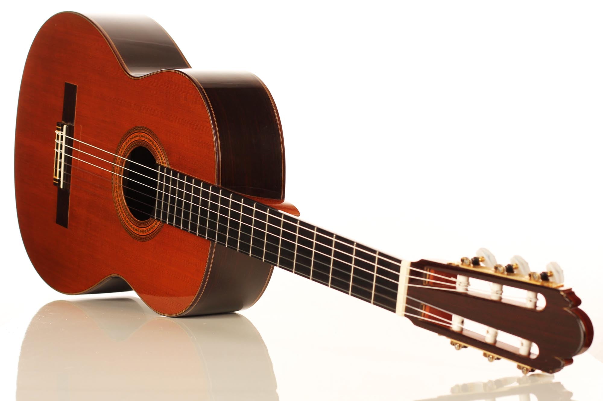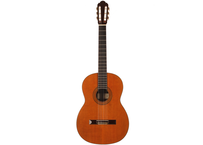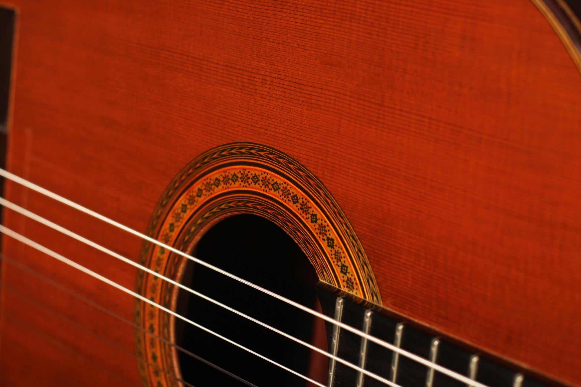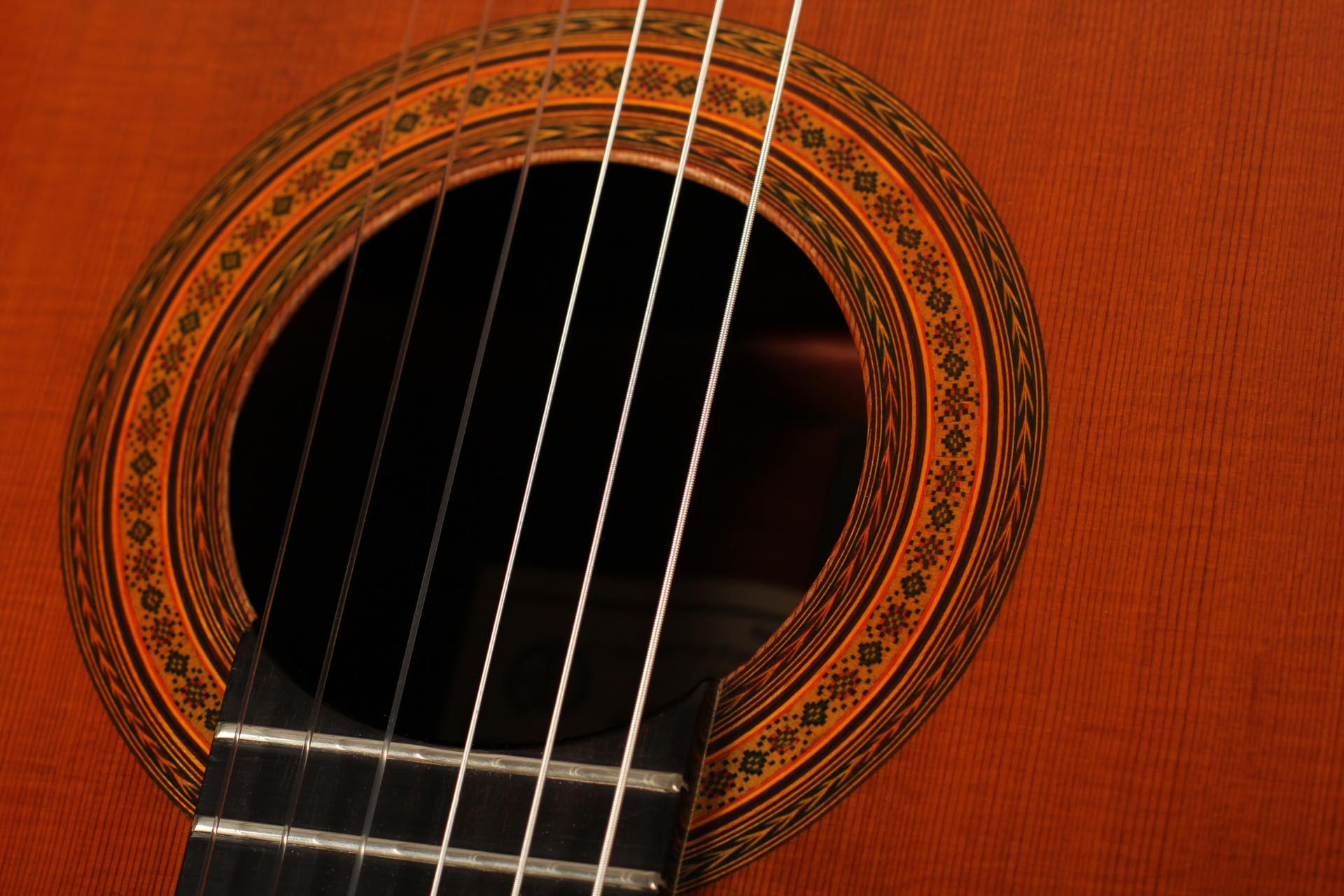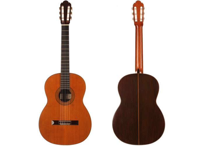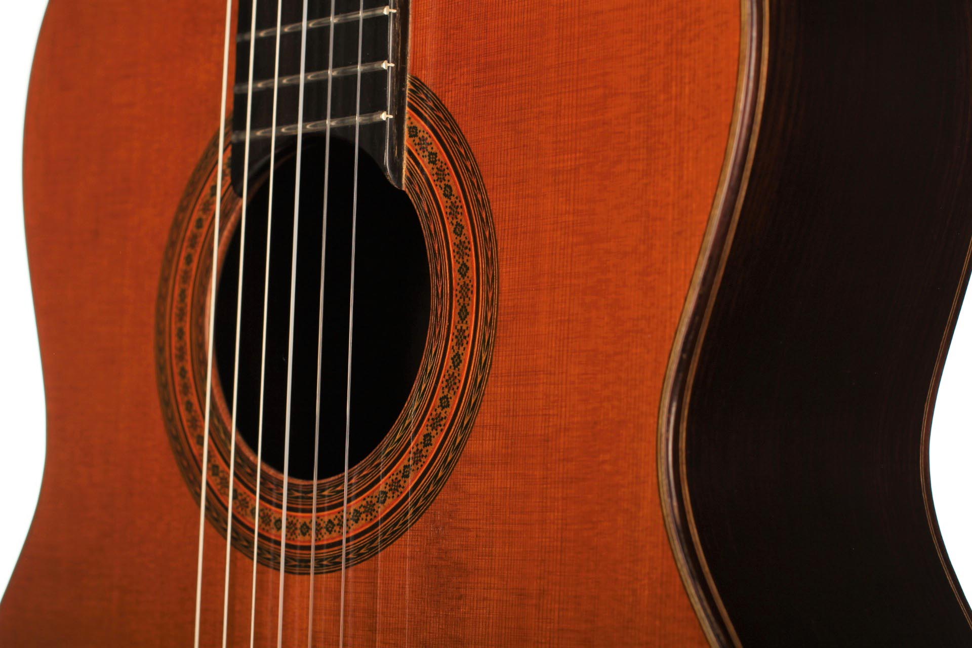 Ignacio Fleta (1897-1977) is one of the most famous luthiers of the twentieth century. In addition of being a successful guitarmaker, he was a recognised bowed and ancient instruments luthier (violins, violas, cellos, vihuelas, and violas de gamba). After his death, his work was continued by his two sons Gabriel and Francisco Fleta and later by his grandson Gabriel Fleta Jr. The current waiting time for a new guitar is about 20 years. This guitar’s rosette is very specific of Fleta’s work and inspired by the famous late ninteenth century guitar makers. The innermost and outermost part of the guitar’s rosette consists of a herringbone pattern ring. In the middle of those two rings, the central mosaic is in the shape of blossoms. This instrument has a cedar top and Indian rosewood back and sides. It is equipped with Fustero machine heads. This guitar is a true rarity for guitar collectors and players. A hard-shell case is included.